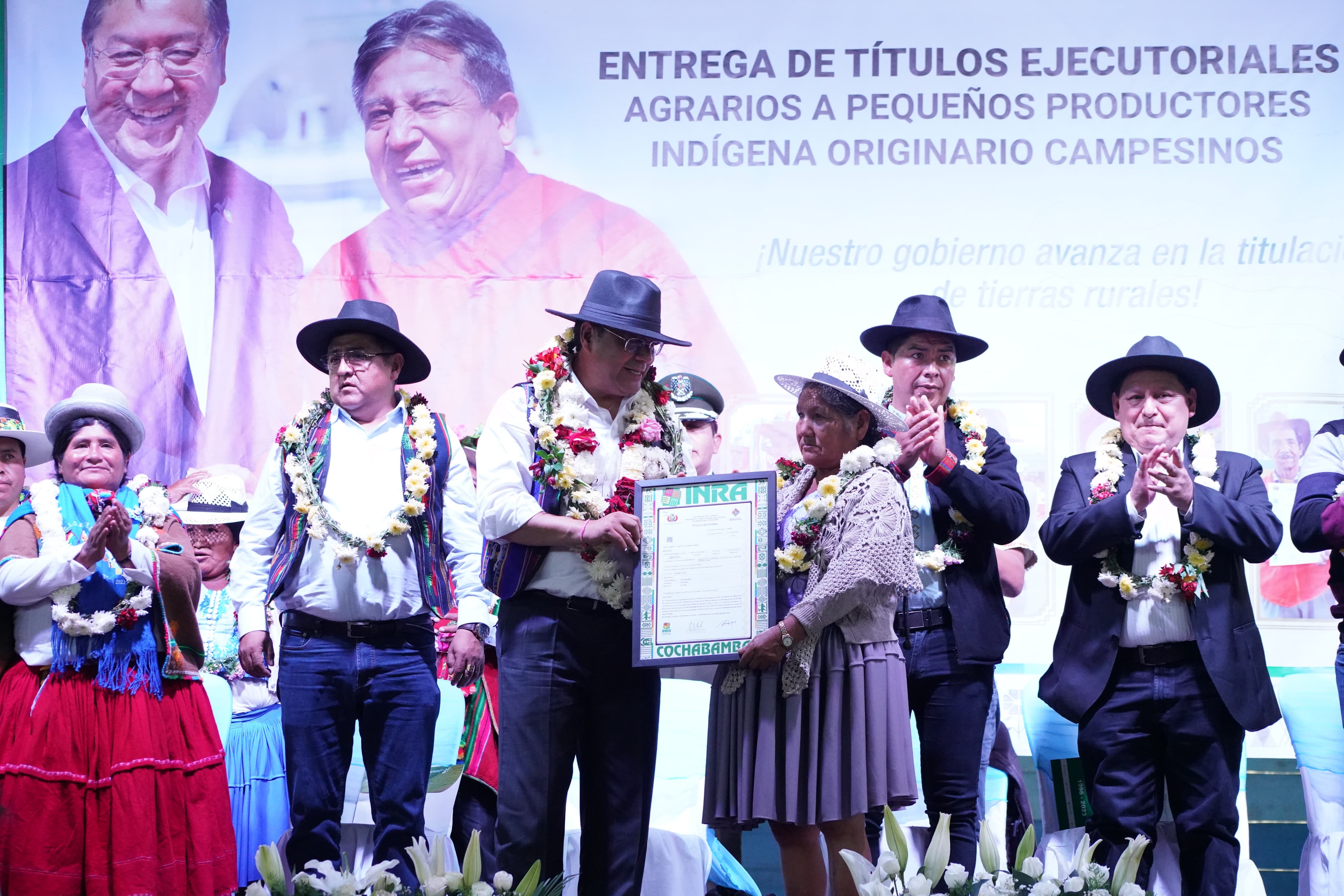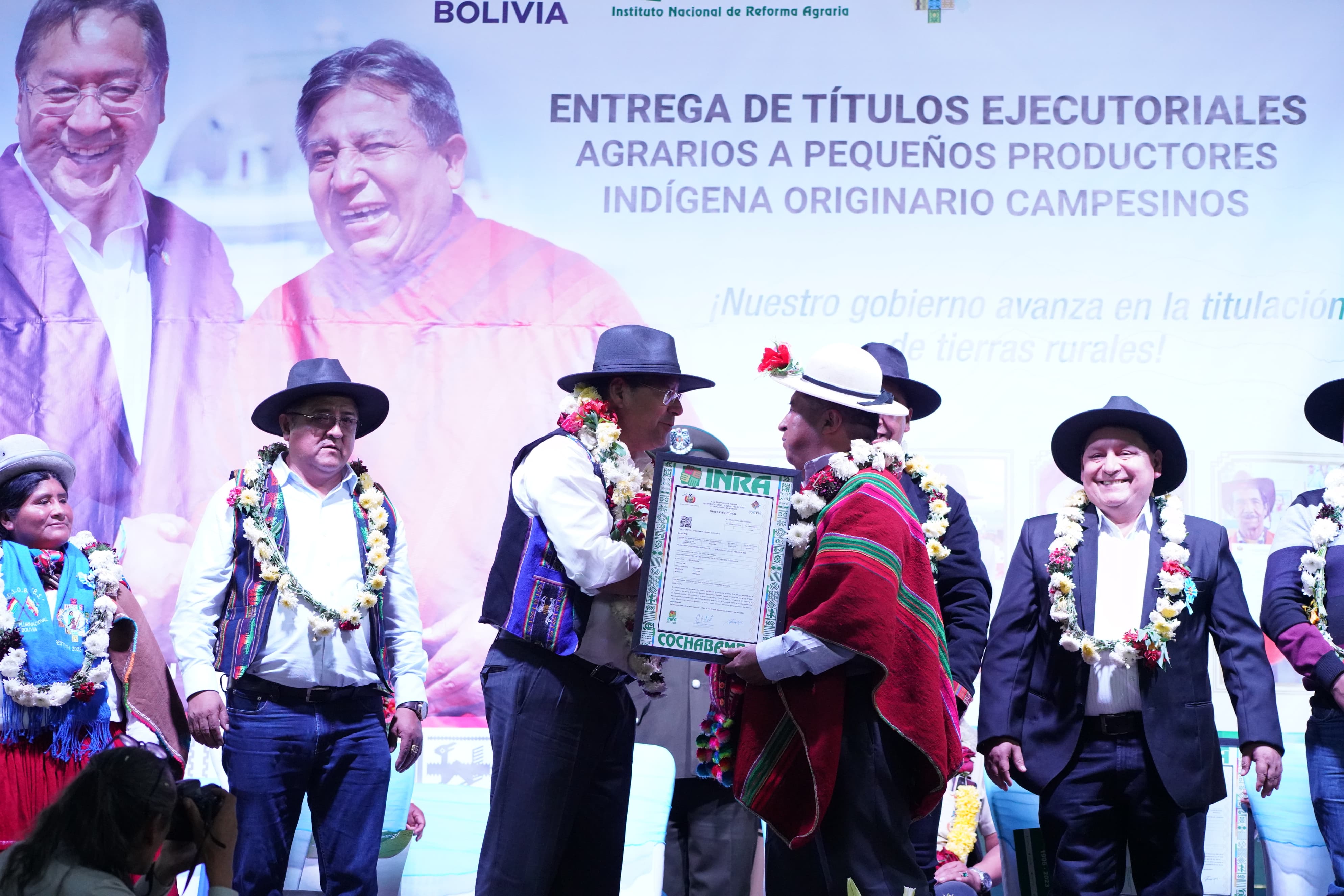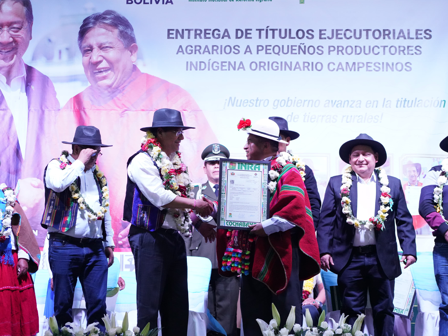 Presidente entrega títulos de propiedad a productores de Cochabamba.Estefanny Bolivar ArancibiaGalería Fotográfica 14 Septiembre 2023 Visto: 21313ShareTwittearshare with Whatsappshare with Telegram Fuente: Comunicación PresidencialAnteriorSiguiente