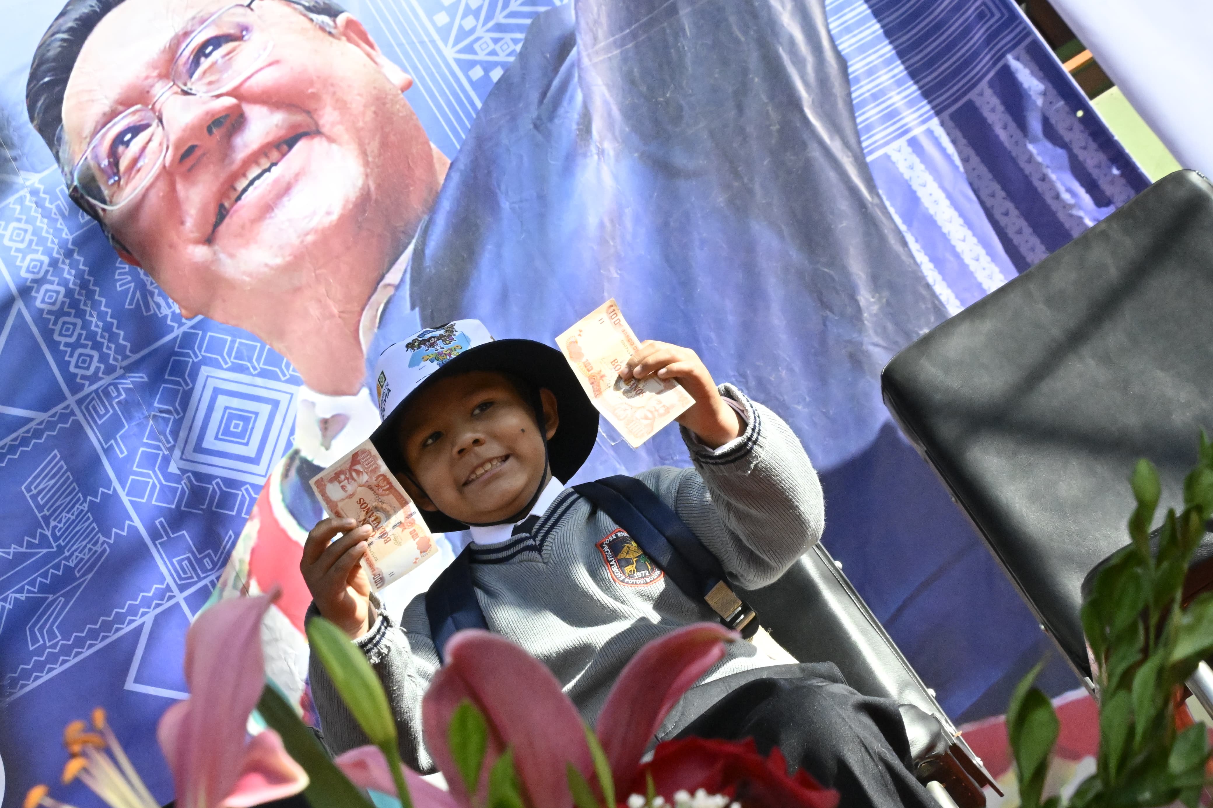 Presidente inaugura desde Potosí la entrega del Bono Juancito Pinto.Estefanny Bolivar ArancibiaGalería Fotográfica 09 Octubre 2023 Visto: 16765ShareTwittearshare with Whatsappshare with Telegram Fuente: Comunicación PresidencialAnteriorSiguiente