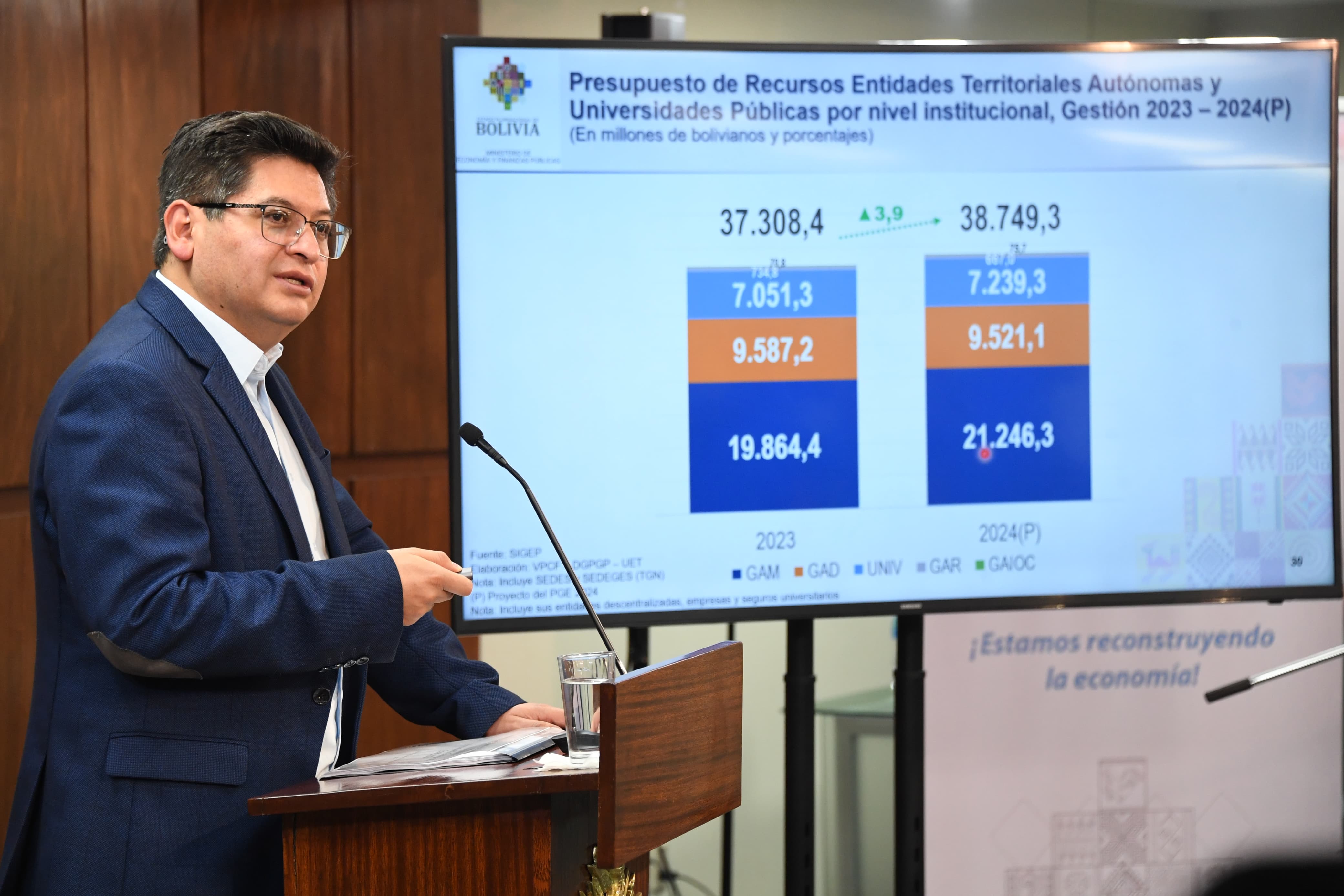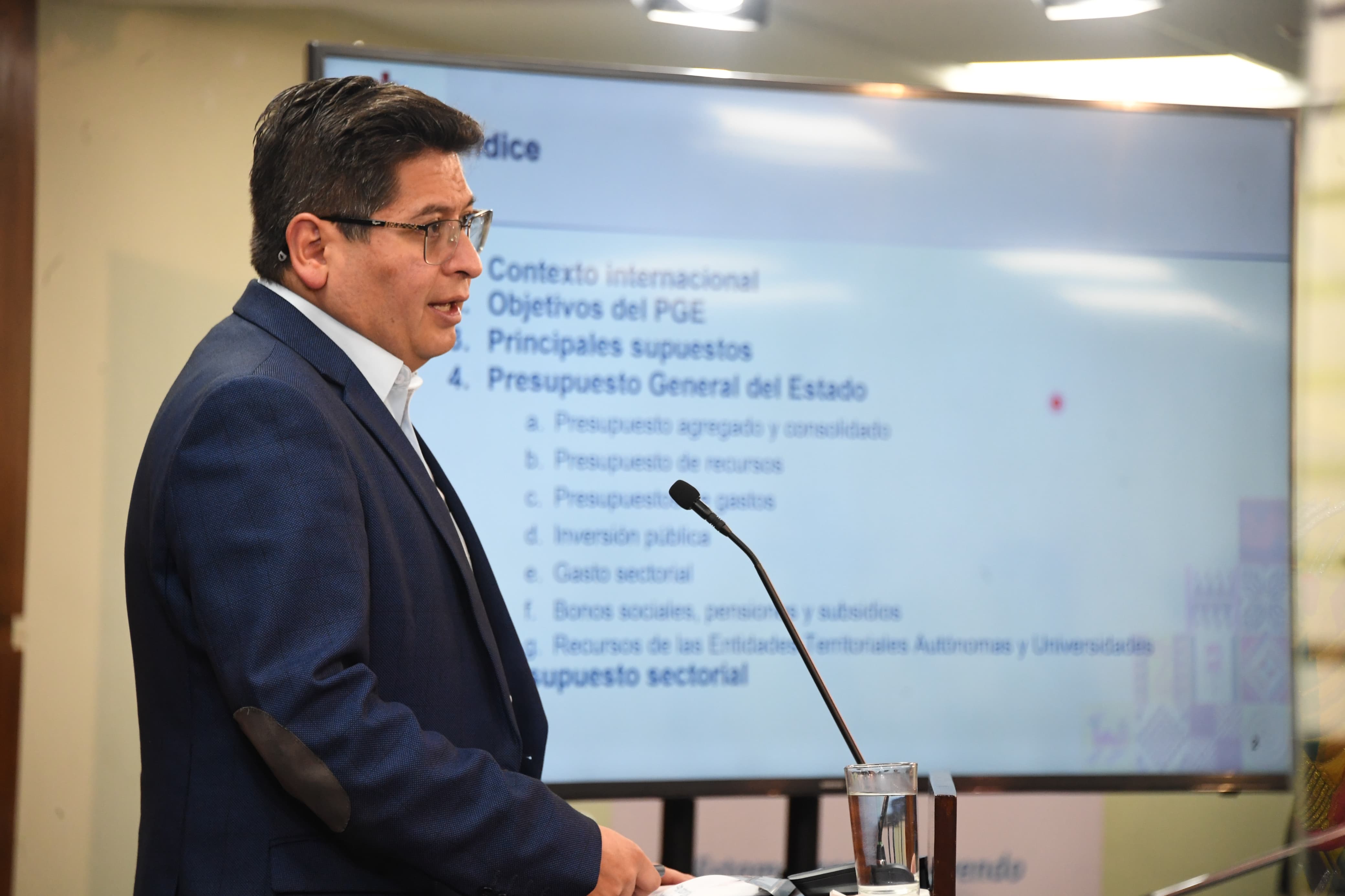 El ministro de Economía y Finanzas Públicas Marcelo Montenegro informó sobre el Proyecto de Ley del Presupuesto General del Estado 2024Usuario ABIGalería Fotográfica 01 Diciembre 2023 Visto: 6157ShareTwittearshare with Whatsappshare with Telegram Fotografia: ABI - Agencia Boliviana de InformaciónAnteriorSiguiente