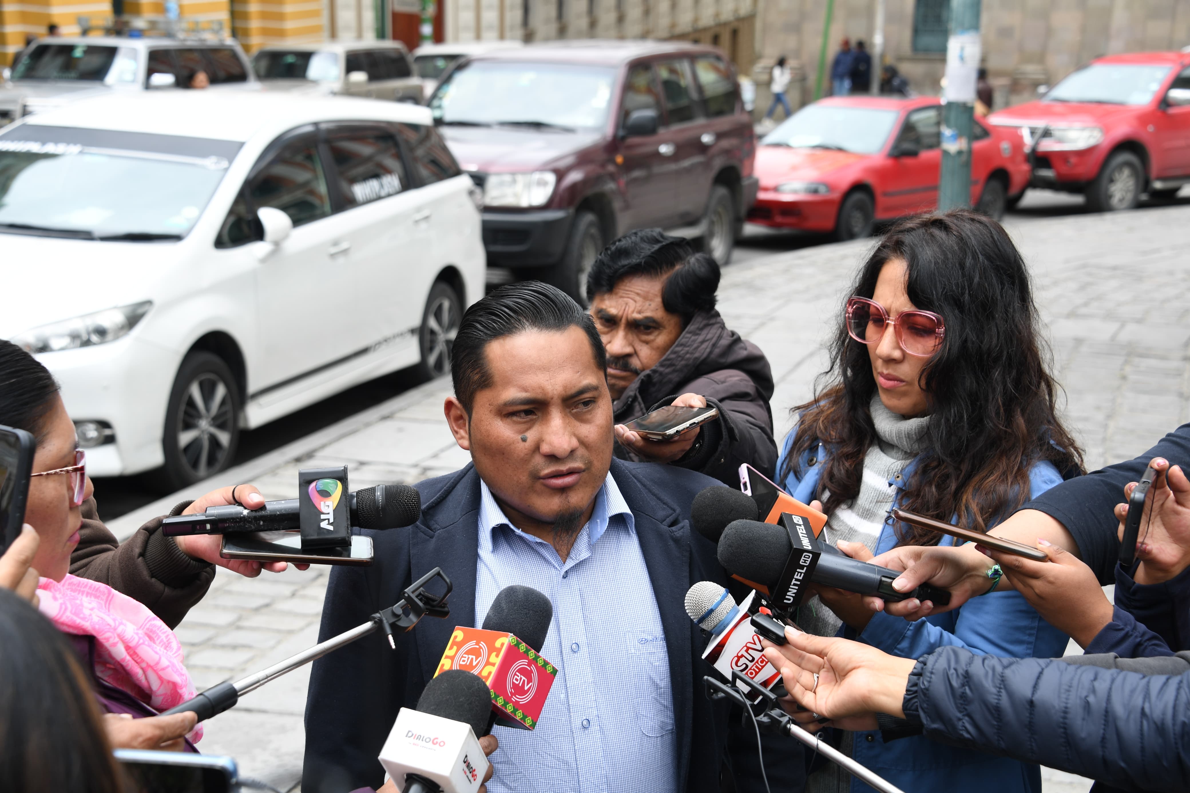 El presidente de la Comisión Política de la Confederación Sindical de Comunidades Interculturales Originarios de Bolivia, Vidal Gómez en conferencia de prensa