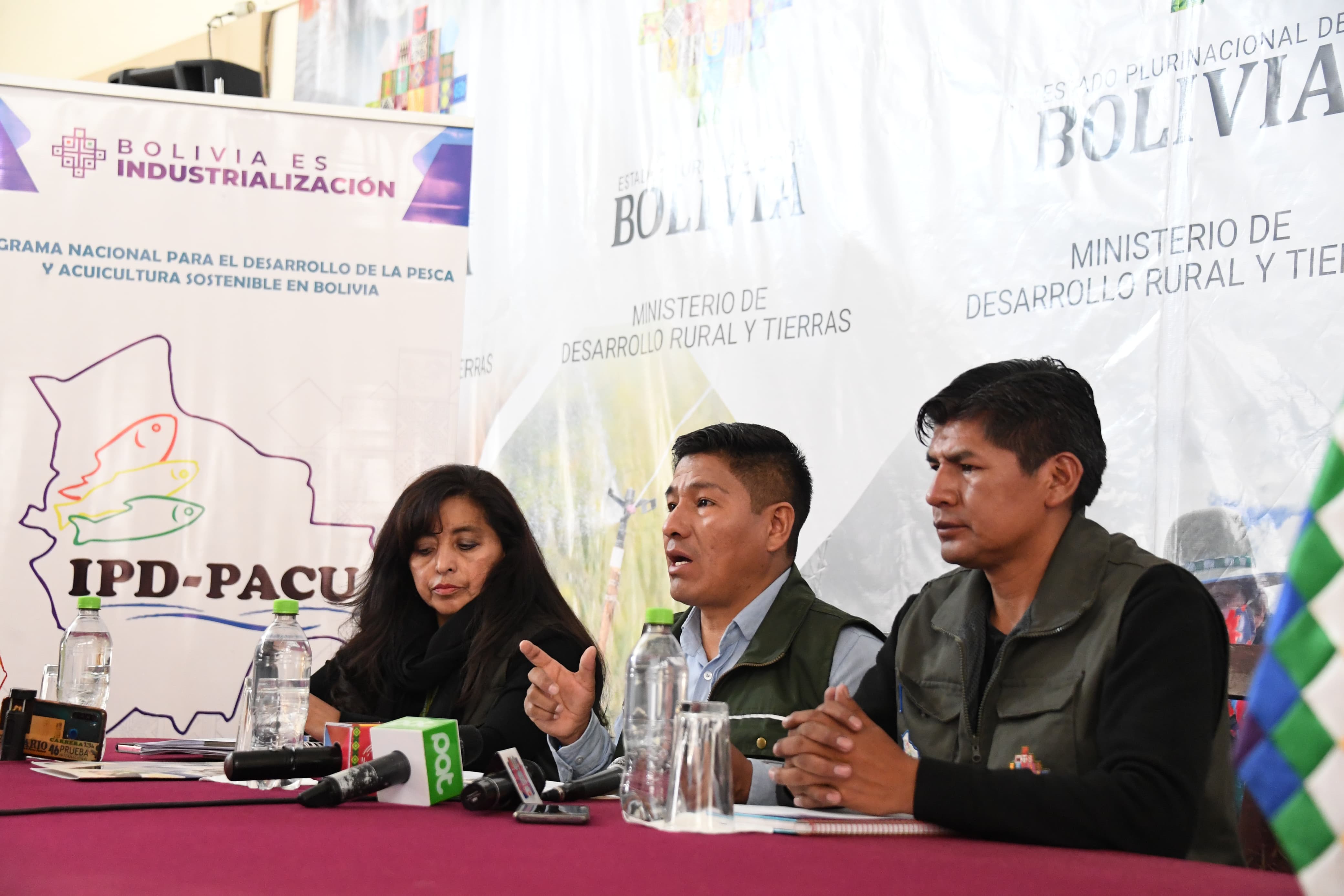 Entrega de Jaulas flotantes, Redes, Equipamiento y Alimento Balanceado destinado al emprendimiento de la provincia Los Andes, La Paz, en el marco del programa nacional para el desarrollo de la pesca y agricultura sostenible en Bolivia