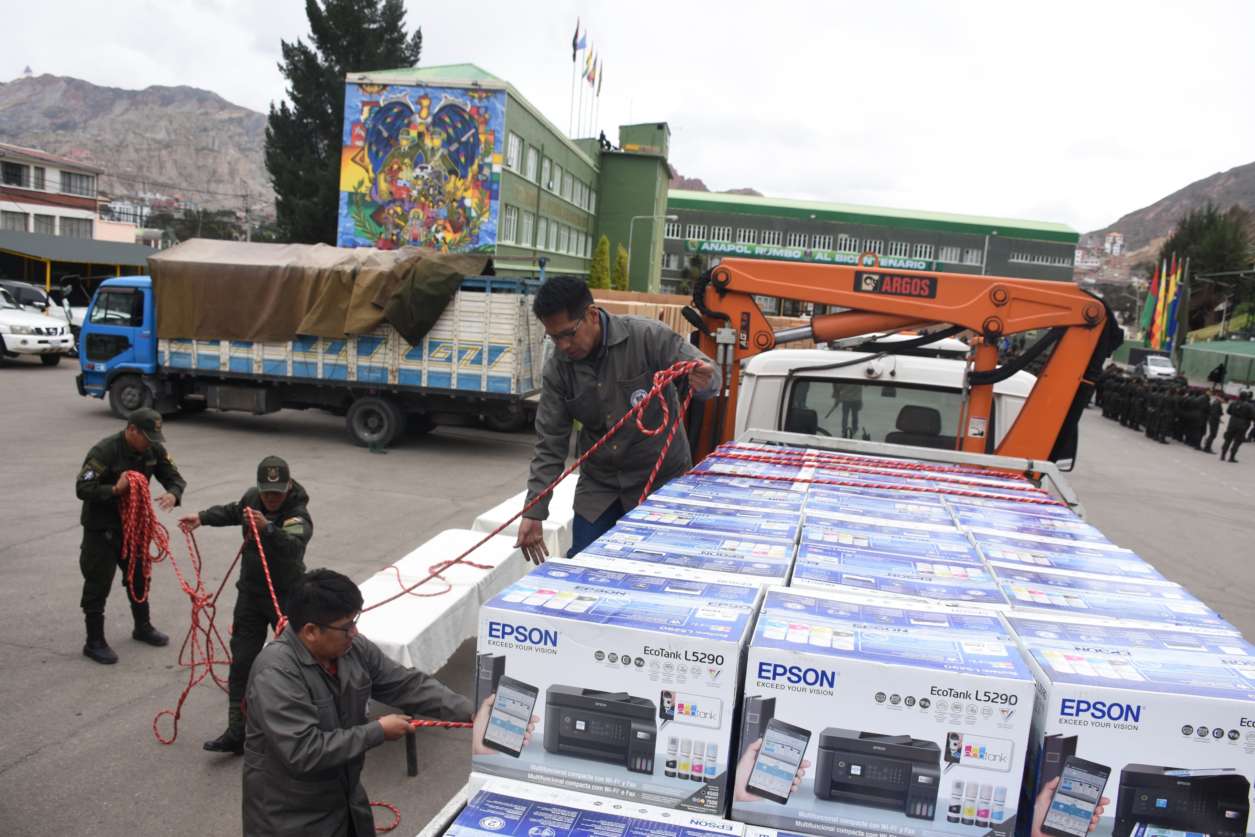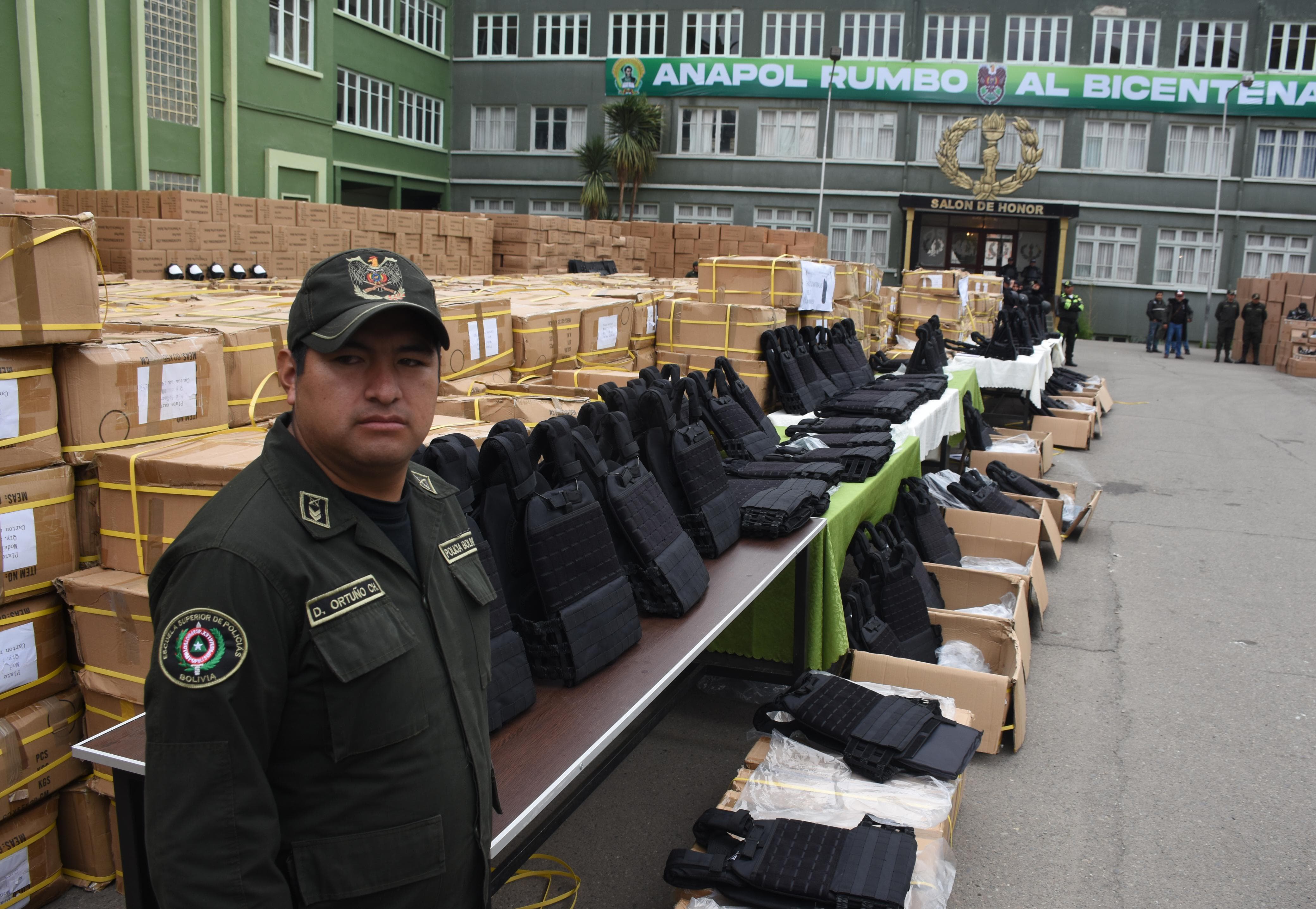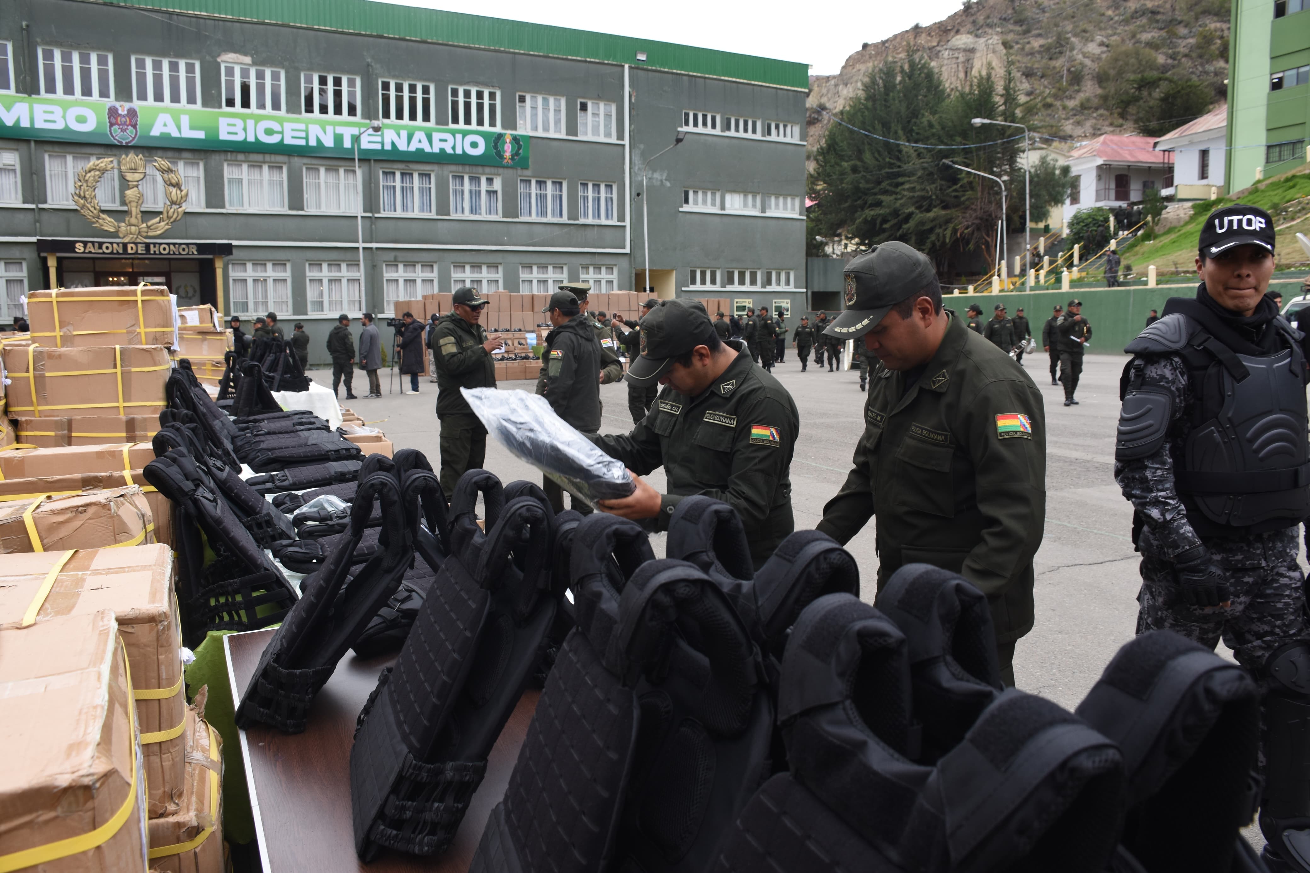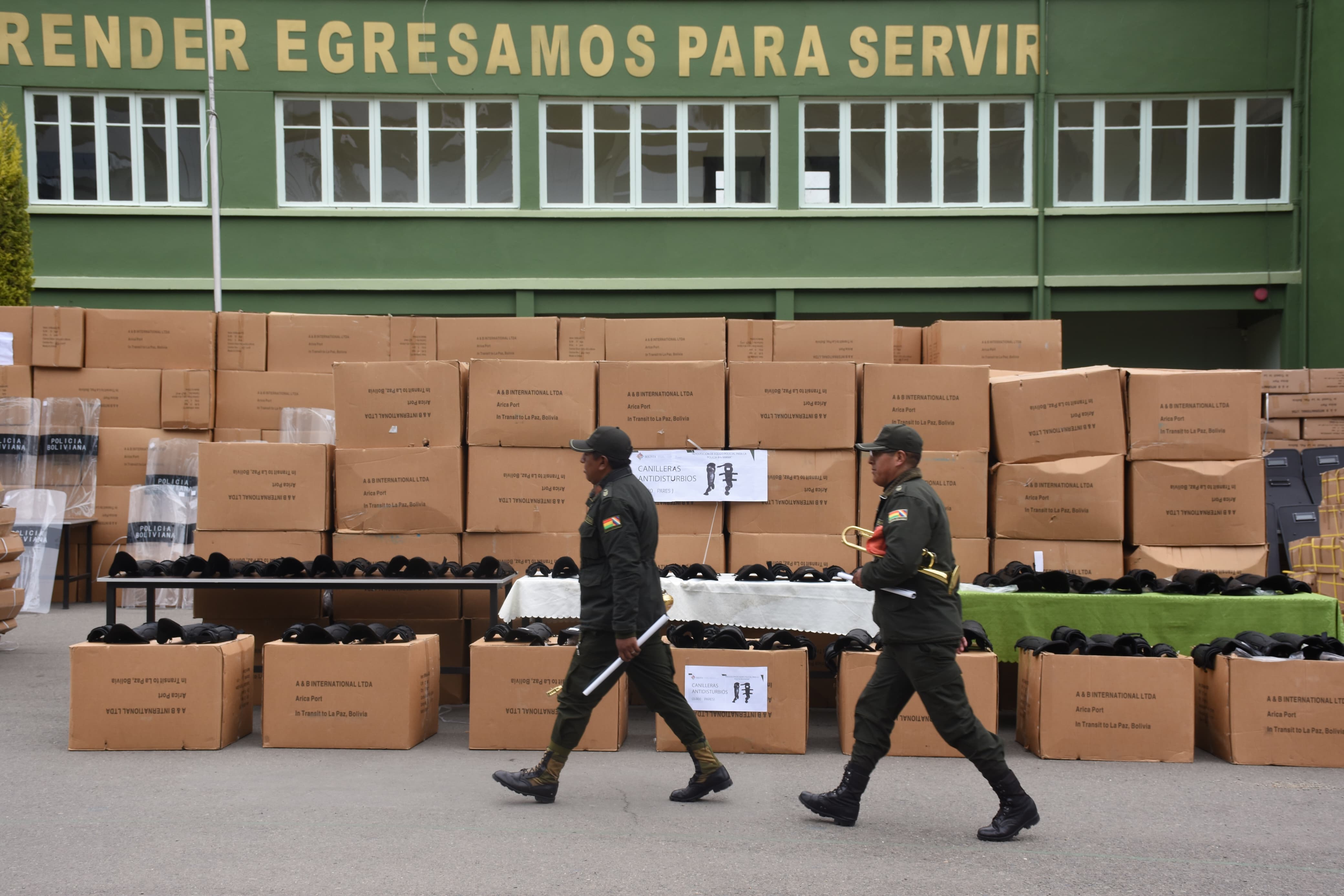 El presidente del Estado Luis Arce Catacora durante el acto de entrega de vestuario y equipamiento a la Policía Boliviana en el patio de Honor de la Academia Nacional de Policías - Anapol, ciudad de La Paz (1 Parte)