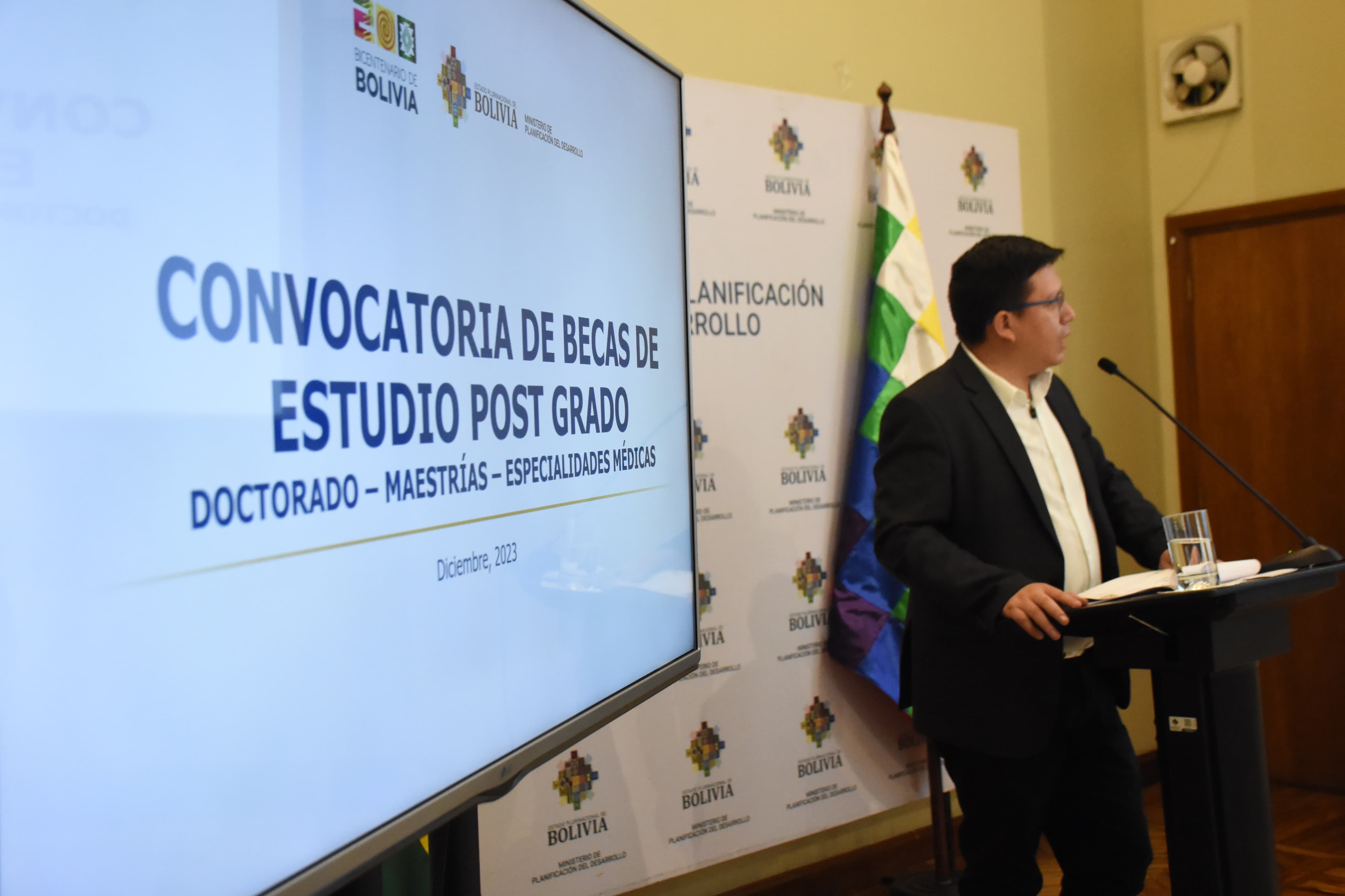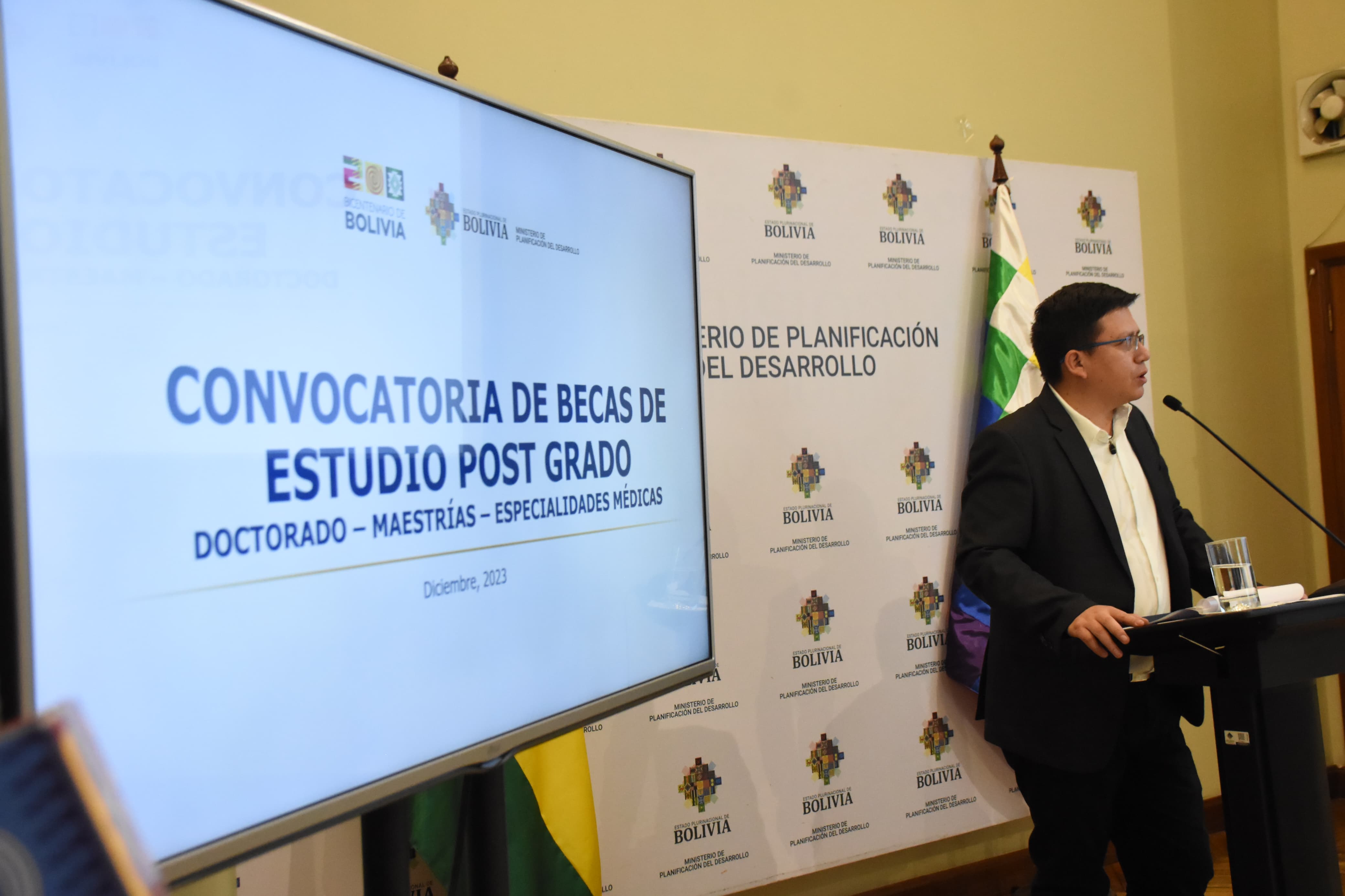 El Ministerio de Planificación del Desarrollo Sergio Cusicanqui, anuncio el lanzamiento de la convocatoria para becas de Post Grado, maestrías y especialidades medicas Usuario ABIGalería Fotográfica 26 Diciembre 2023 Visto: 7486ShareTwittearshare with Whatsappshare with Telegram Fotografia: Fotos Jorge MamaniAnteriorSiguiente