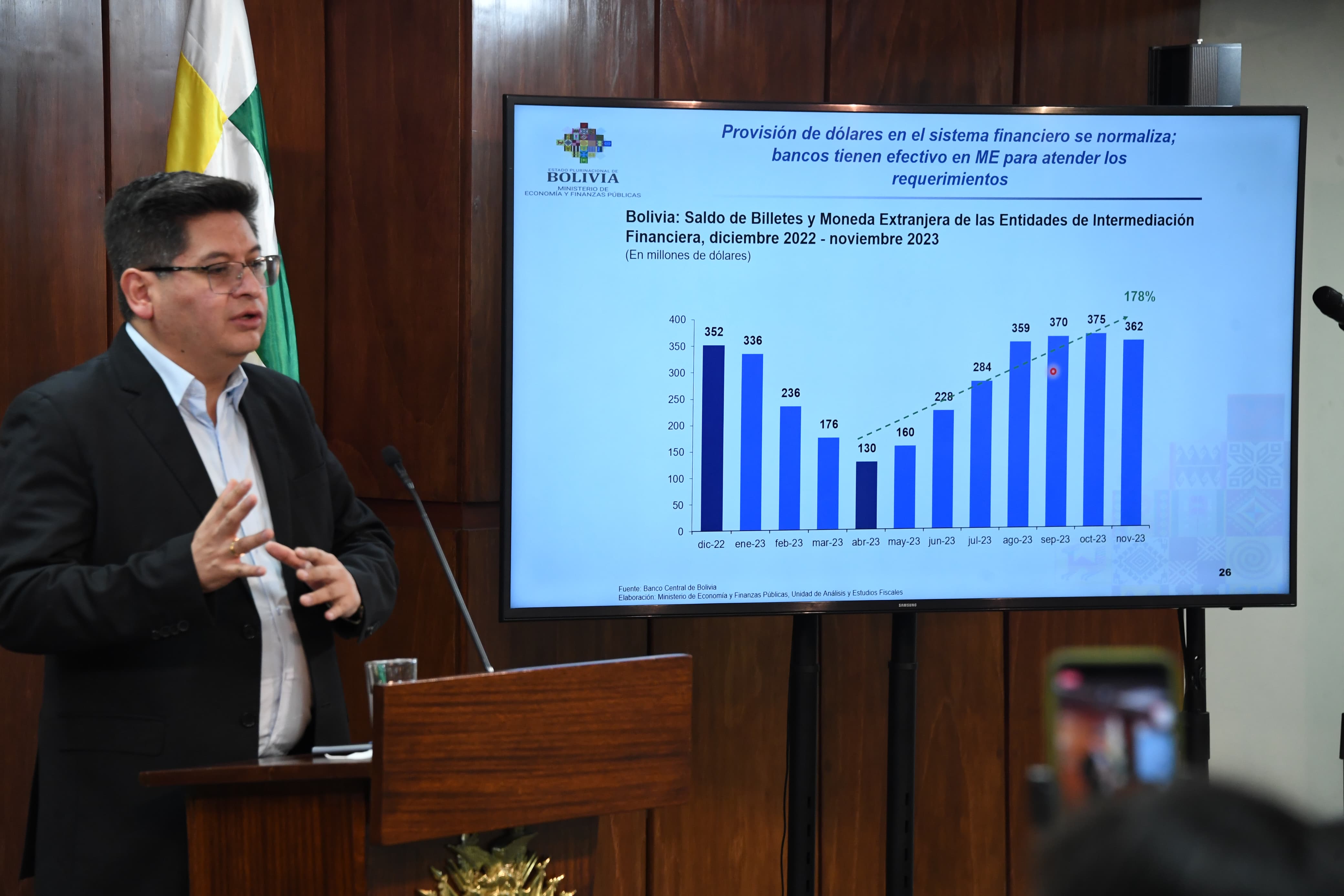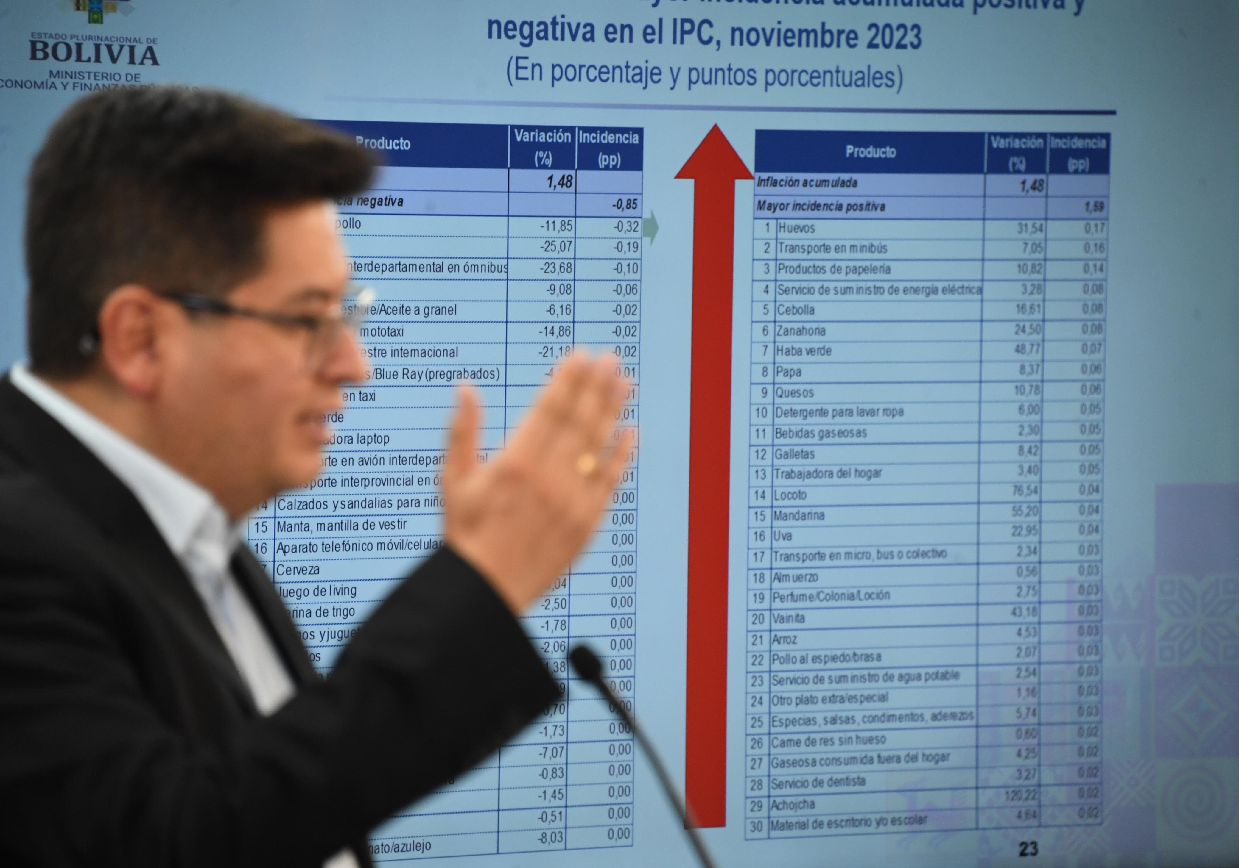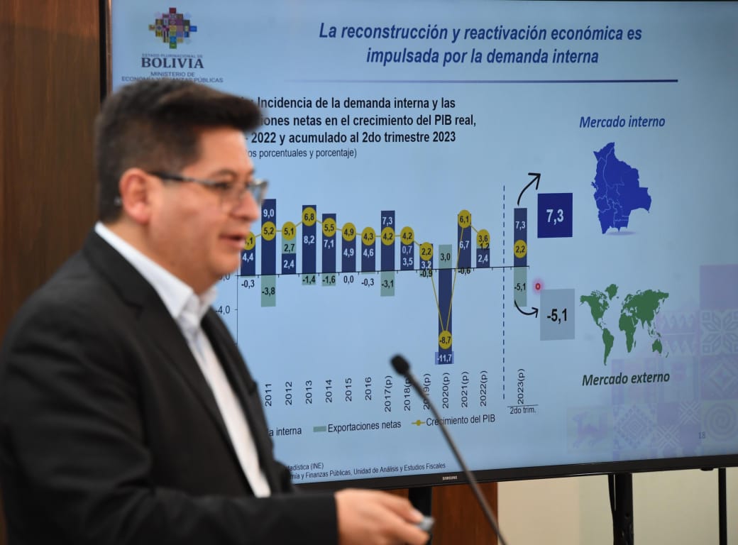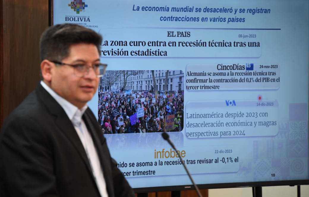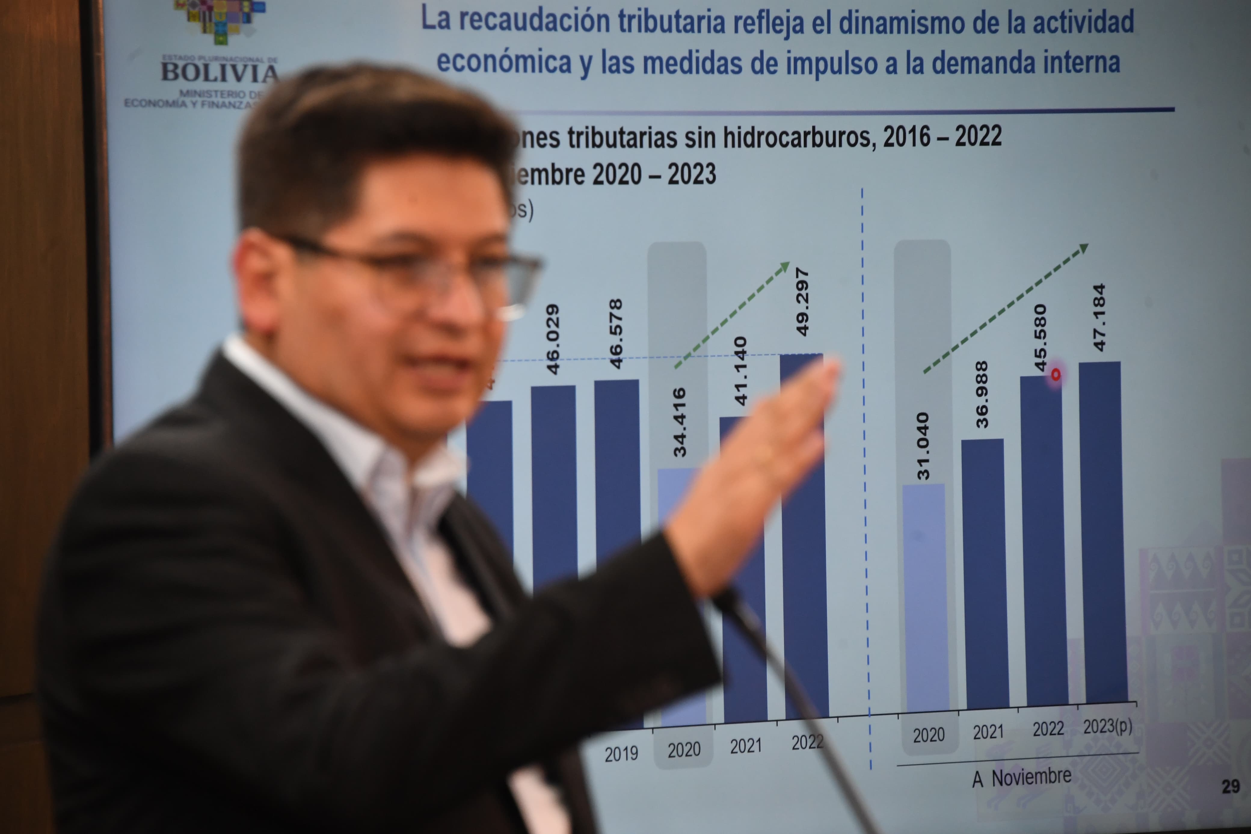 El ministro de Economía, Marcelo Montenegro brinda datos y hace un balance de la economía boliviana en 2023Usuario ABIGalería Fotográfica 02 Enero 2024 Visto: 6019ShareTwittearshare with Whatsappshare with Telegram fotografía: Josue Cortez / ABI (Agencia Boliviana de Información)AnteriorSiguiente