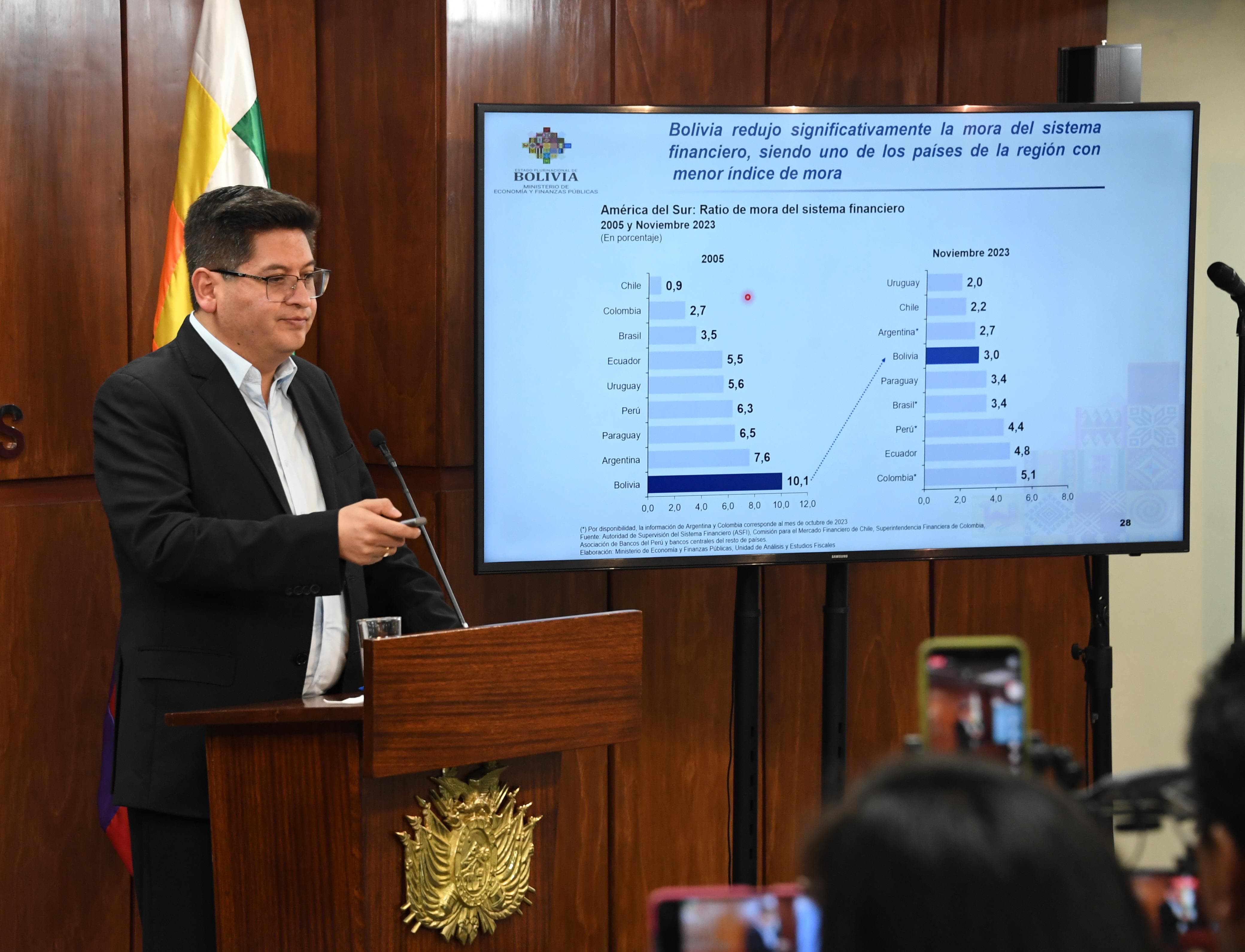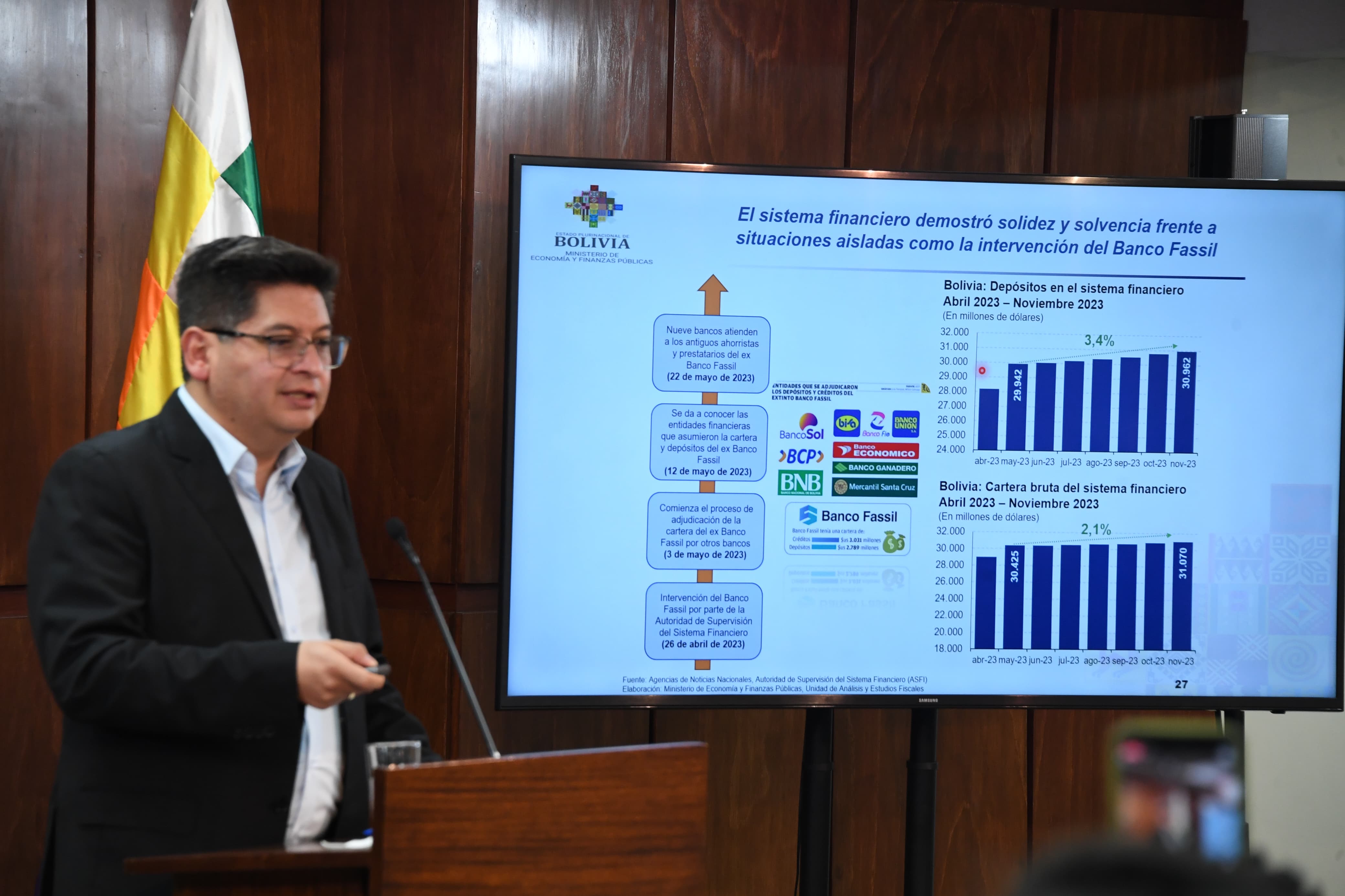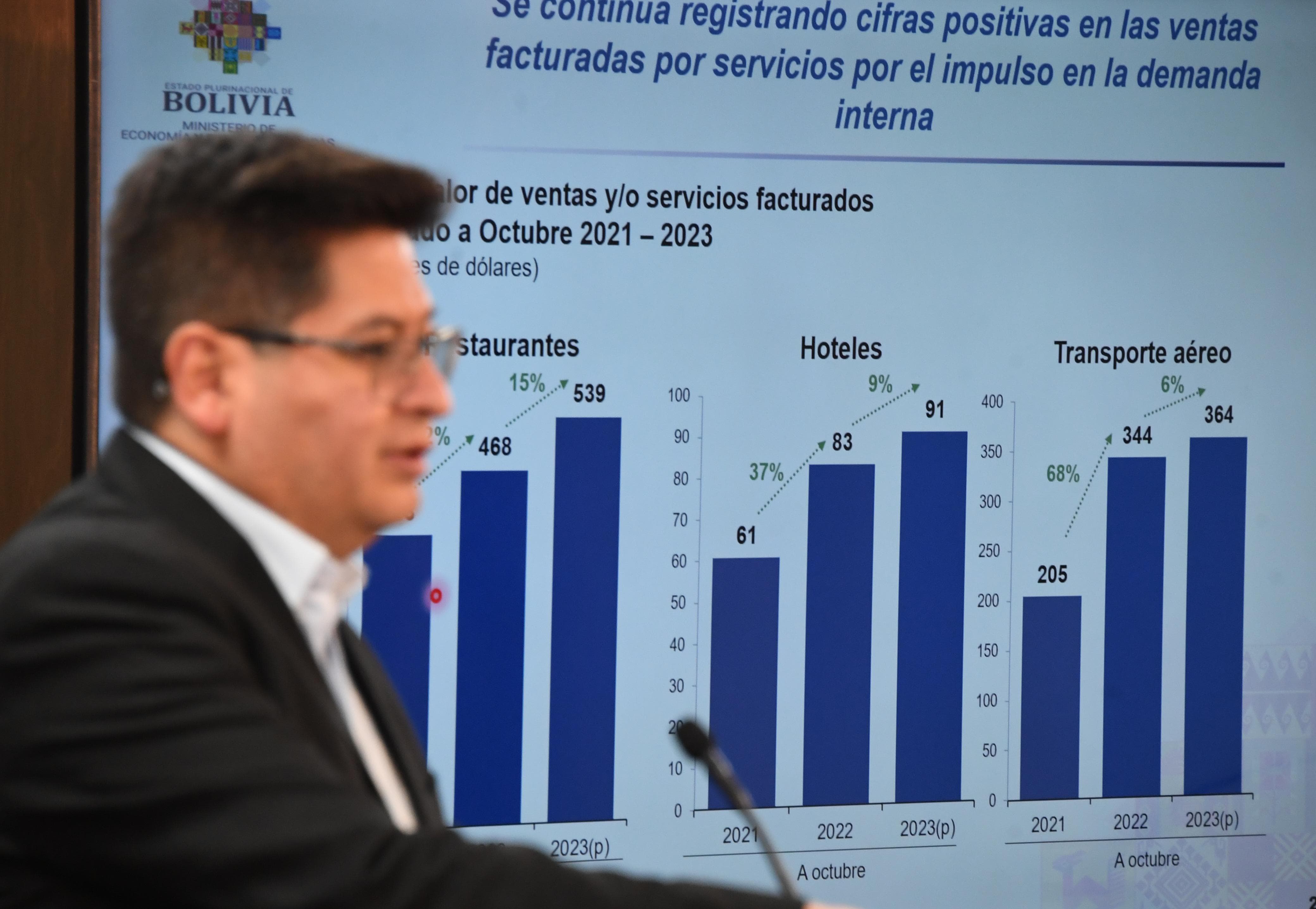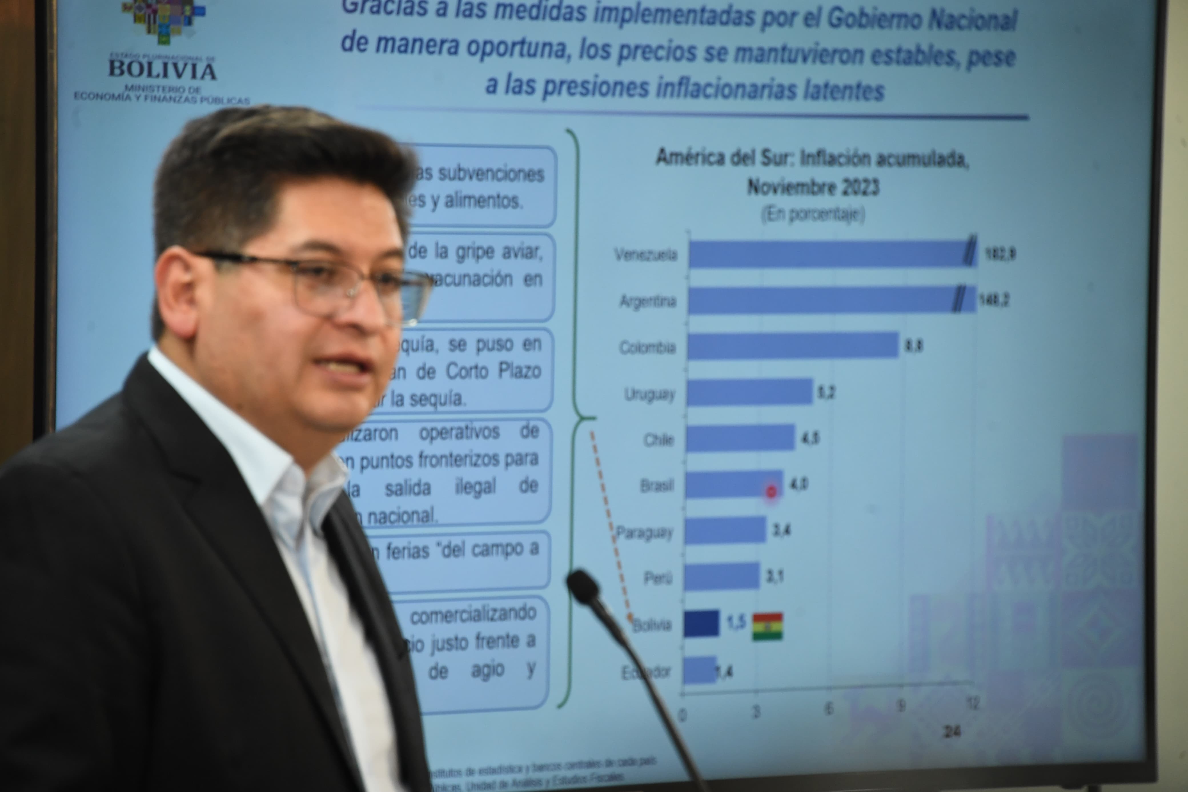 El ministro de Economía, Marcelo Montenegro brinda datos y hace un balance de la economía boliviana en 2023Usuario ABIGalería Fotográfica 02 Enero 2024 Visto: 6019ShareTwittearshare with Whatsappshare with Telegram fotografía: Josue Cortez / ABI (Agencia Boliviana de Información)AnteriorSiguiente