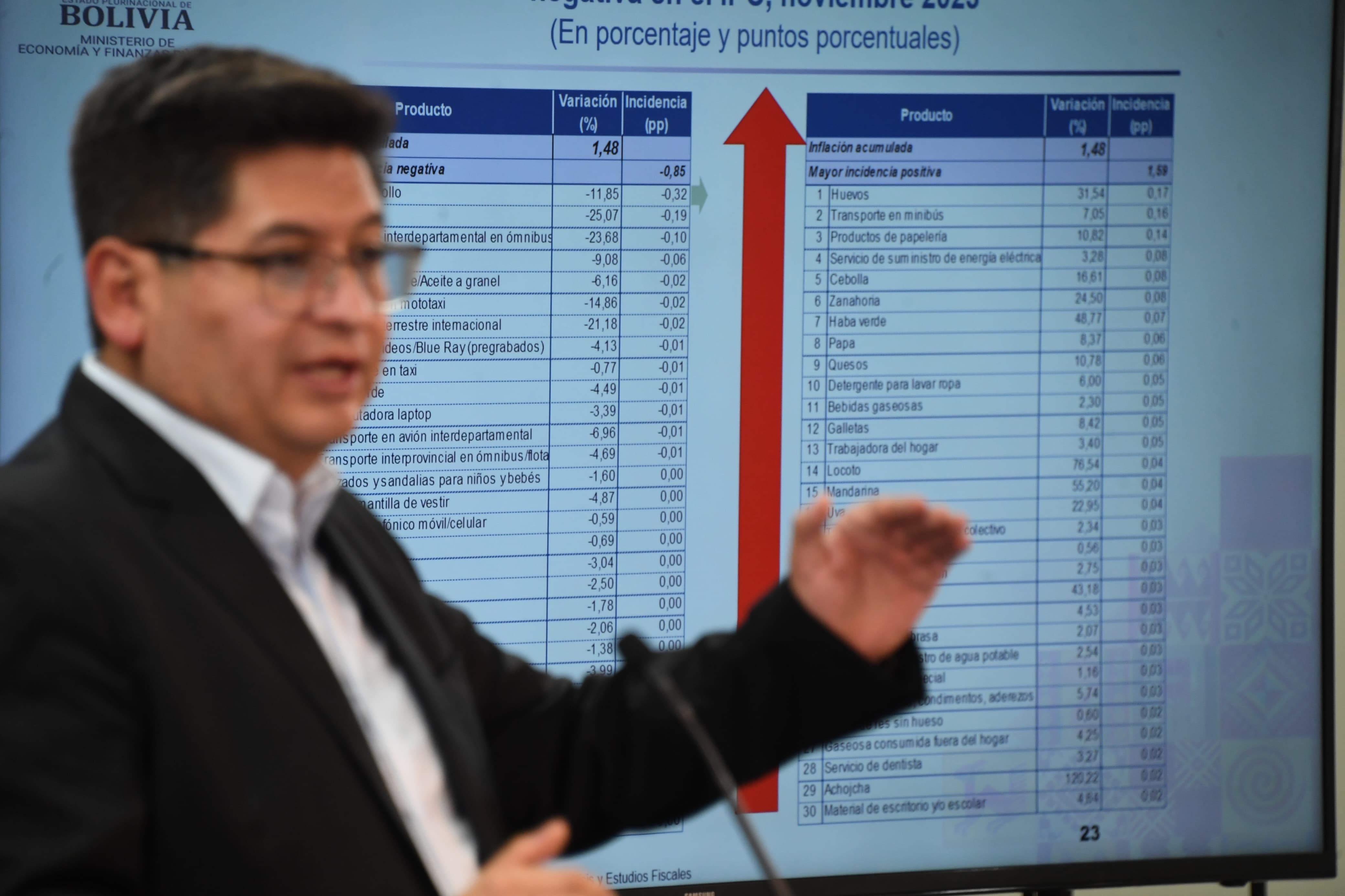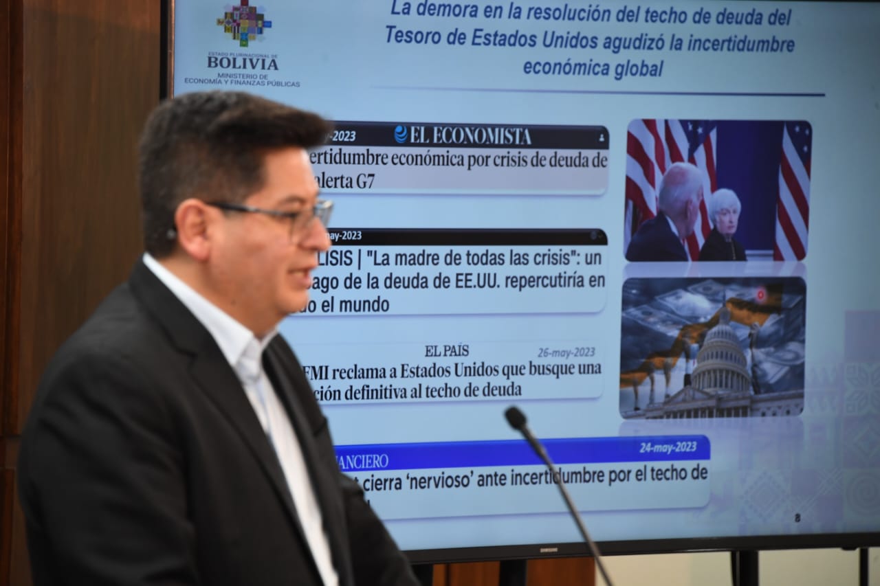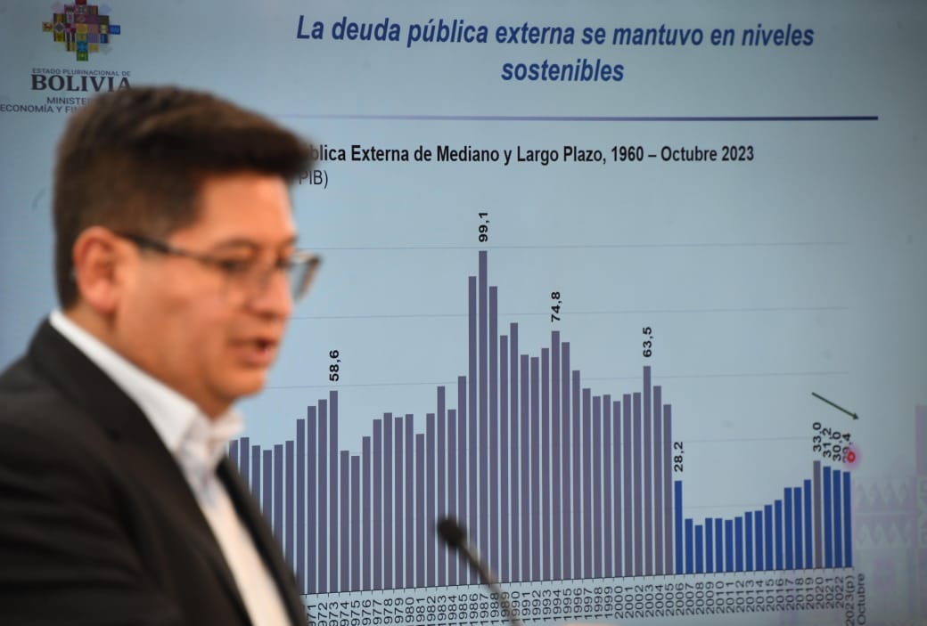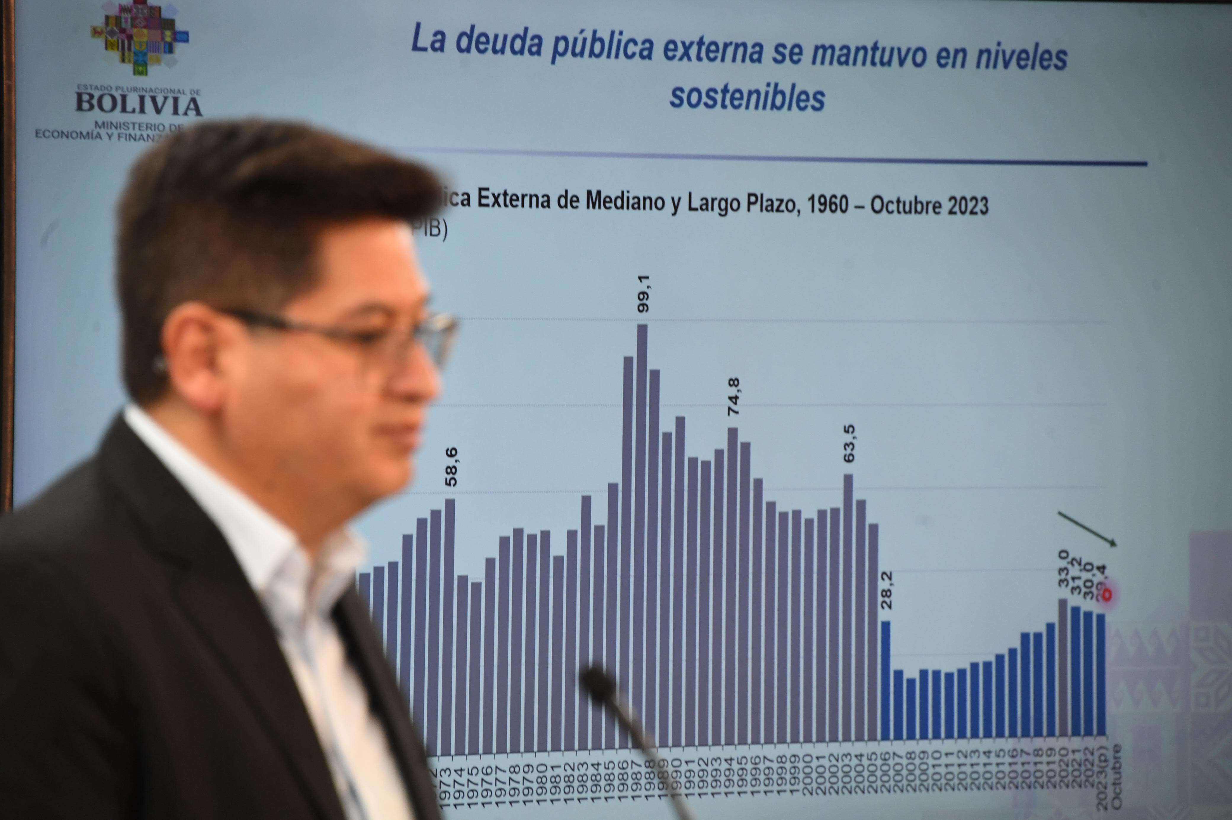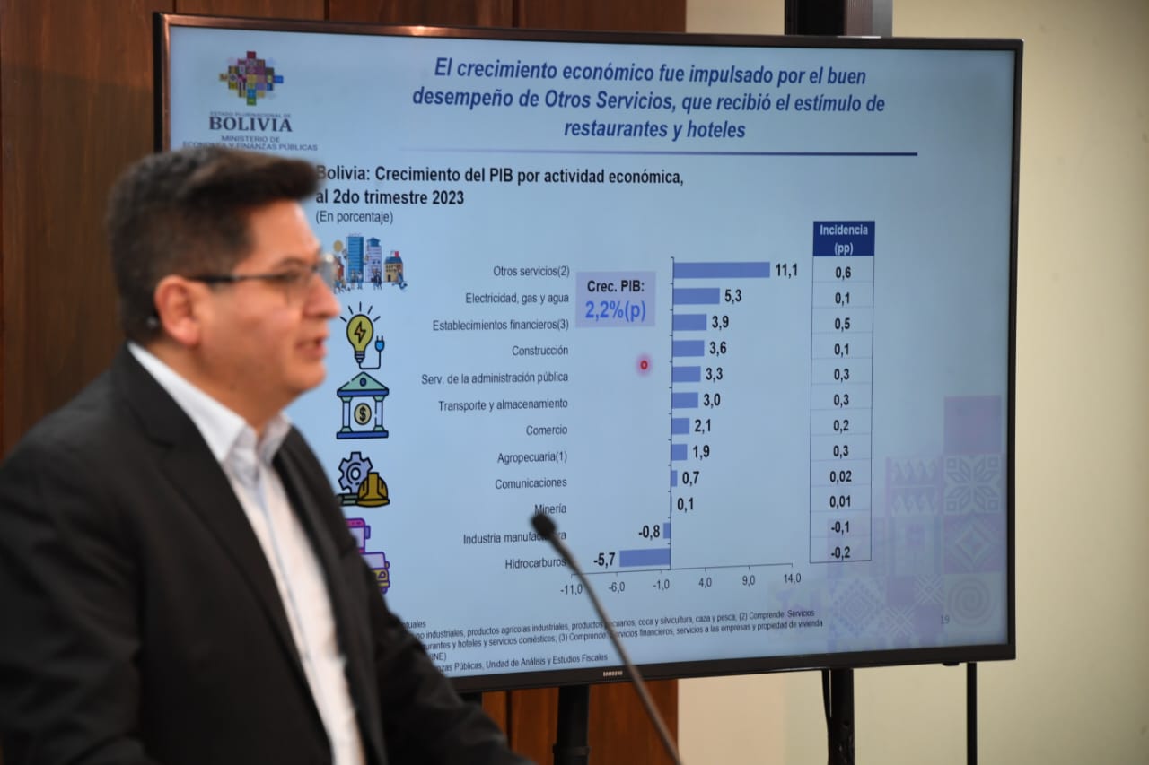 El ministro de Economía, Marcelo Montenegro brinda datos y hace un balance de la economía boliviana en 2023Usuario ABIGalería Fotográfica 02 Enero 2024 Visto: 6019ShareTwittearshare with Whatsappshare with Telegram fotografía: Josue Cortez / ABI (Agencia Boliviana de Información)AnteriorSiguiente