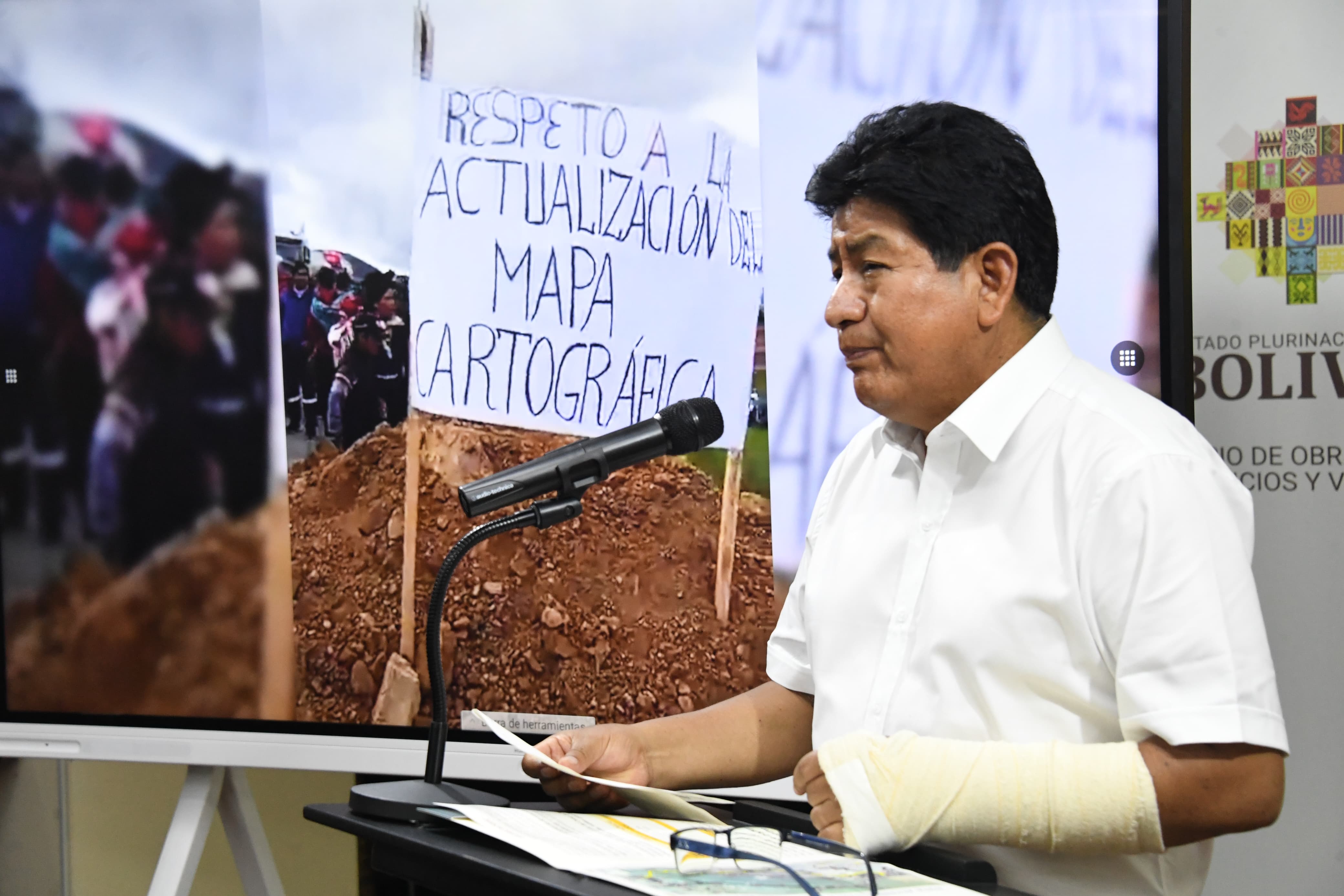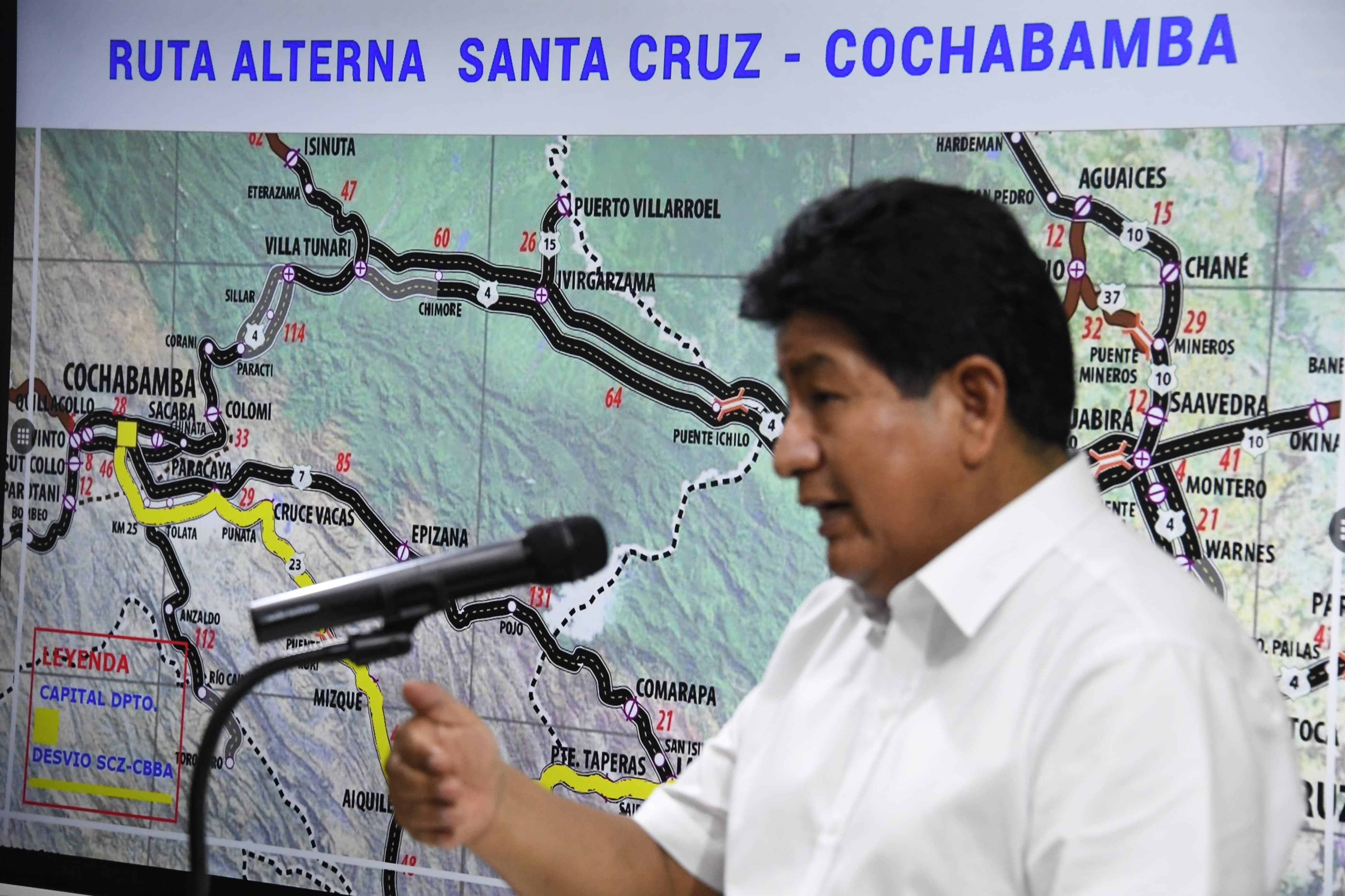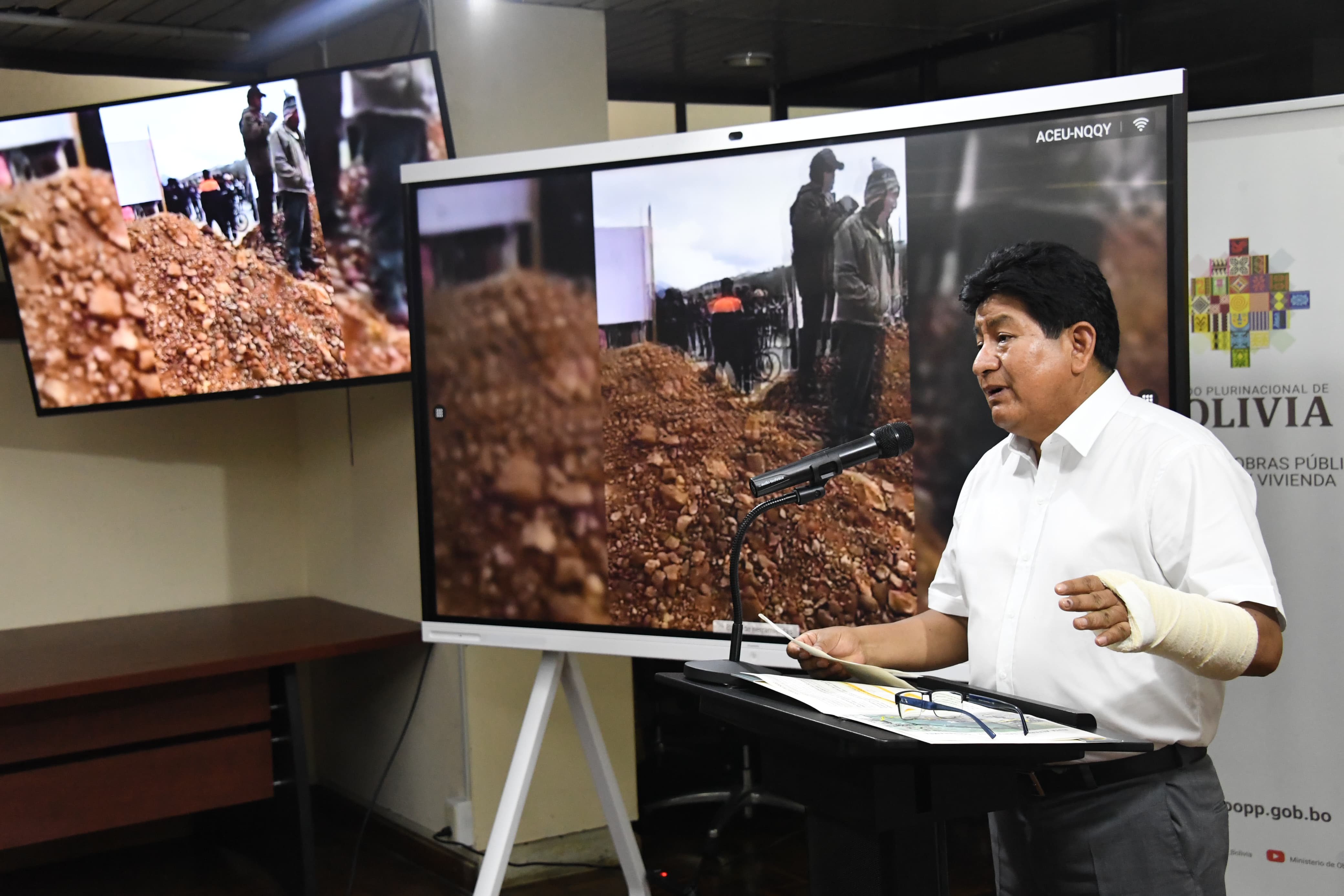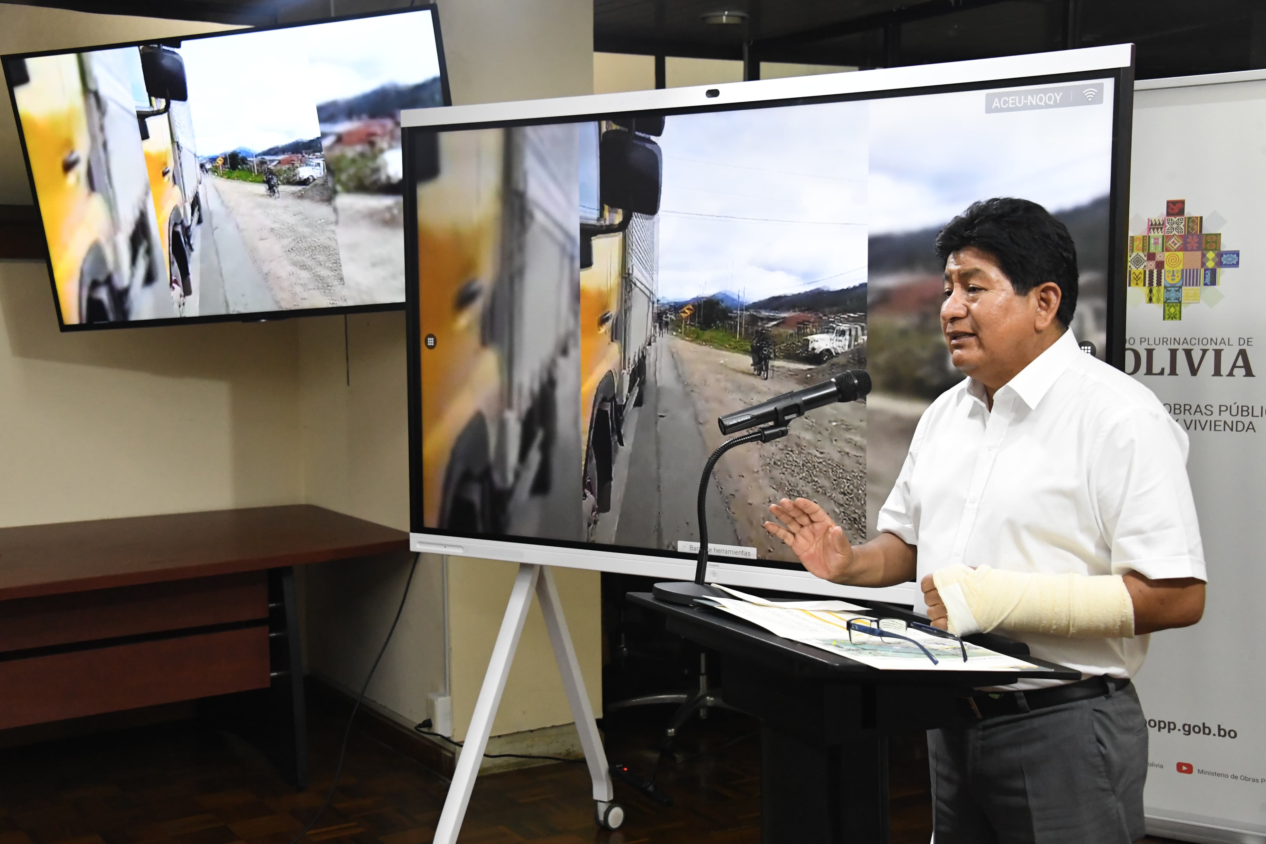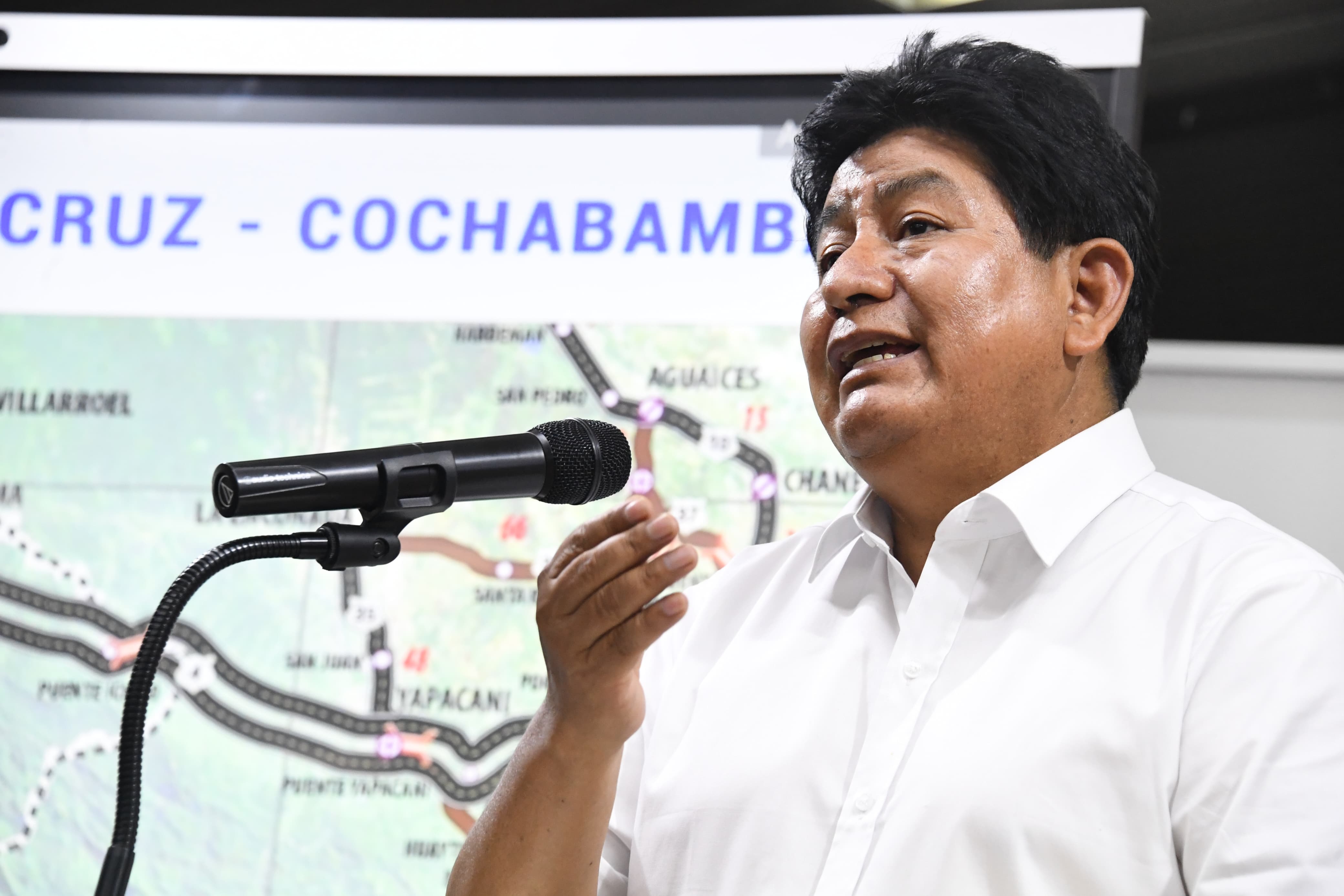 El ministro de Obras Públicas, Servicios y Vivienda, Edgar Montaño, brinda datos de las pérdidas económicas por bloqueos en la carretera Cochabamba - Santa Cruz, y rutas alternas