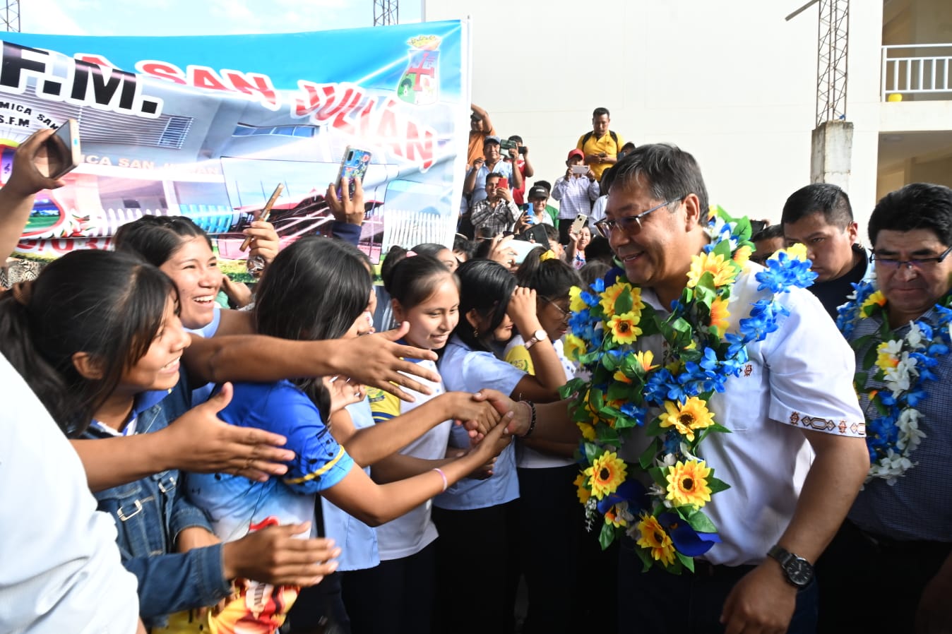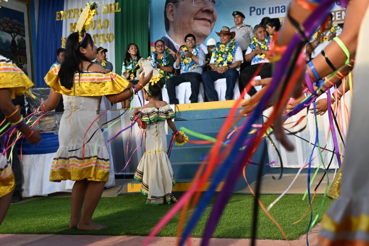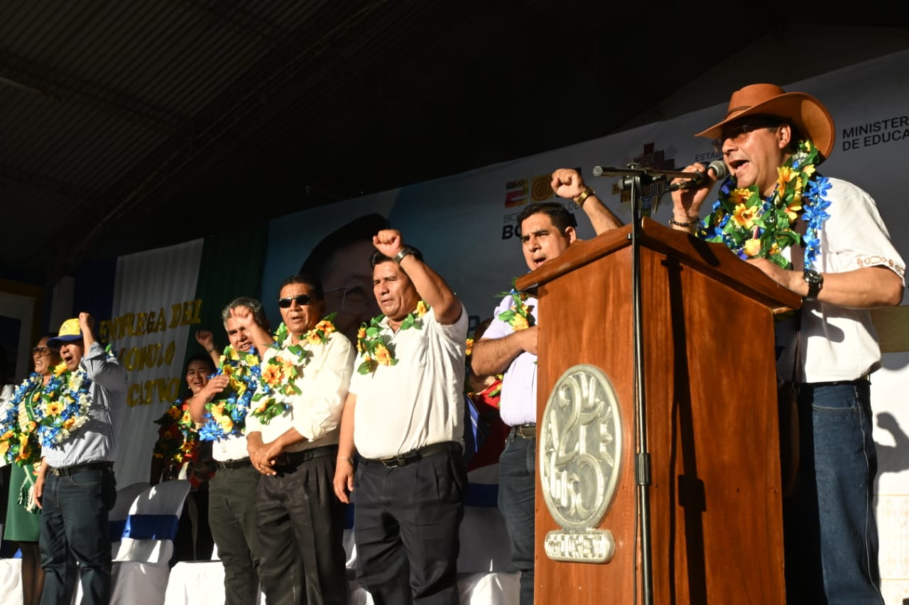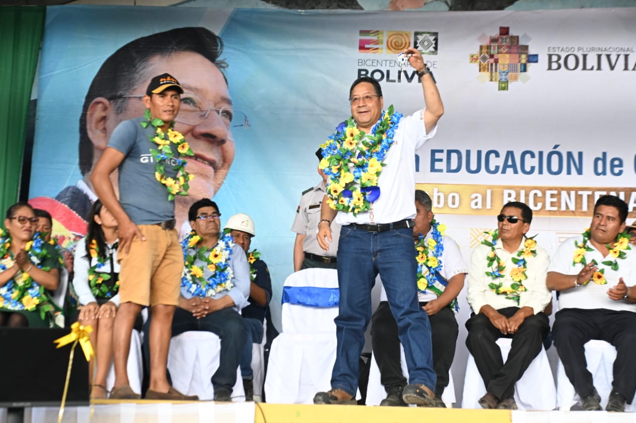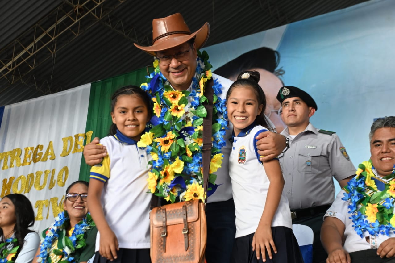 El presidente del Estado, Luis Arce Catacora, entrega la Unidad Educativa El Progreso, un proyecto de enlosetado y viviendas sociales en el aniversario del municipio de San Julián, Santa CruzUsuario ABIGalería Fotográfica 24 Junio 2024 Visto: 2506ShareTwittearshare with Whatsappshare with TelegramFuente: comunicación Presidencial AnteriorSiguiente