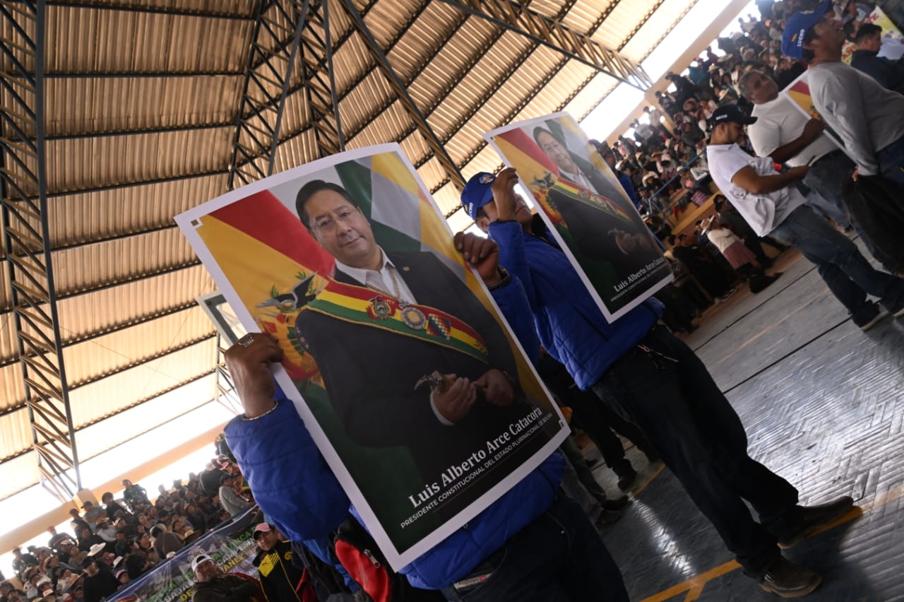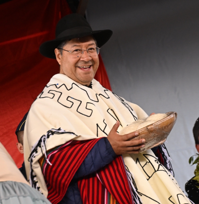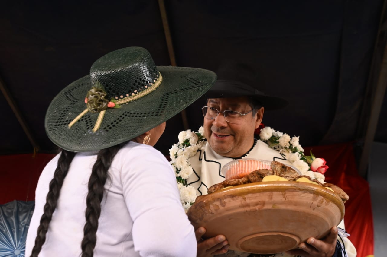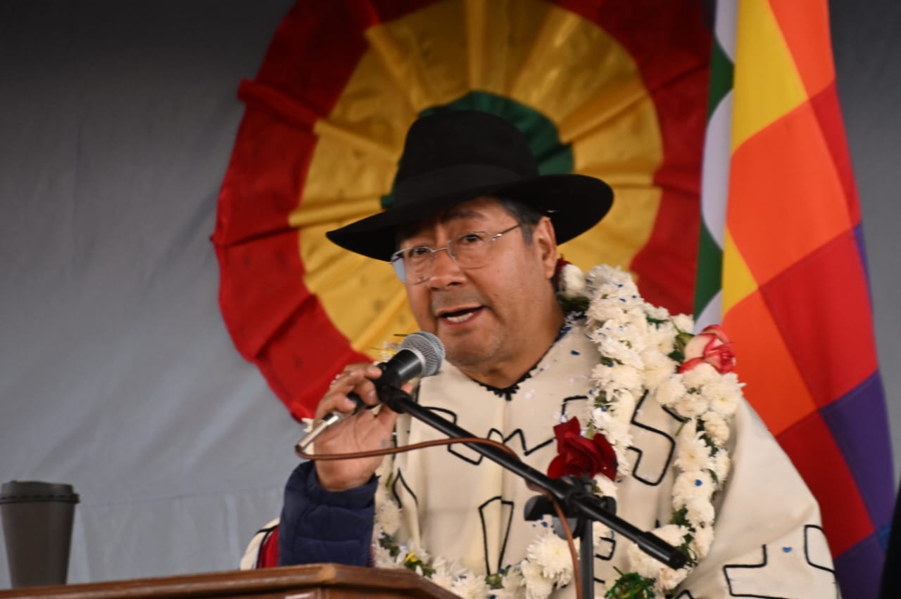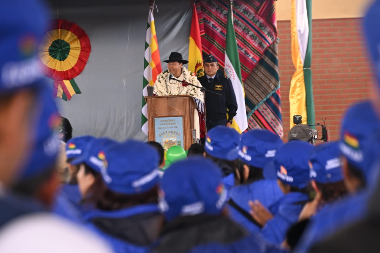 El presidente del Estado, Luis Arce Catacora, entrega en el municipio de Santiváñez la Ley 1550 que declara Prioridad Nacional incorporar a la Red Vial Fundamental la Carretera Integración entre los departamentos de Potosí y Cochabamba