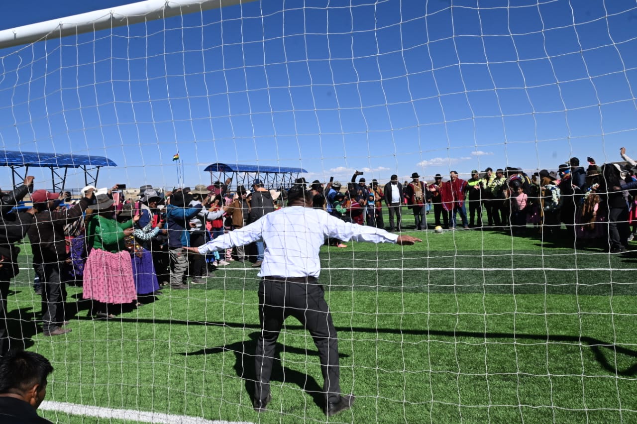 El presidente del Estado, Luis Arce Catacora, ch'alla y entrega cancha con césped sintético en Batallas, La PazUsuario ABIGalería Fotográfica 18 Julio 2024 Visto: 3015ShareTwittearshare with Whatsappshare with TelegramFuente Comunicación Presidencial AnteriorSiguiente