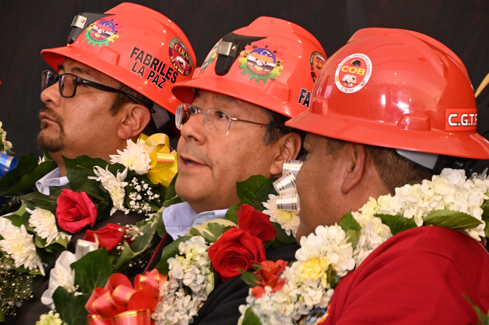 El presidente del Estado, Luis Arce Catacora, participa en el aniversario de la Federación Departamental de Trabajadores Fabriles de La PazUsuario ABIGalería Fotográfica 26 Julio 2024 Visto: 3175ShareTwittearshare with Whatsappshare with TelegramFuente Comunicación Presidencial AnteriorSiguiente