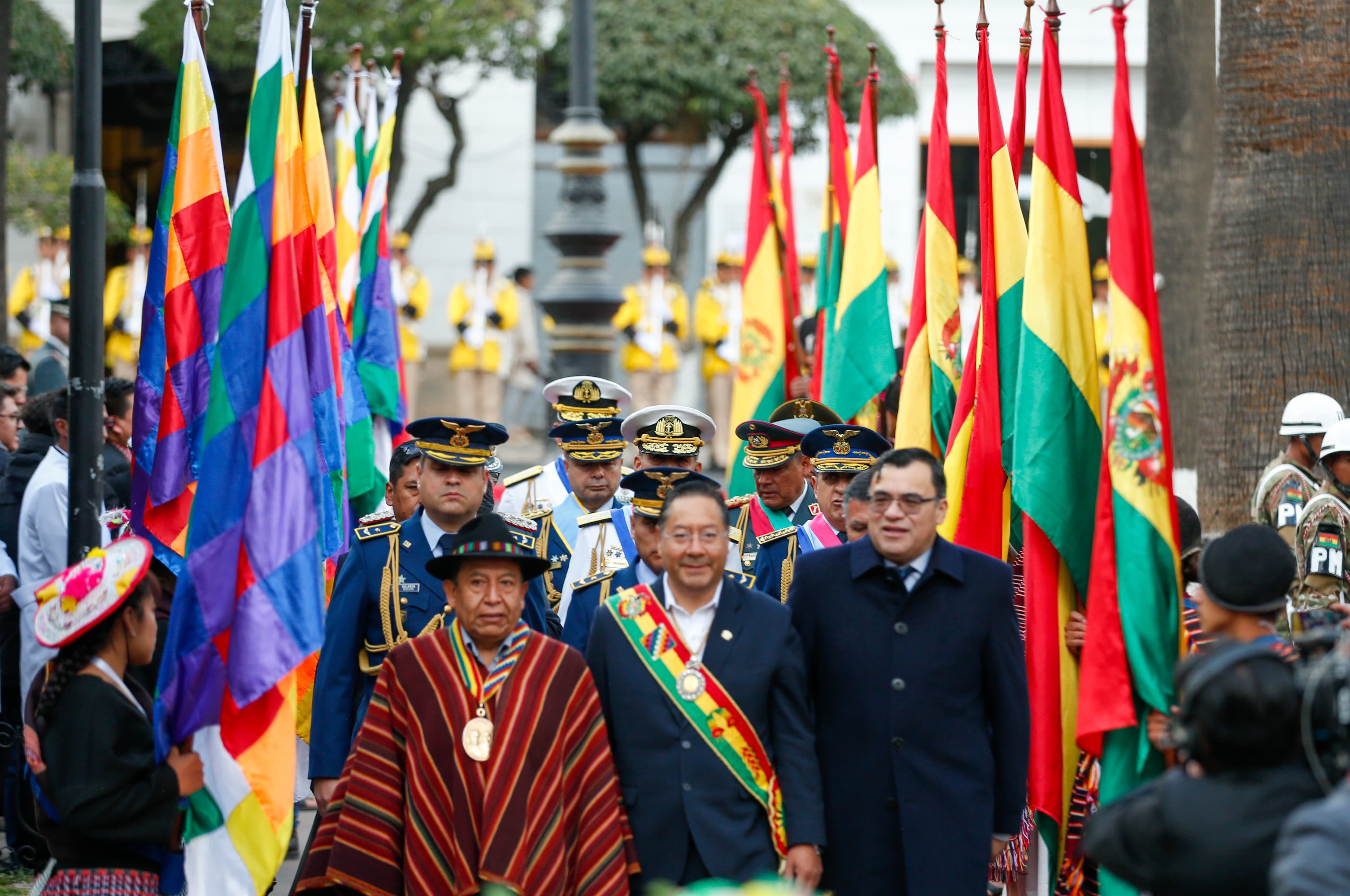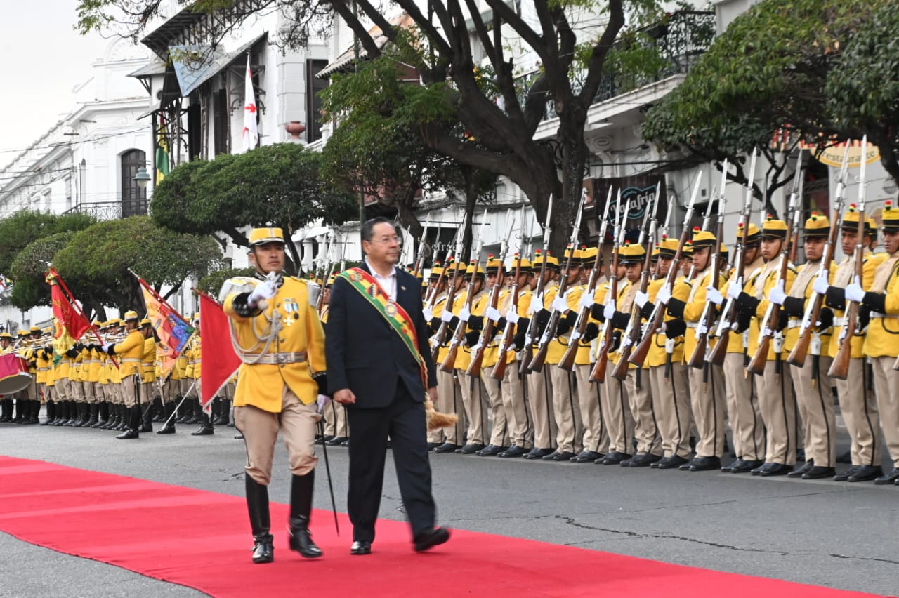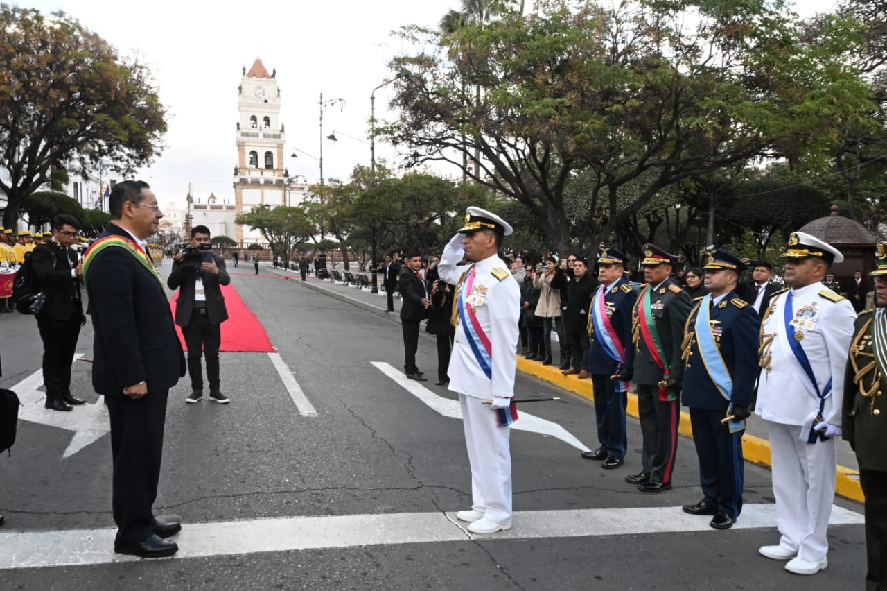 El presidente del Estado, Luis Arce, participa en Sucre de los actos de ofrenda ancestral, floral e iza de banderas en homenaje al 199 aniversario de BoliviaUsuario ABIGalería Fotográfica 07 Agosto 2024 Visto: 2684ShareTwittearshare with Whatsappshare with TelegramFuente Comunicación Presidencial AnteriorSiguiente