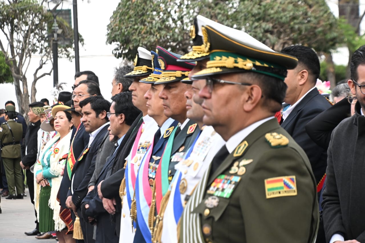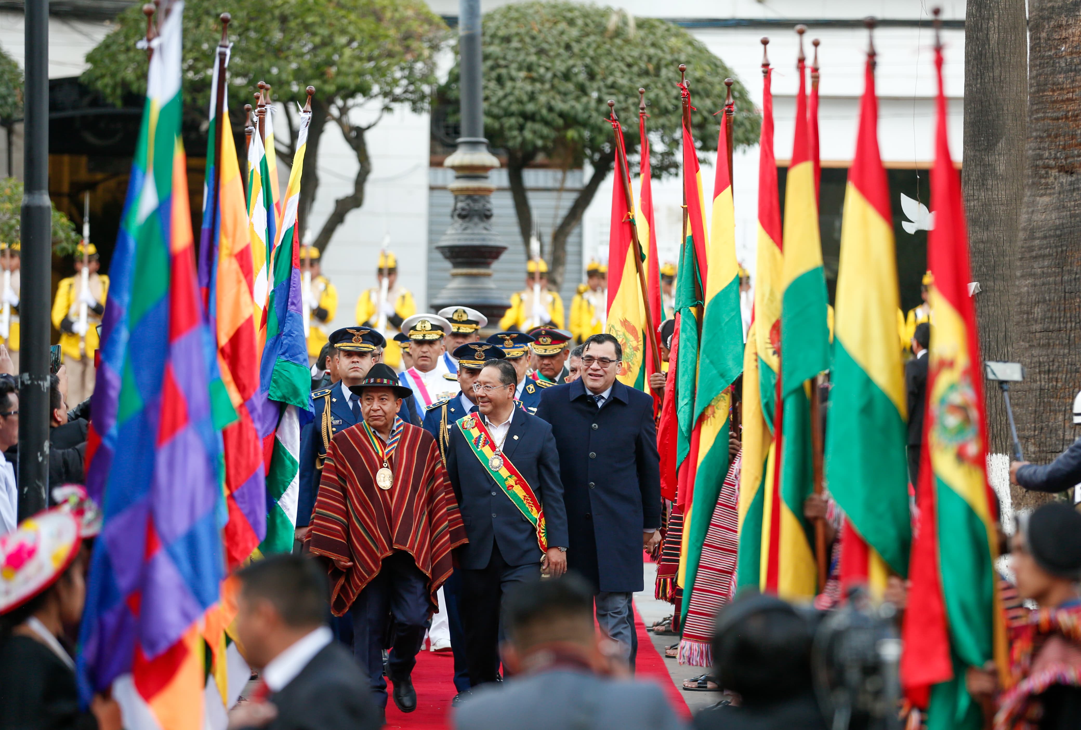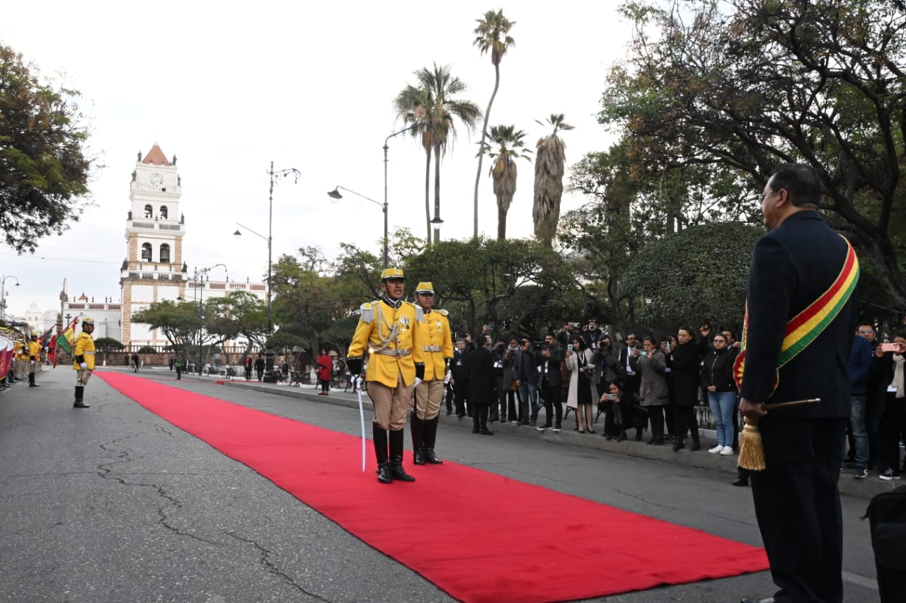 El presidente del Estado, Luis Arce, participa en Sucre de los actos de ofrenda ancestral, floral e iza de banderas en homenaje al 199 aniversario de BoliviaUsuario ABIGalería Fotográfica 07 Agosto 2024 Visto: 2684ShareTwittearshare with Whatsappshare with TelegramFuente Comunicación Presidencial AnteriorSiguiente