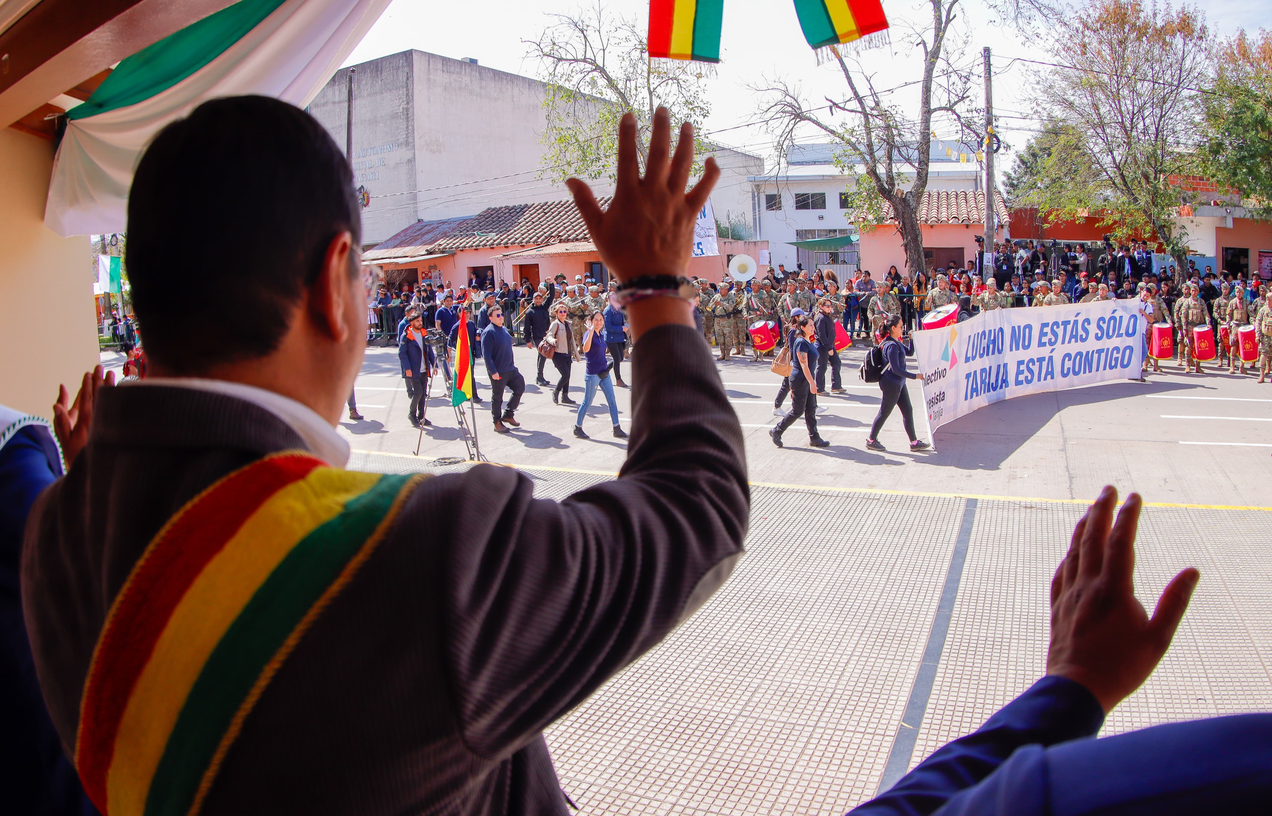 El presidente del Estado, Luis Arce Catacora, participa en el Desfile Cívico Militar en homenaje al 148 aniversario de la provincia Gran ChacoUsuario ABIGalería Fotográfica 12 Agosto 2024 Visto: 2616ShareTwittearshare with Whatsappshare with Telegram Fuente Comunicación Presidencial AnteriorSiguiente