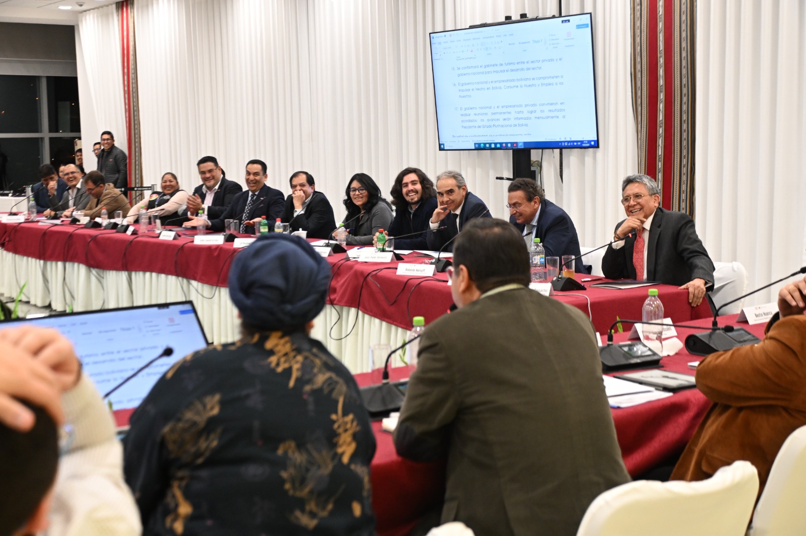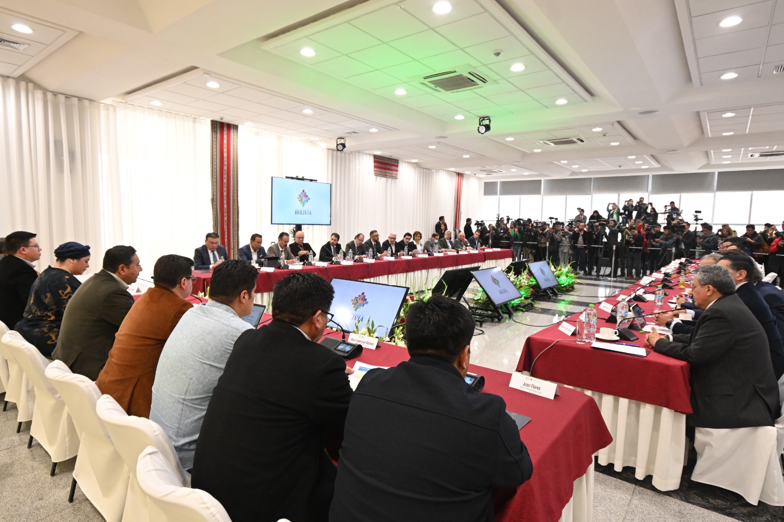 El presidente del Estado, Luis Arce Catacora y empresarios privados brindan conferencia de prensa tras concluir el Diálogo Nacional por la Economía y la ProducciónUsuario ABIGalería Fotográfica 19 Agosto 2024 Visto: 3541ShareTwittearshare with Whatsappshare with Telegram Fuente Comunicación Presidencial AnteriorSiguiente
