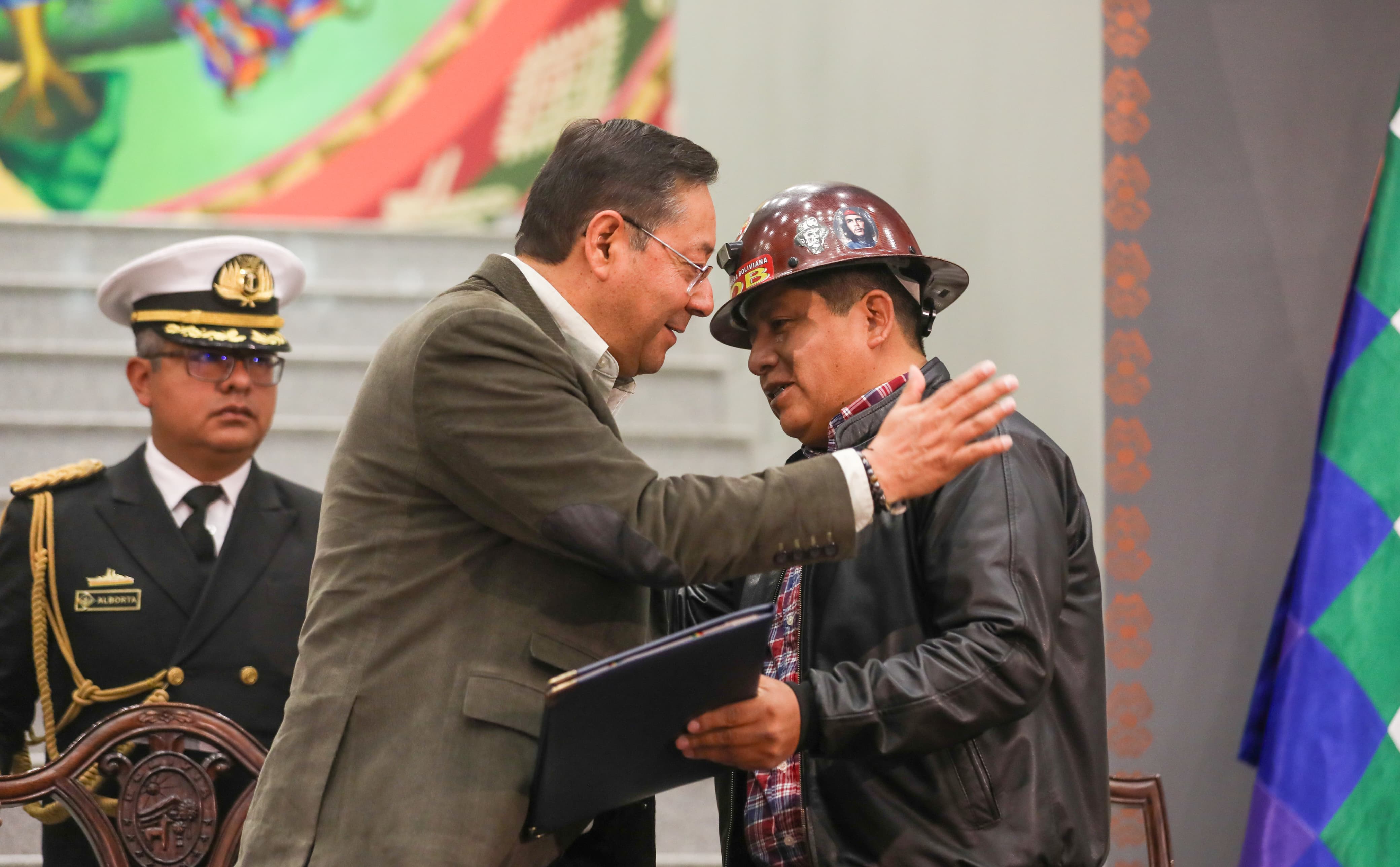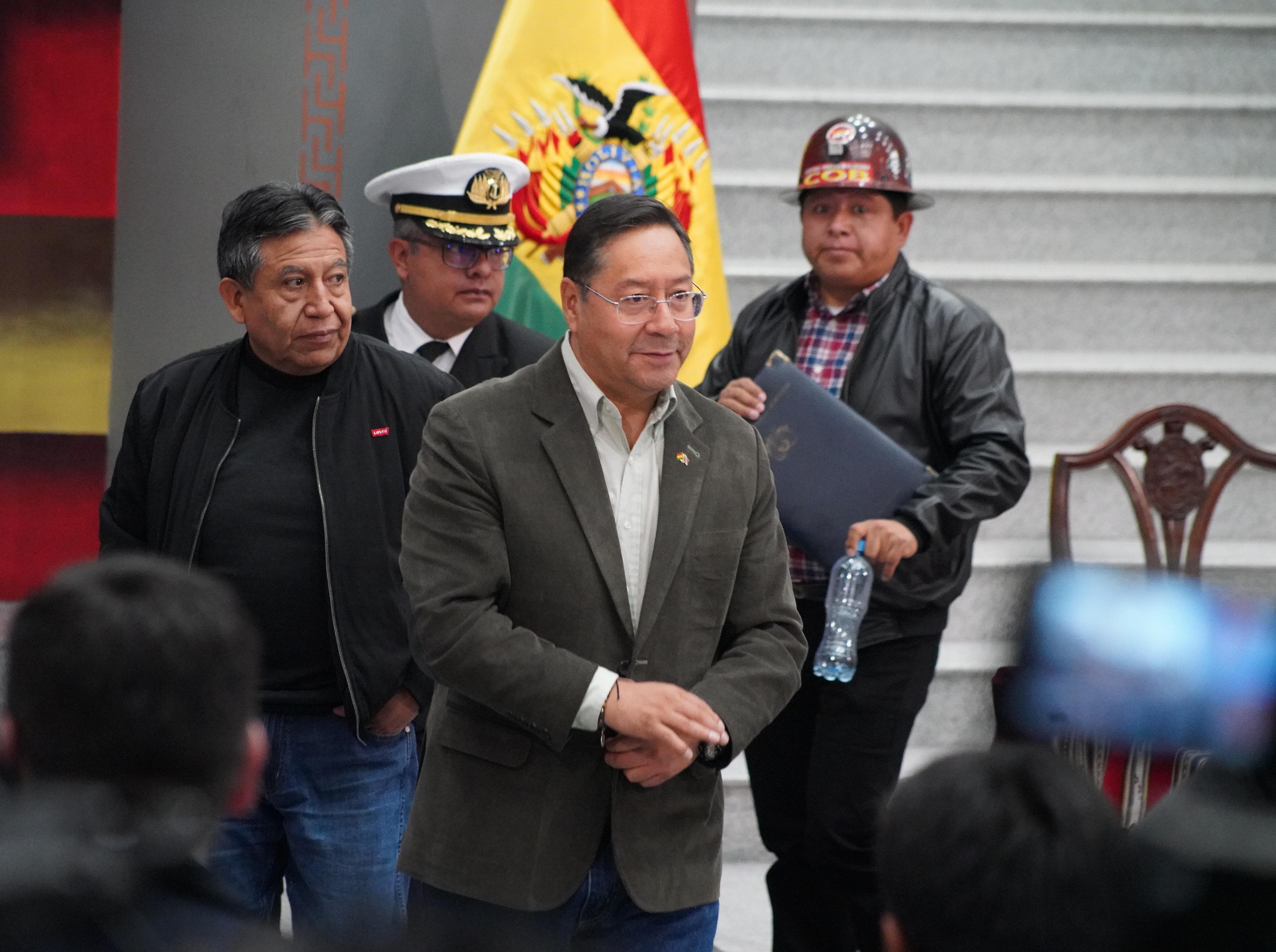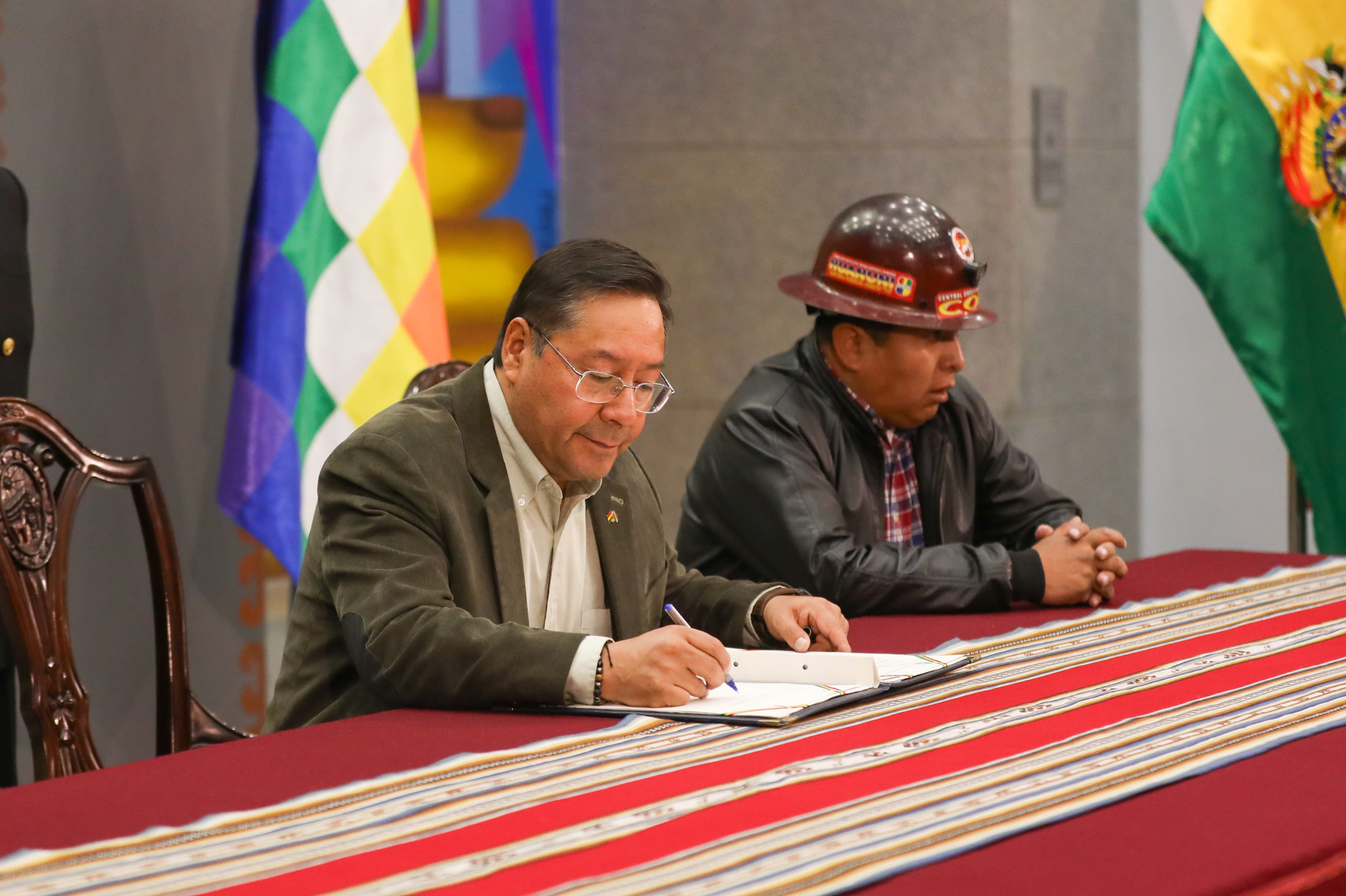 El presidente del Estado, Luis Arce Catacora, promulga la Ley de Modificación a los límites solidarios para la pensión solidaria de vejez del Sistema Integral de Pensiones, en Casa Grande del Pueblo