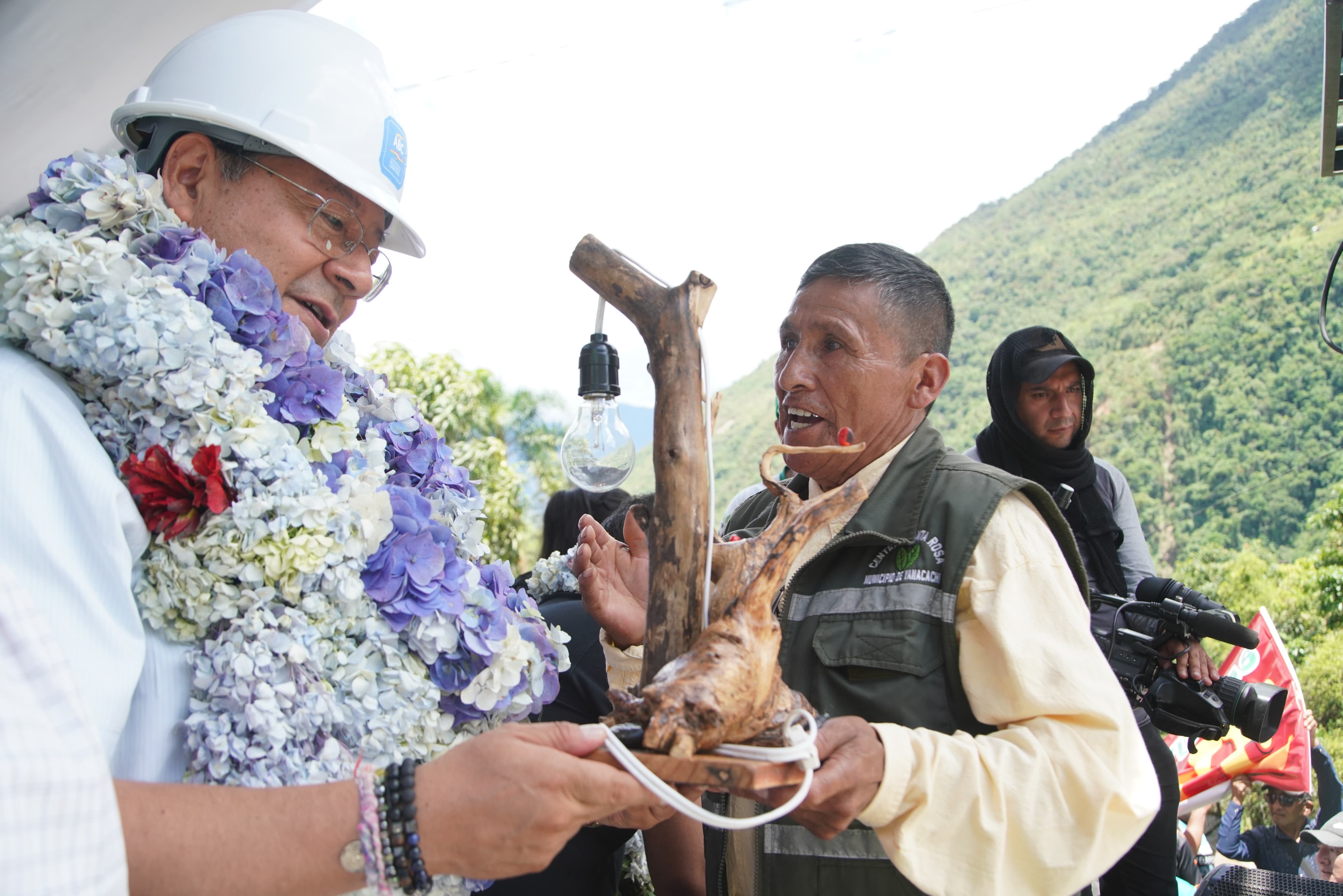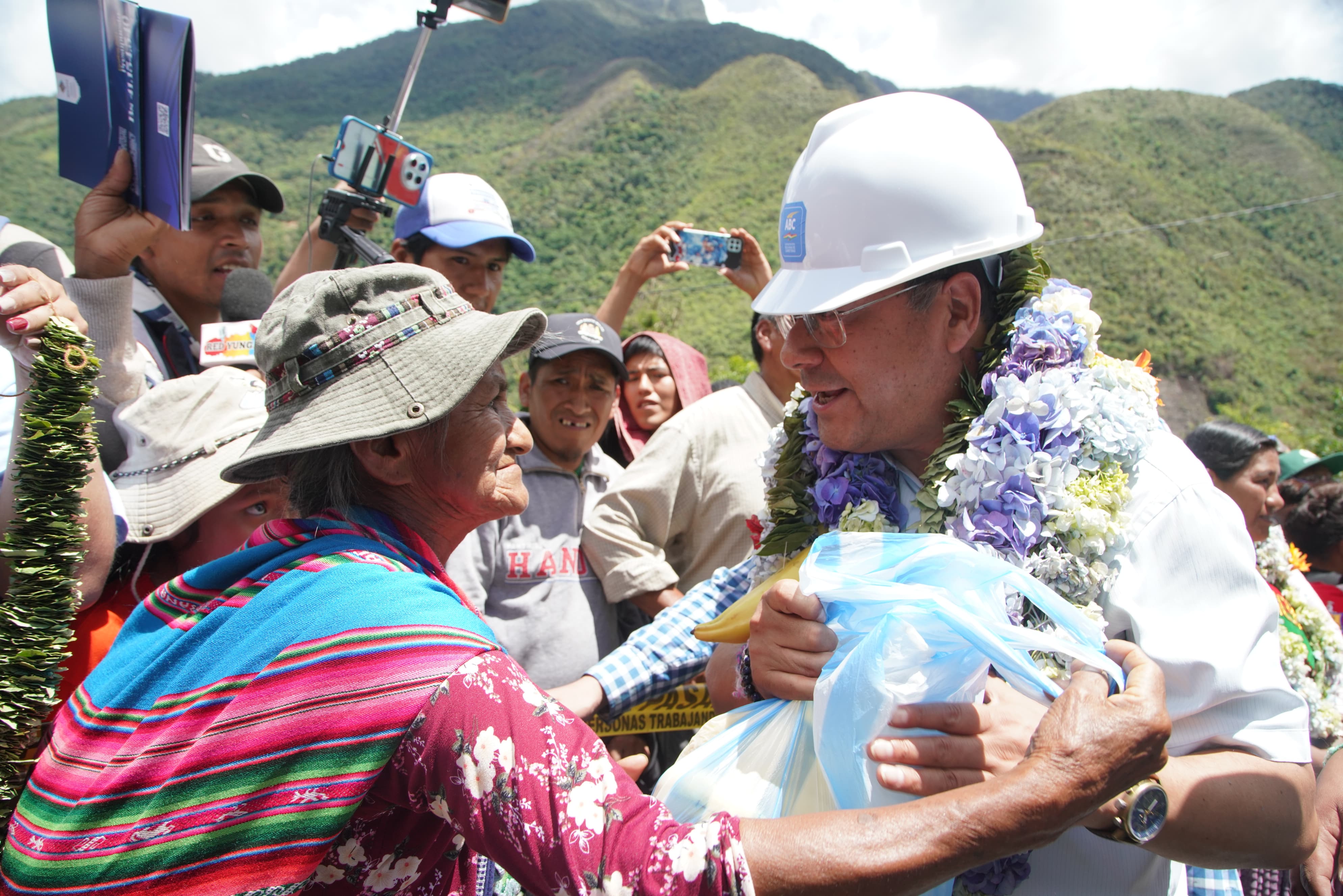 El presidente del Estado, Luis Arce Catacora, entrega proyecto de enlosetado, viviendas, electrificación rural en Arapata, e inicia obras de la carretera Unduavi - Chulumani