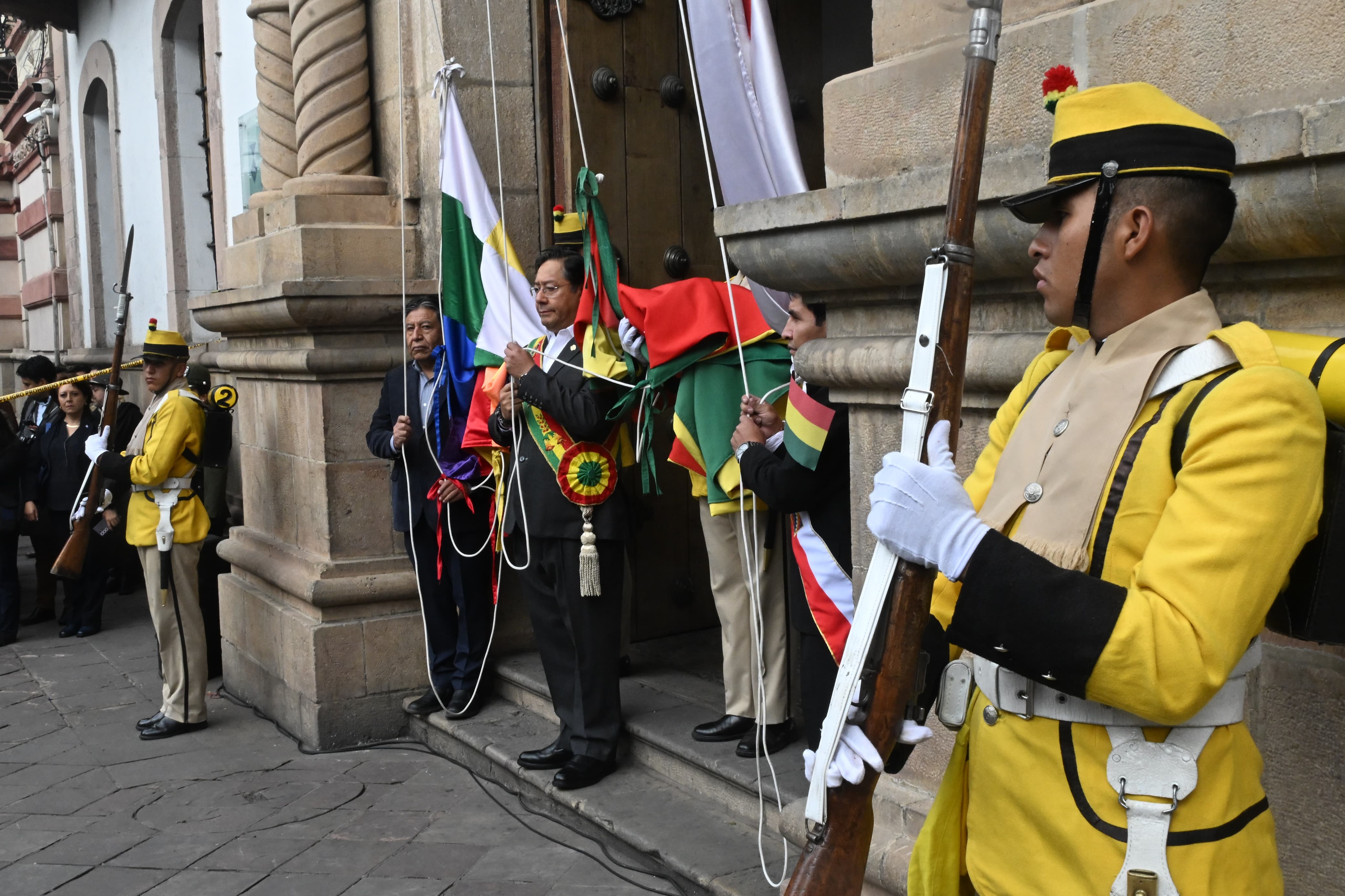 El presidente del Estado Plurinacional de Bolivia, Luis Arce Catacora, realiza la iza de banderas en la ceremonia de apertura del año del Bicentenario, en SucreUsuario ABIGalería Fotográfica 06 Enero 2025 Visto: 1102ShareTwittearshare with Whatsappshare with TelegramFuente: Comunicación Presidencial AnteriorSiguiente