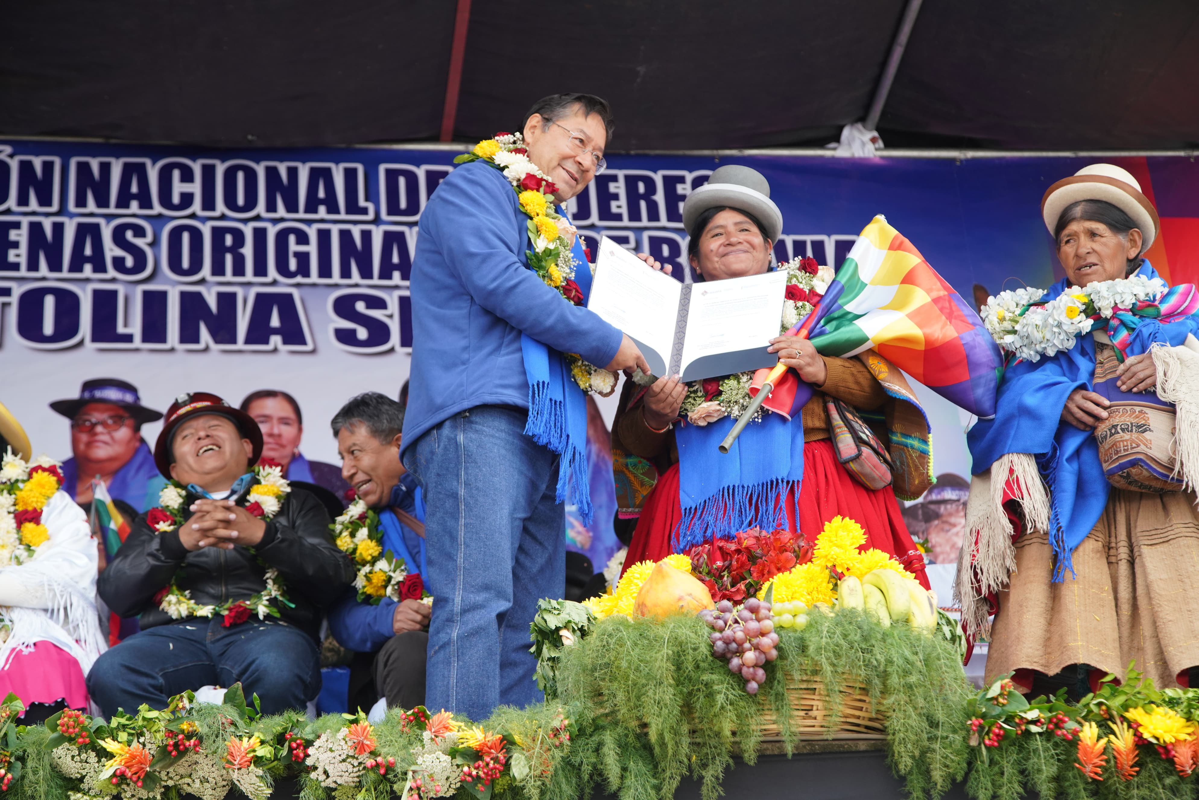 El presidente del Estado Plurinacional de Bolivia, Luis Arce Catacora, participa en el aniversario de la Confederación Nacional de Mujeres Campesinas Indígenas Originarias de Bolivia Bartolina Sisa