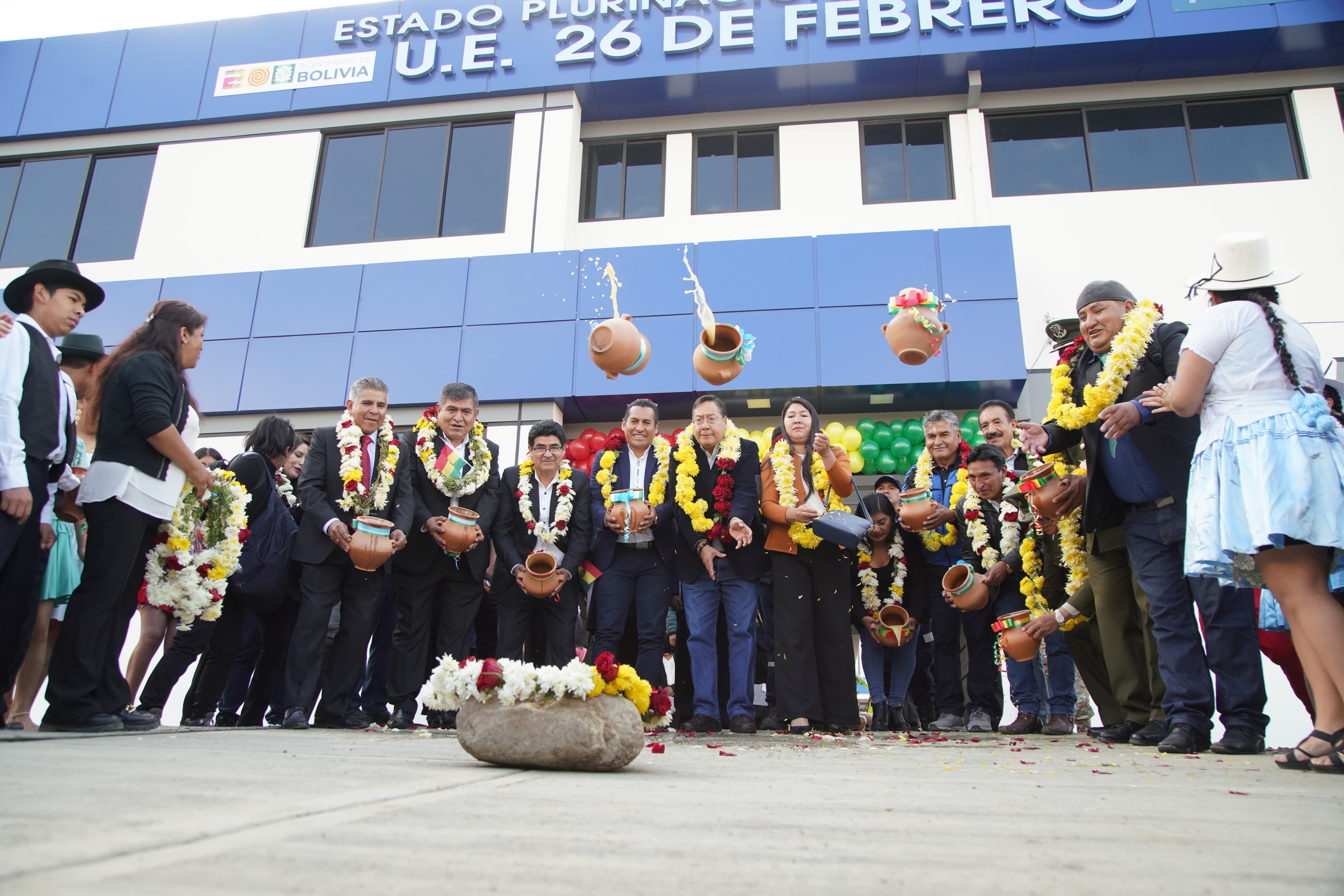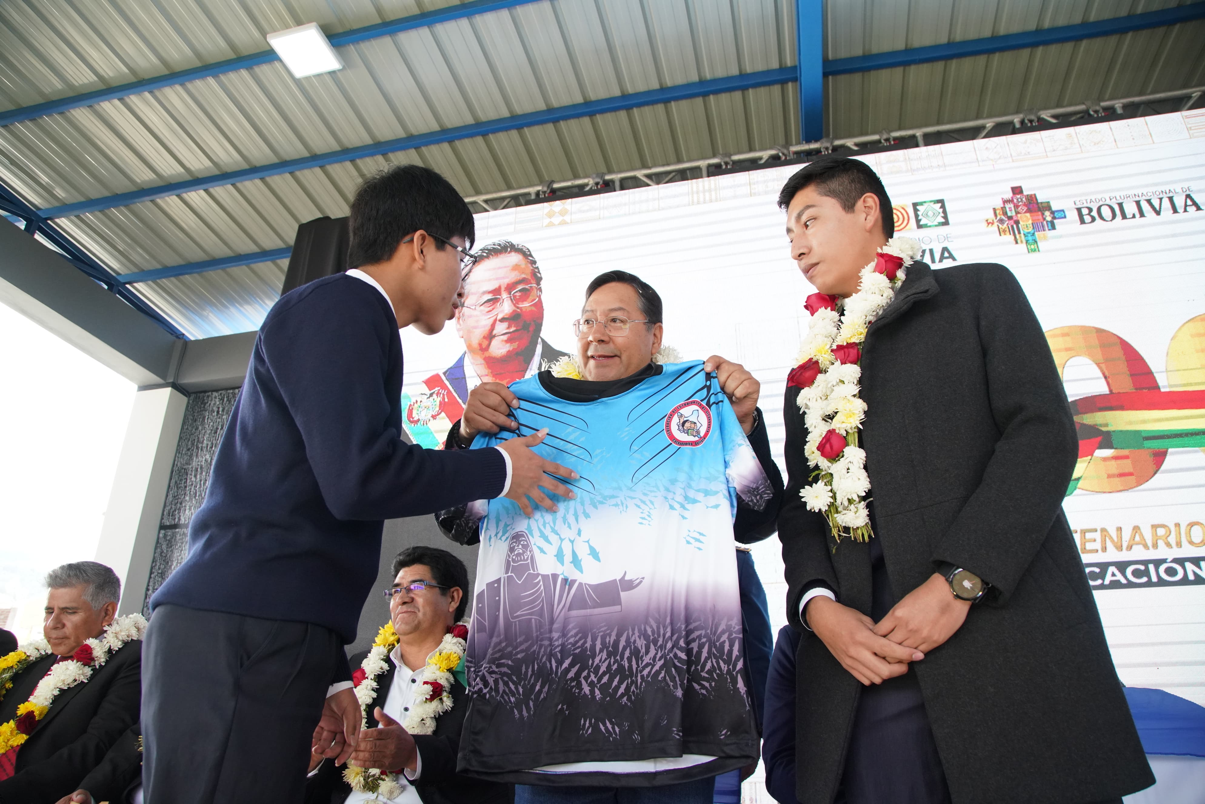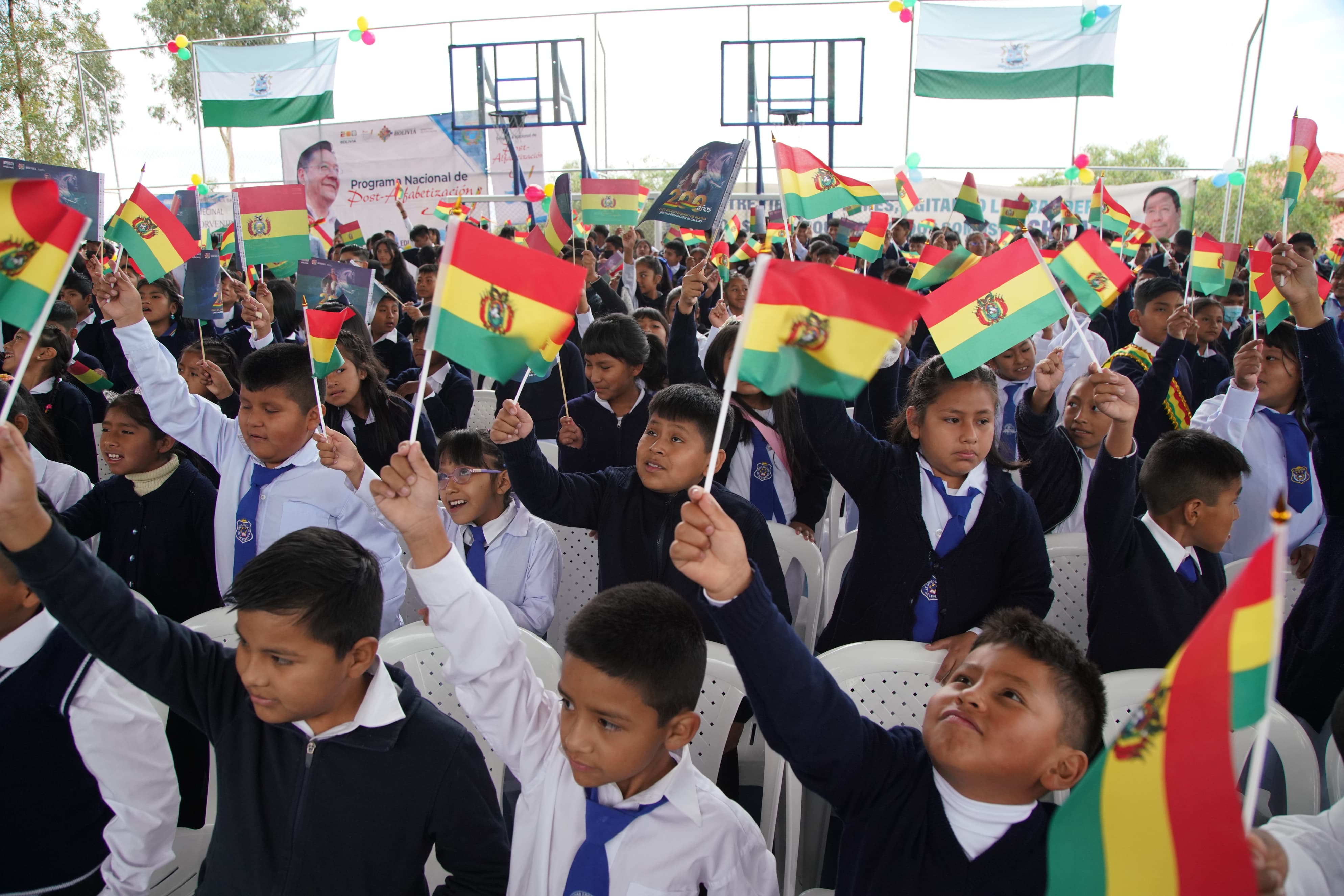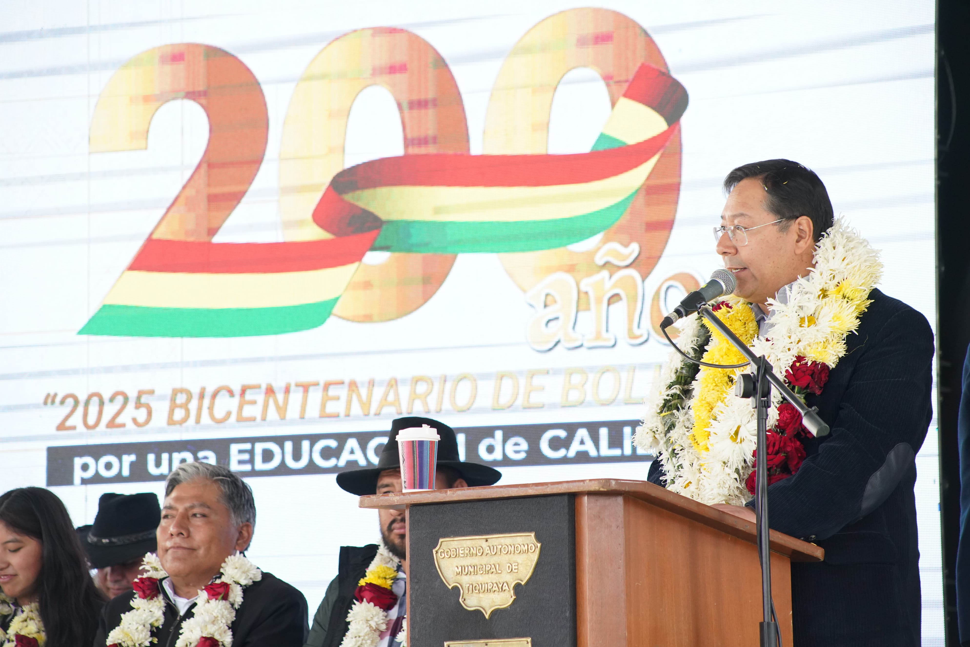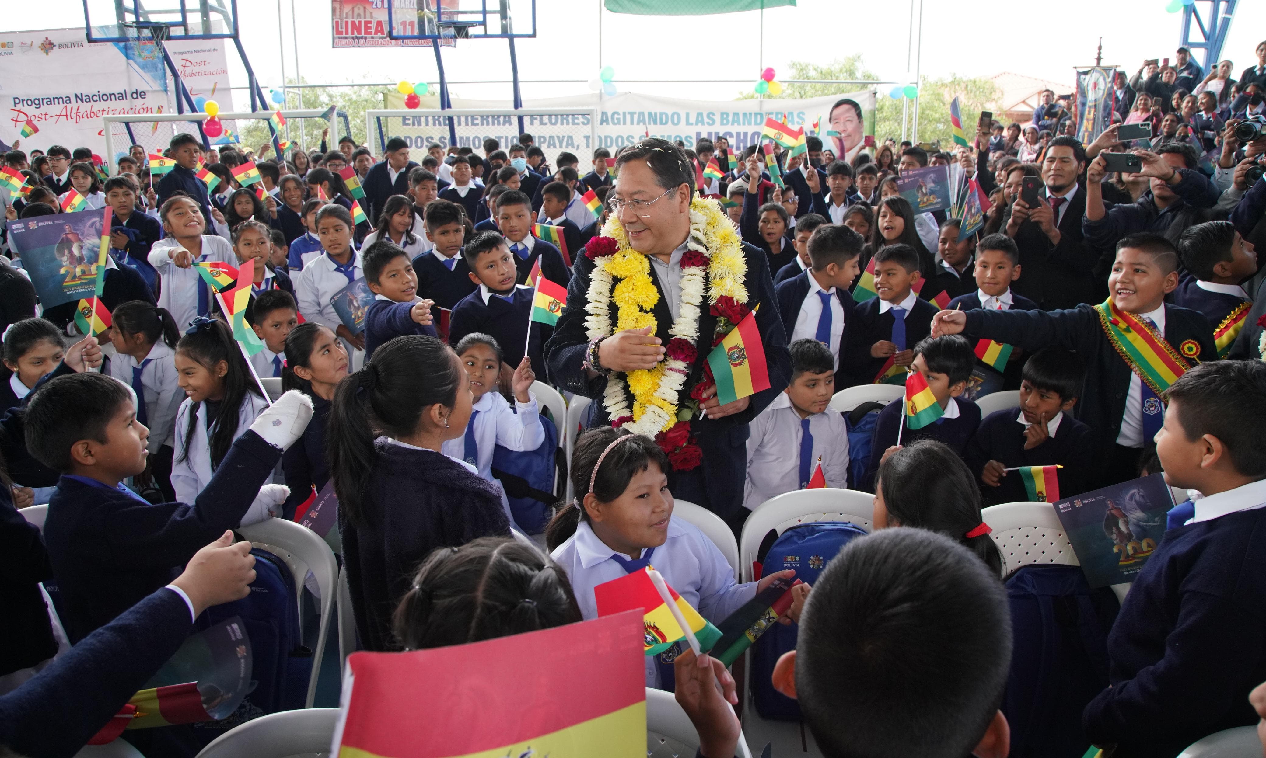 El Presidente del Estado Plurinacional de Bolivia, Luis Arce Catacora, inaugura el Calendario Escolar 2025 en Tiquipaya, Cochabamba, y entrega la Unidad Educativa 26 de Febrero