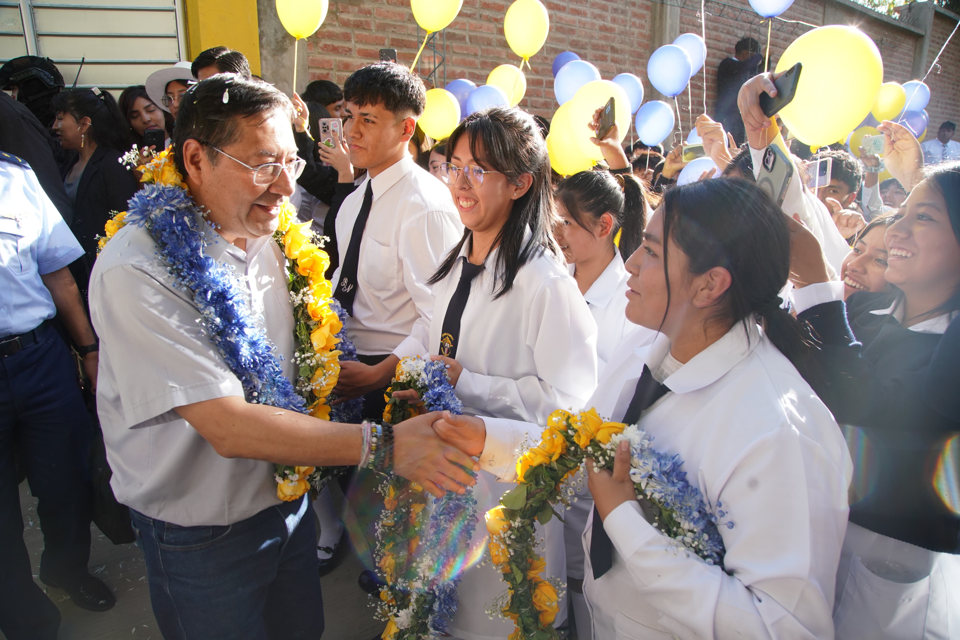El Presidente del Estado Plurinacional de Bolivia, Luis Arce Catacora, ch'alla y entrega la Unidad Educativa "Buenas Nuevas" en el municipio de CochabambaUsuario ABIGalería Fotográfica 03 Febrero 2025 Visto: 627ShareTwittearshare with Whatsappshare with TelegramFuente Comunicación Presidencial AnteriorSiguiente