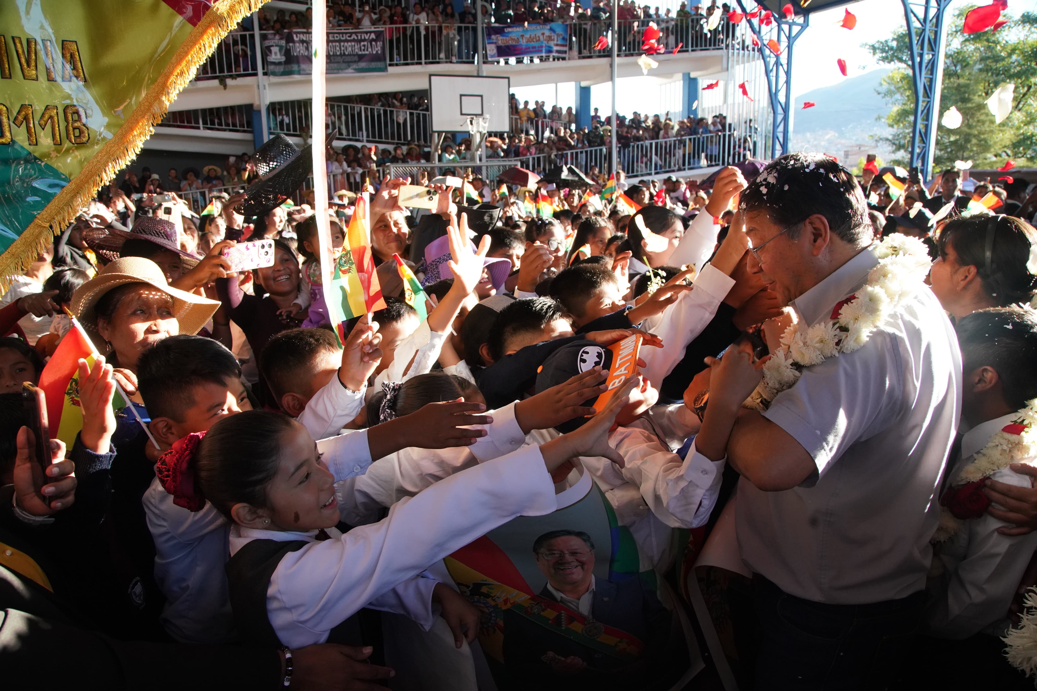 El Presidente del Estado Plurinacional de Bolivia, Luis Arce Catacora, ch'alla y entrega la Unidad Educativa "Teresa Hinojoza Caprirolo" en el municipio de CochabambaUsuario ABIGalería Fotográfica 03 Febrero 2025 Visto: 474ShareTwittearshare with Whatsappshare with TelegramFuente Comunicación Presidencial AnteriorSiguiente