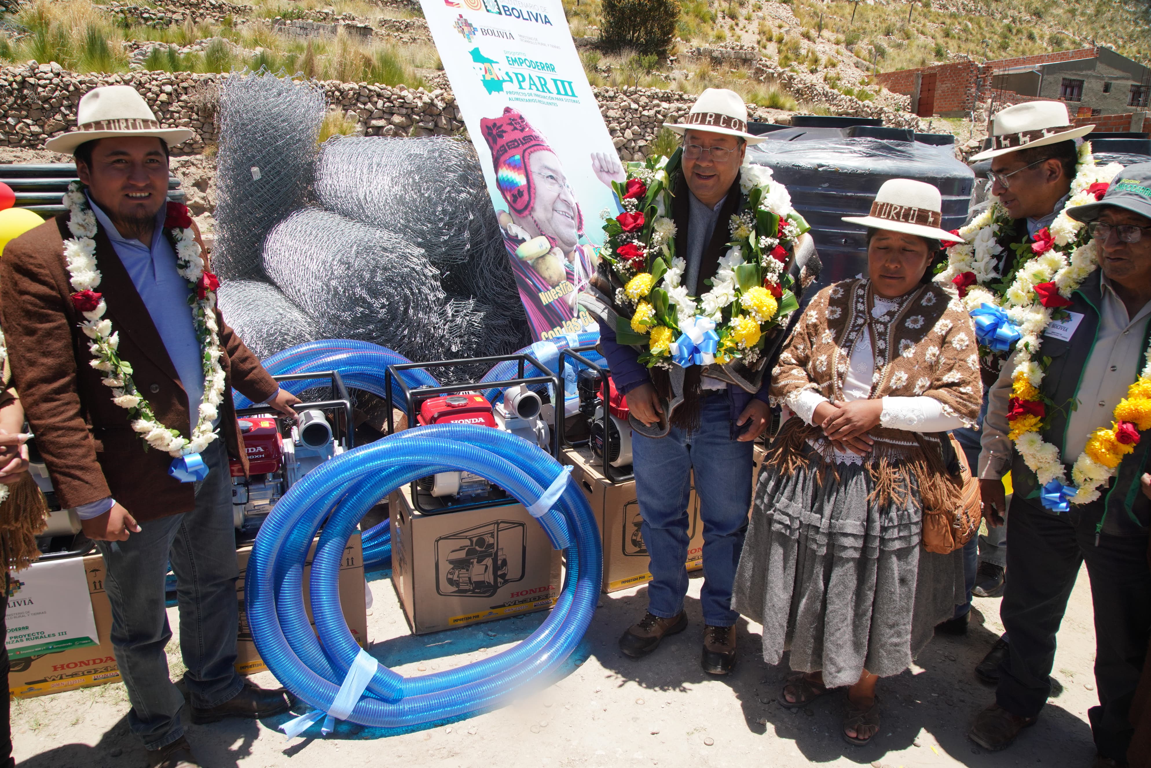 El Presidente del Estado Plurinacional de Bolivia, Luis Arce Catacora, entrega materiales e insumos del Proyecto de Alianzas Rurales (PAR III) en Turco, OruroUsuario ABIGalería Fotográfica 04 Febrero 2025 Visto: 464ShareTwittearshare with Whatsappshare with TelegramFuente Comunicación Presidencial AnteriorSiguiente