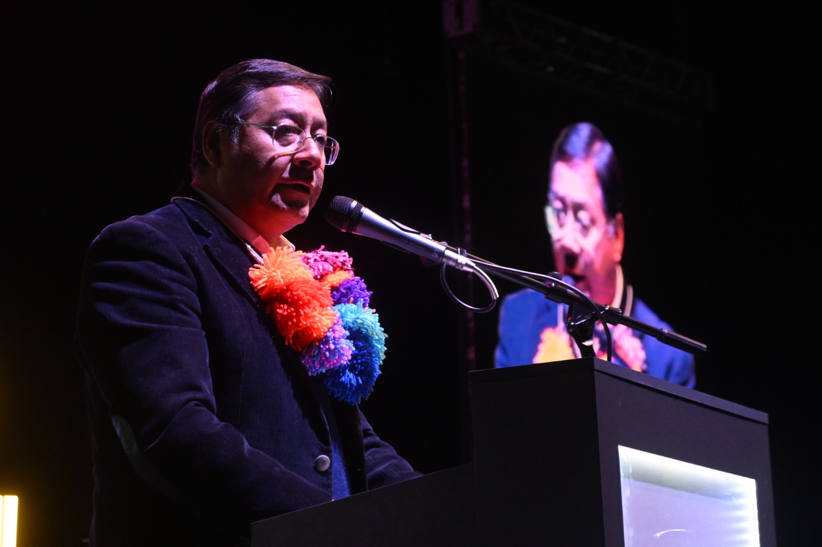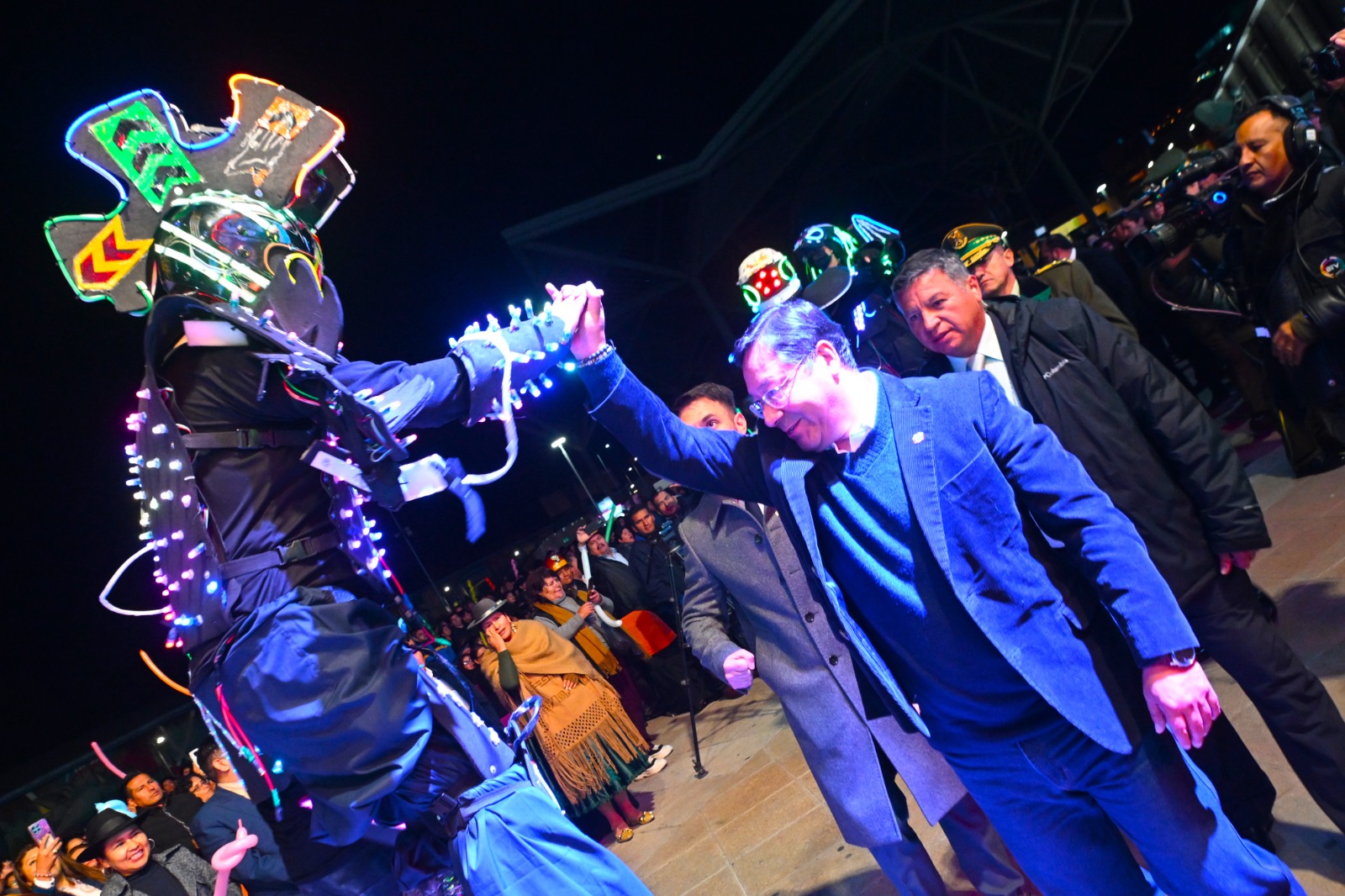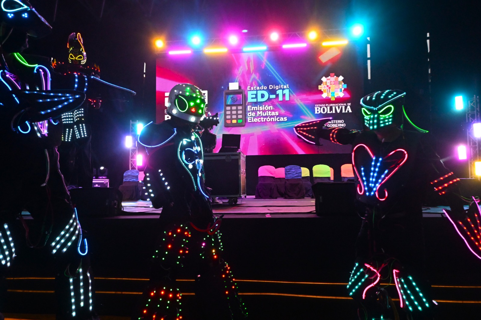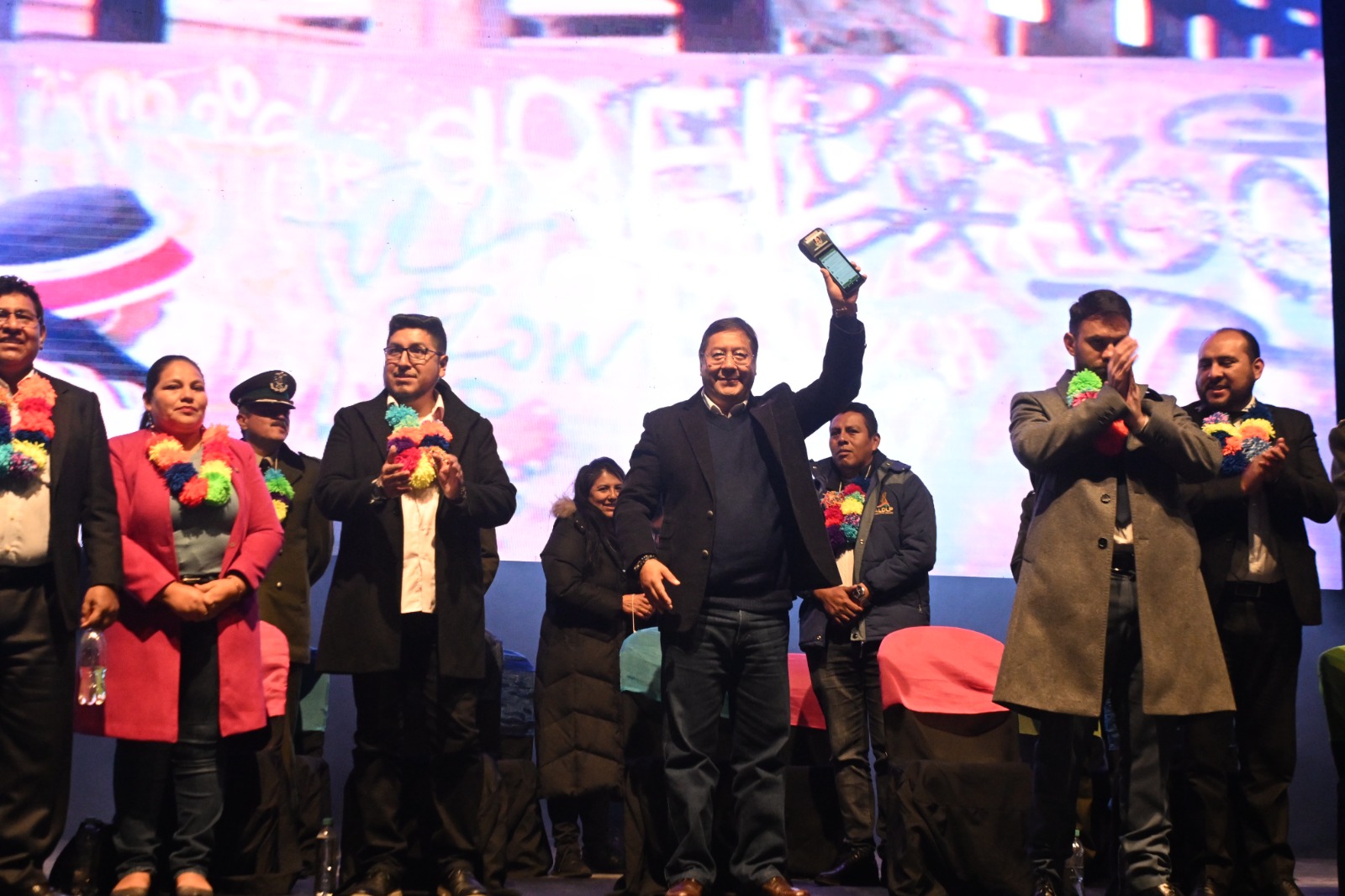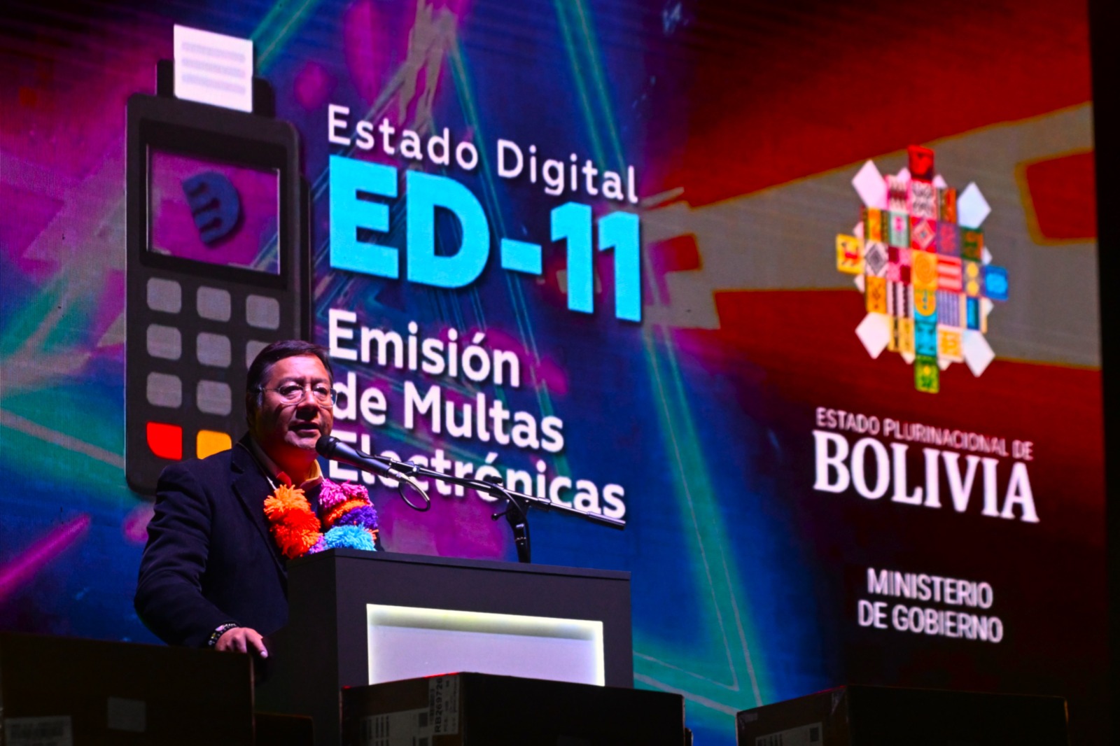 El Presidente del Estado Plurinacional de Bolivia, Luis Arce Catacora, lanza los Dispositivos para Emisión de Multas Electrónicas ED-11 en el Parque de las Culturas de La Paz