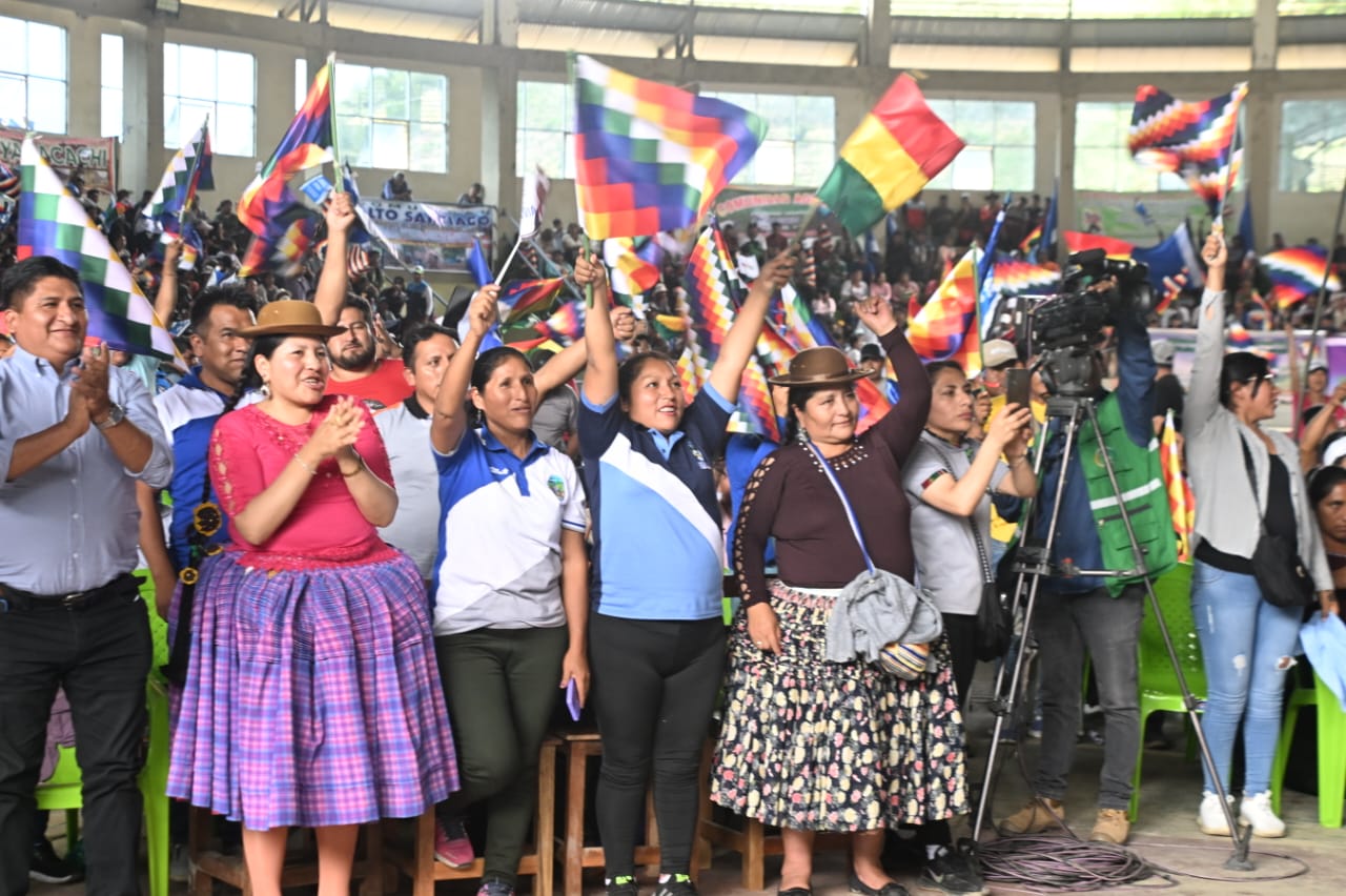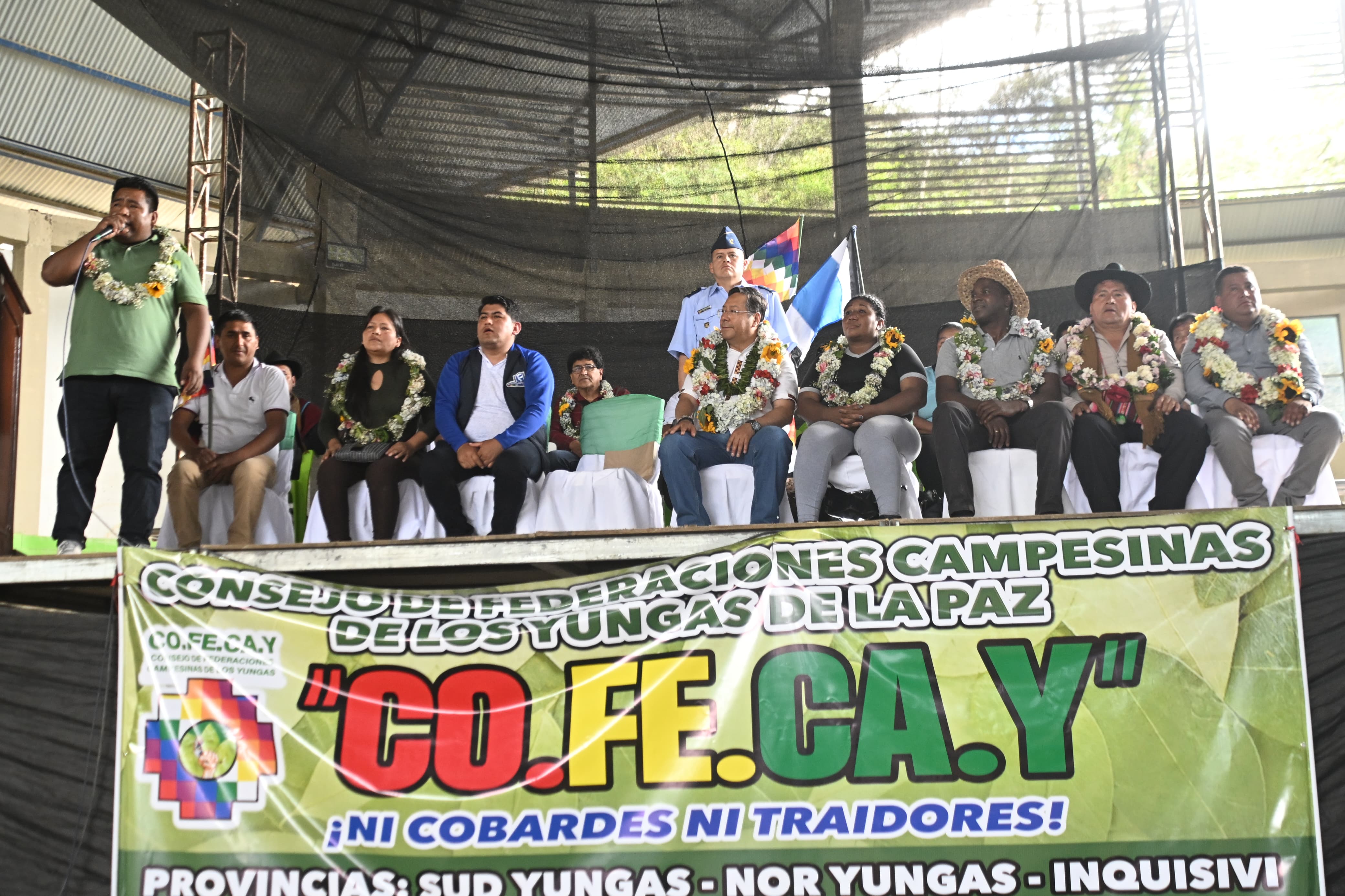 El Presidente del Estado Plurinacional de Bolivia, Luis Arce Catacora, participa en concentración convocada por el Consejo de Federaciones Campesinas de los Yungas - Cofecay, en el municipio de Coripata