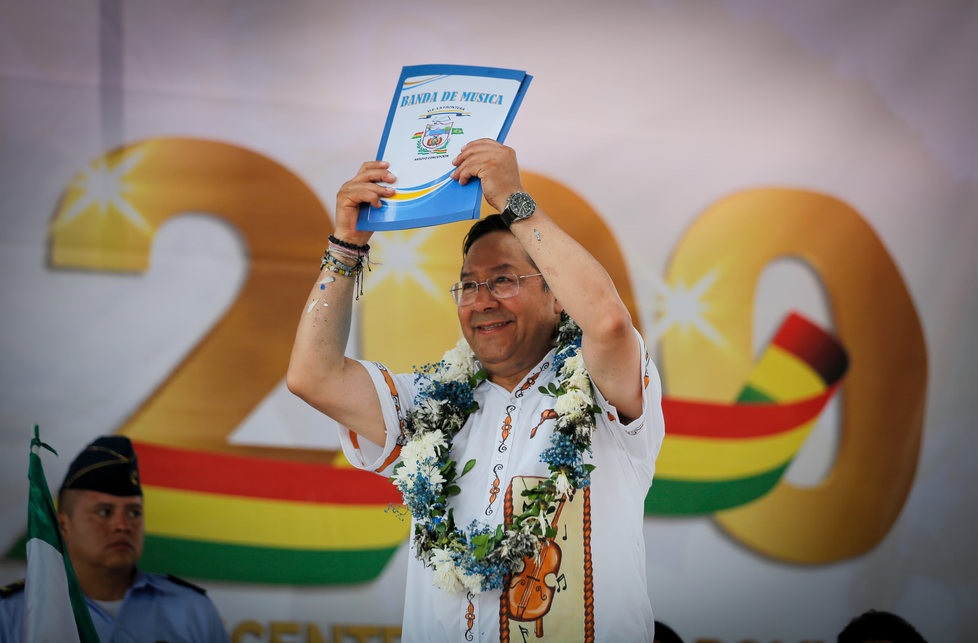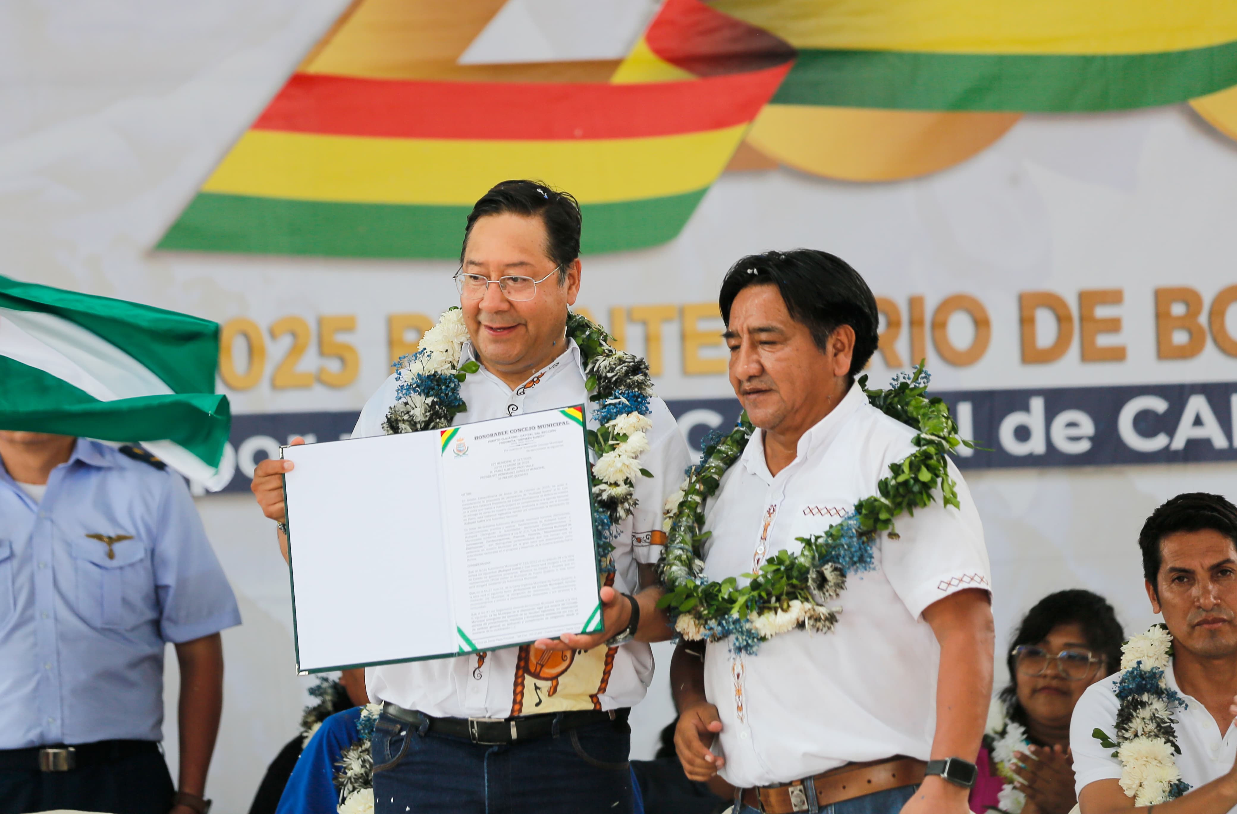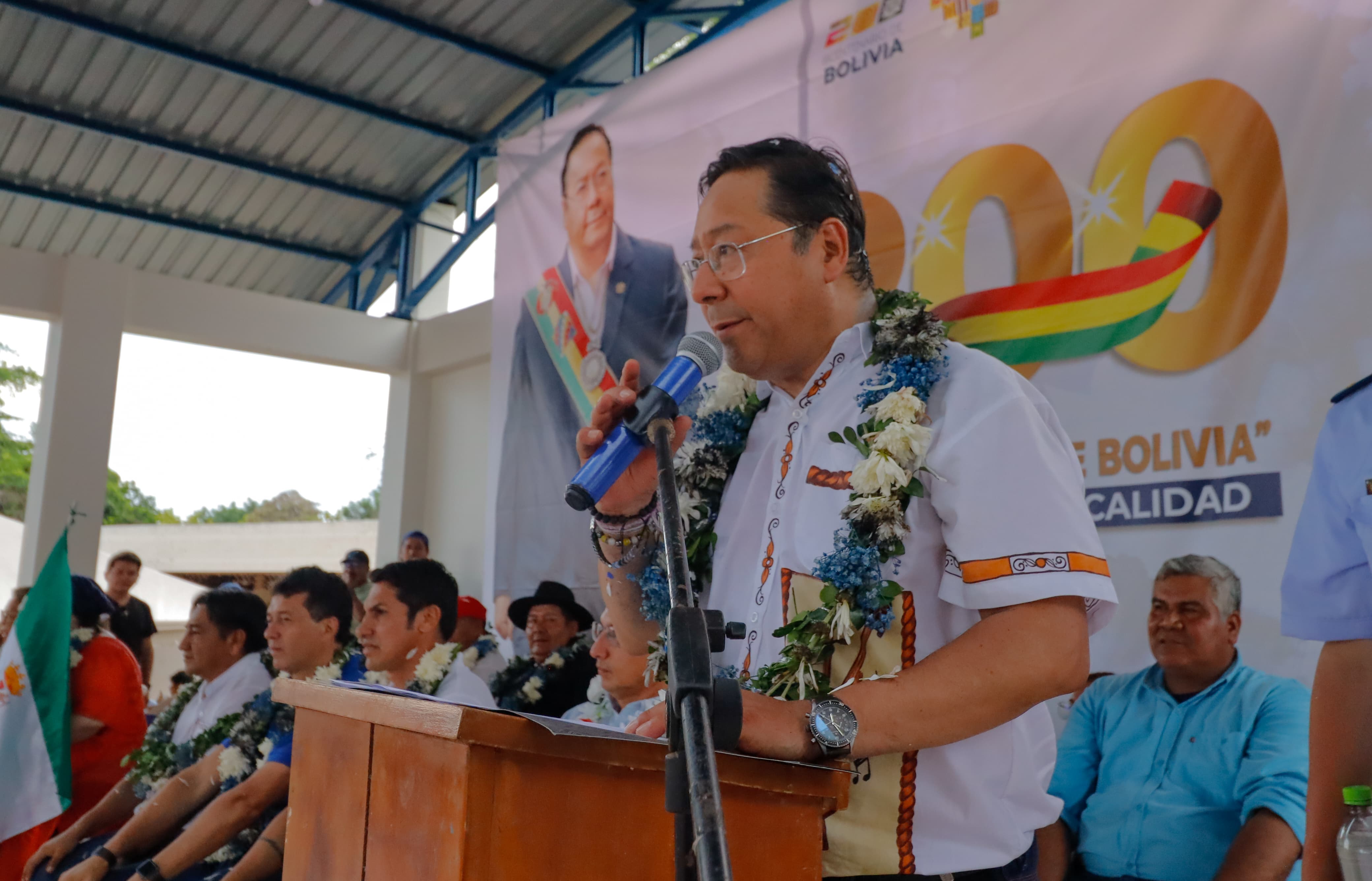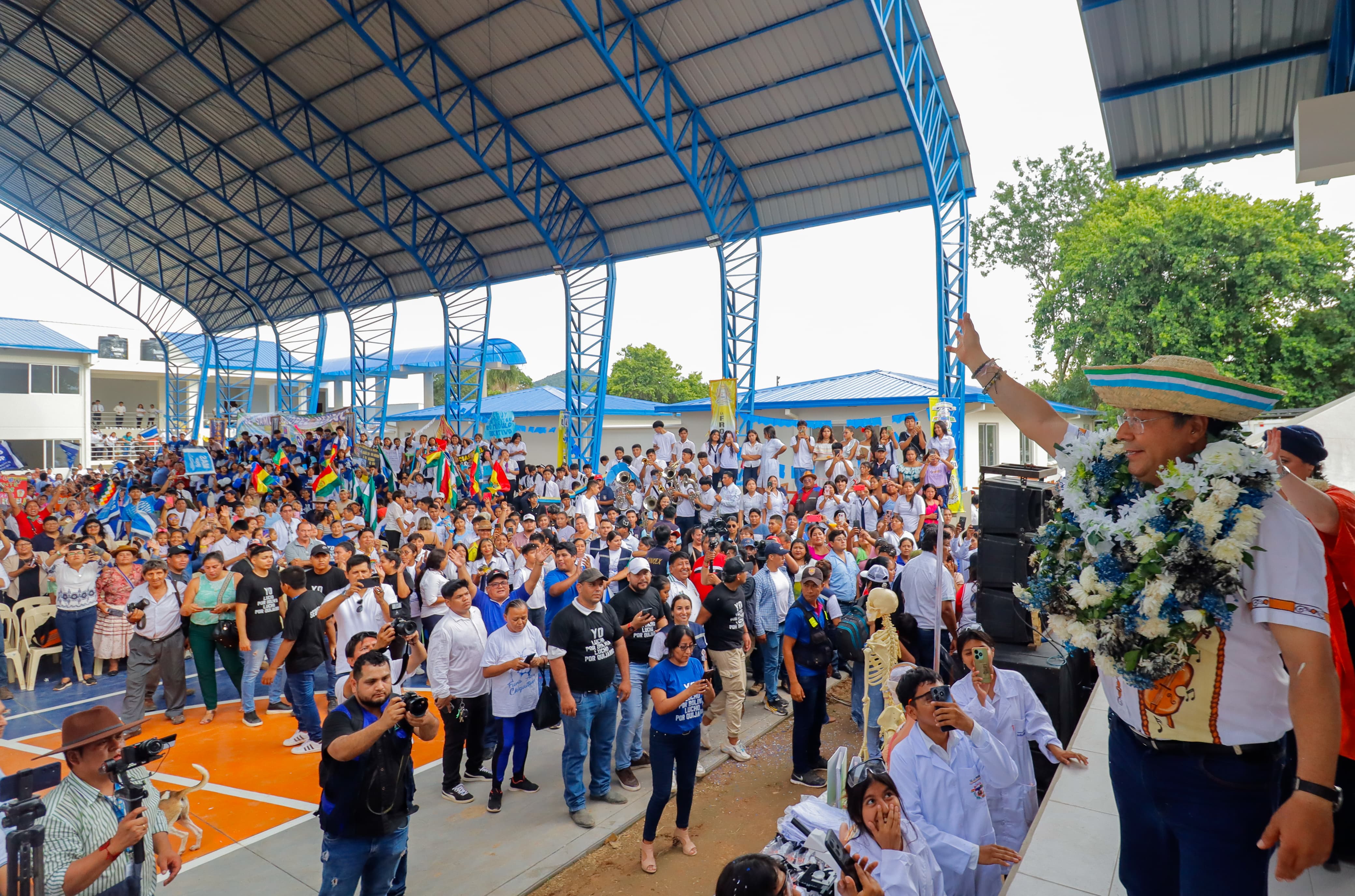 El Presidente del Estado Plurinacional de Bolivia, Luis Arce Catacora, entrega las unidades educativas La Frontera y Santa Cruz, además de viviendas y maquinaria pesada en Puerto Quijarro, Santa Cruz