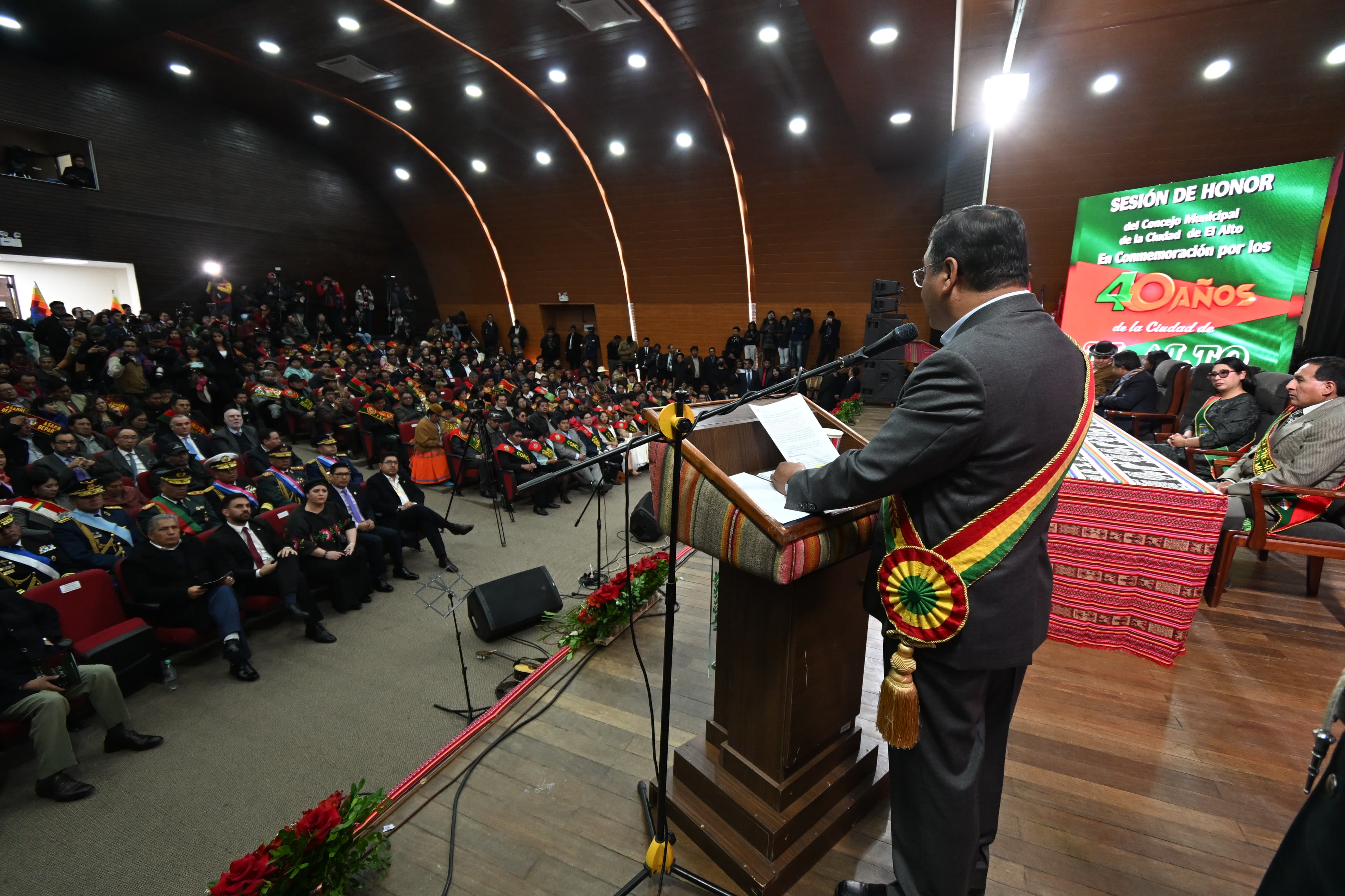 El Presidente del Estado Plurinacional de Bolivia, Luis Arce Catacora, participa en la Sesión de Honor por el 40 aniversario de la ciudad de El AltoUsuario ABIGalería Fotográfica 06 Marzo 2025 Visto: 445ShareTwittearshare with Whatsappshare with TelegramFuente Comunicación Presidencial AnteriorSiguiente