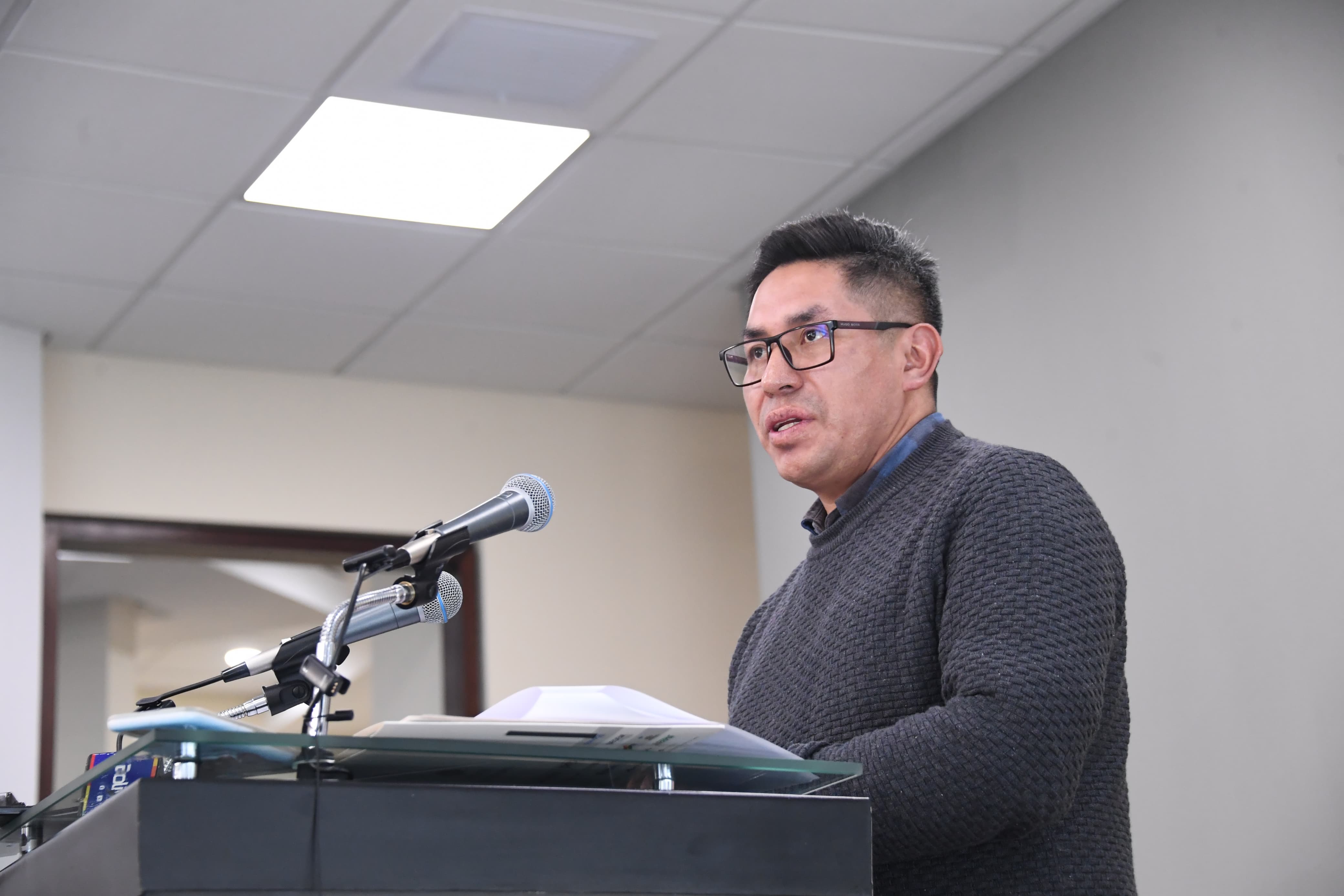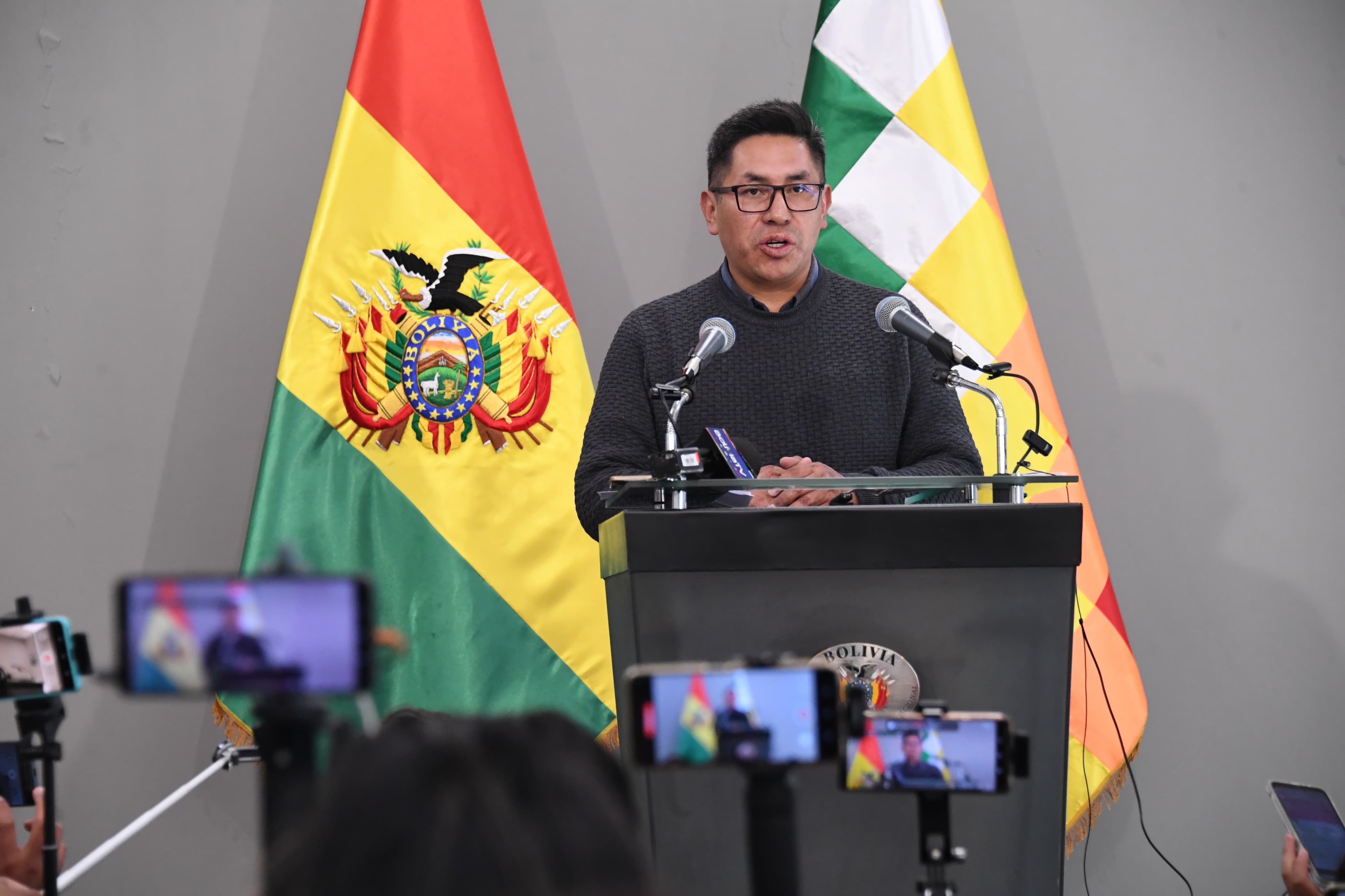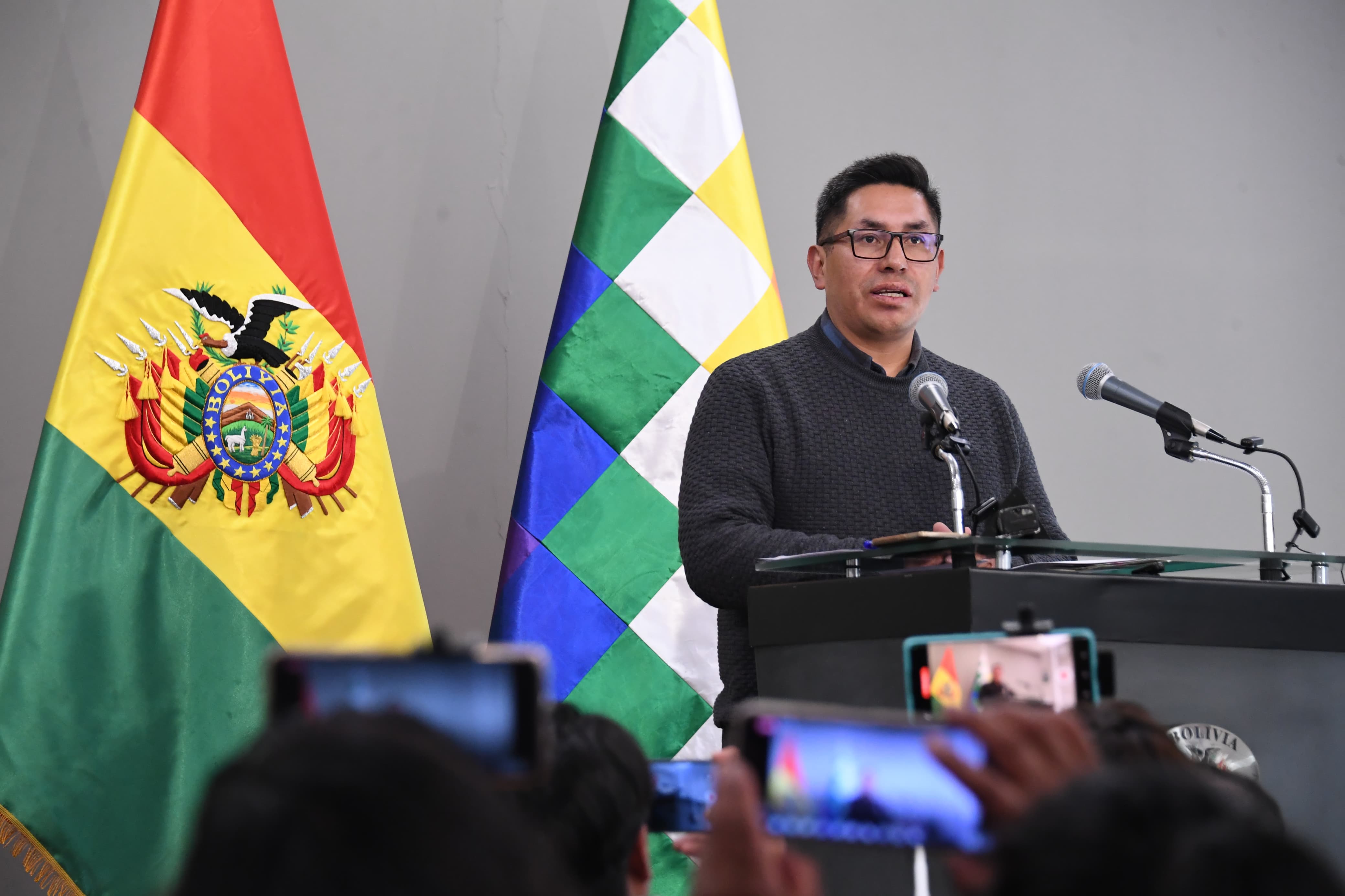 El ministro de Desarrollo Productivo, Zenón Mamani, en conferencia de prensa, en Casa Grande del PuebloUsuario ABIGalería Fotográfica 14 Mayo 2025 Visto: 467ShareTwittearshare with Whatsappshare with TelegramFotos: ABI / Josué Cortéz AnteriorSiguiente