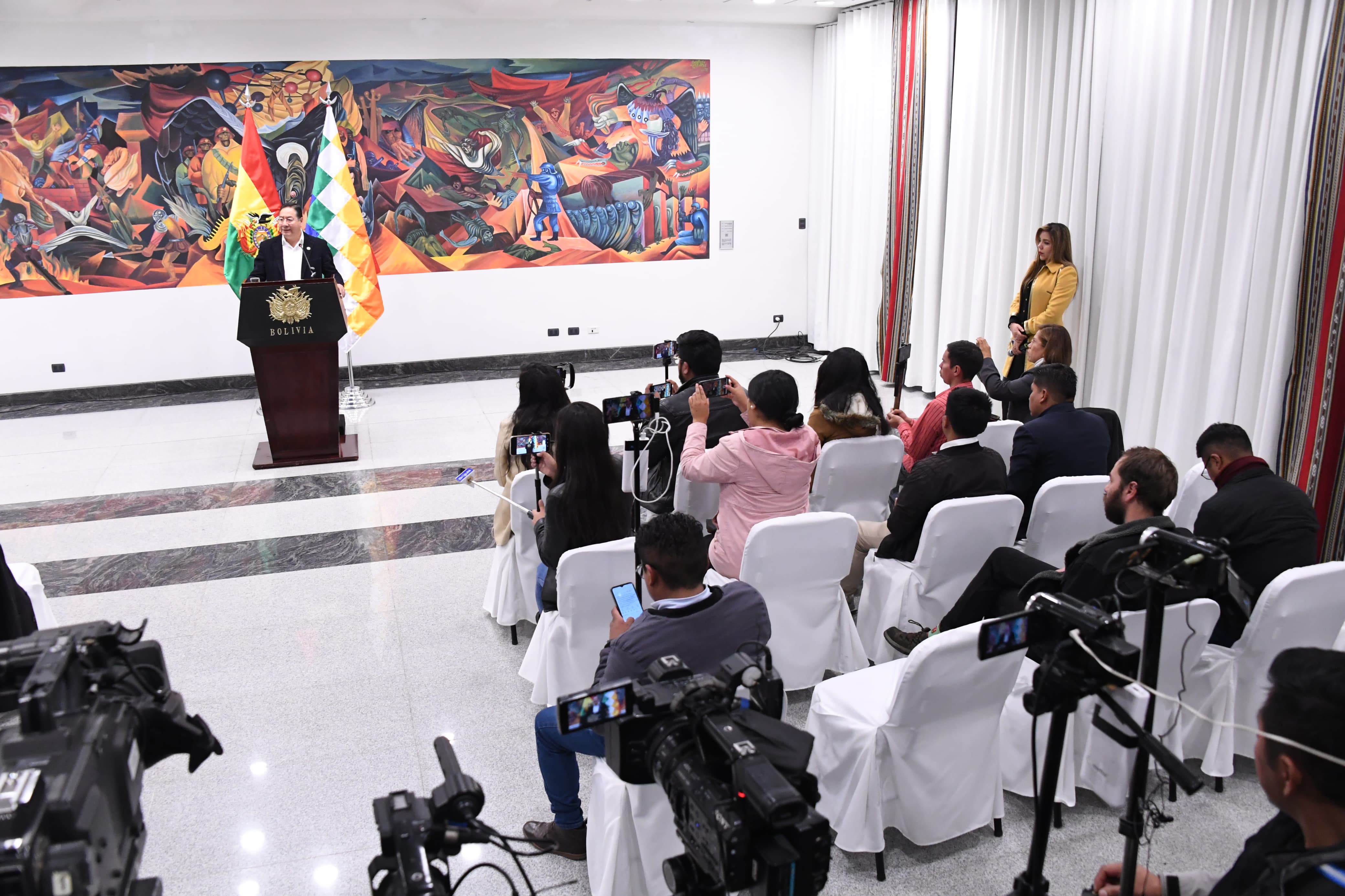 El presidente del Estado Plurinacional de Bolivia, Luis Arce Catacora, en diálogo con los periodistas, Casa Grande del PuebloUsuario ABIGalería Fotográfica 10 Julio 2025 Visto: 840ShareTwittearshare with Whatsappshare with TelegramFotos: ABI/ Josué Cortéz & Presidencia AnteriorSiguiente