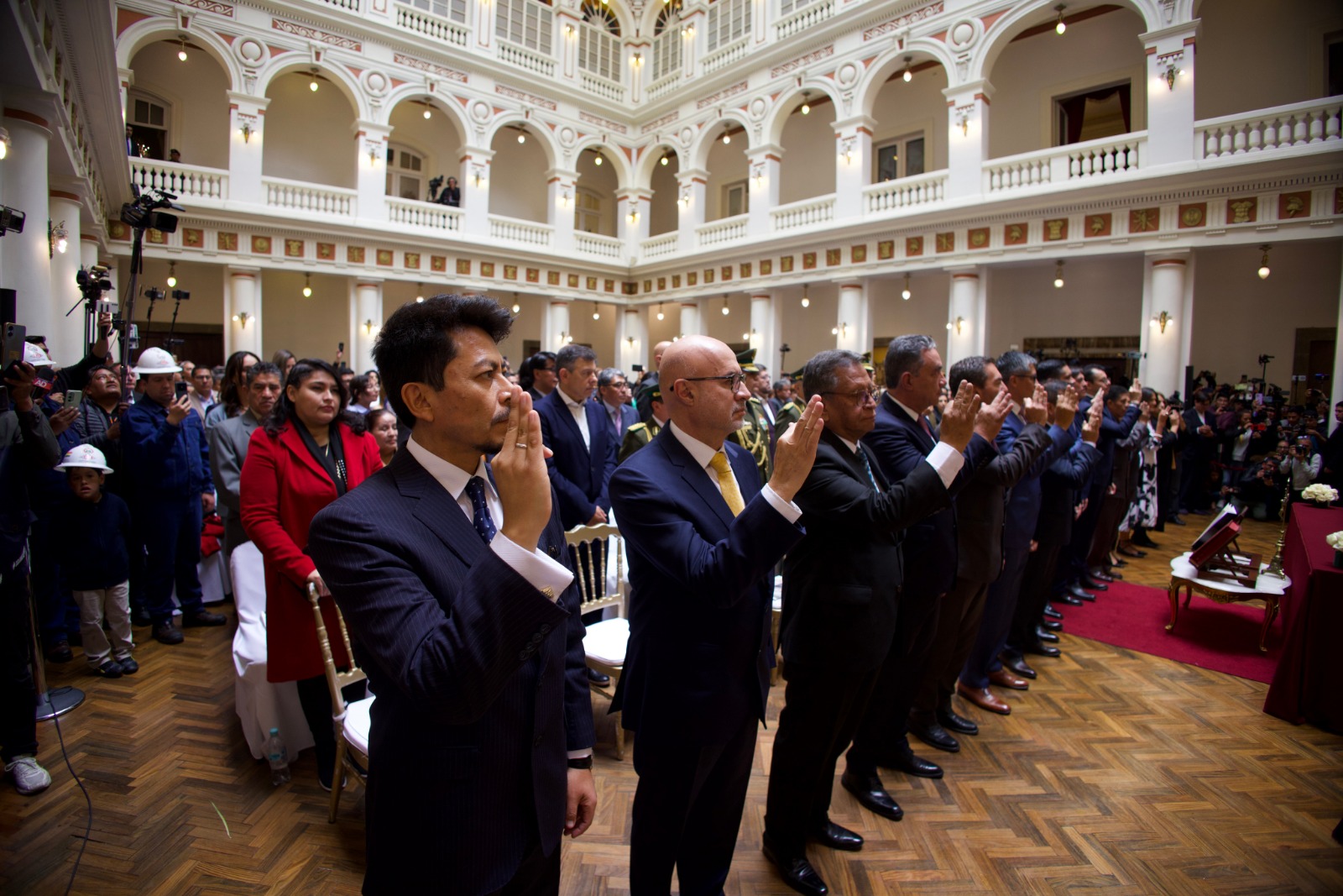 Juramento del nuevo Gabinete MinisterialGustavo TiconaGalería Fotográfica 09 Noviembre 2025 Visto: 3435ShareTwittearshare with Whatsappshare with TelegramFotos: Josué Cortez/Patricio Crooker AnteriorSiguiente