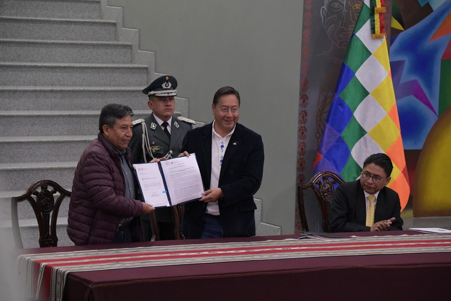 La Paz, 25 de marzo de 2024 (ABI). – Con la presencia de autoridades nacionales, niños, adolescentes y organizaciones sociales, el presidente Luis Arce entregó este lunes al presidente nato de la Asamblea Legislativa Plurinacional (ALP), David Choquehuanca, el anteproyecto de “Ley de Protección Reforzada para Infantes, Niñas, Niños y Adolescentes”.