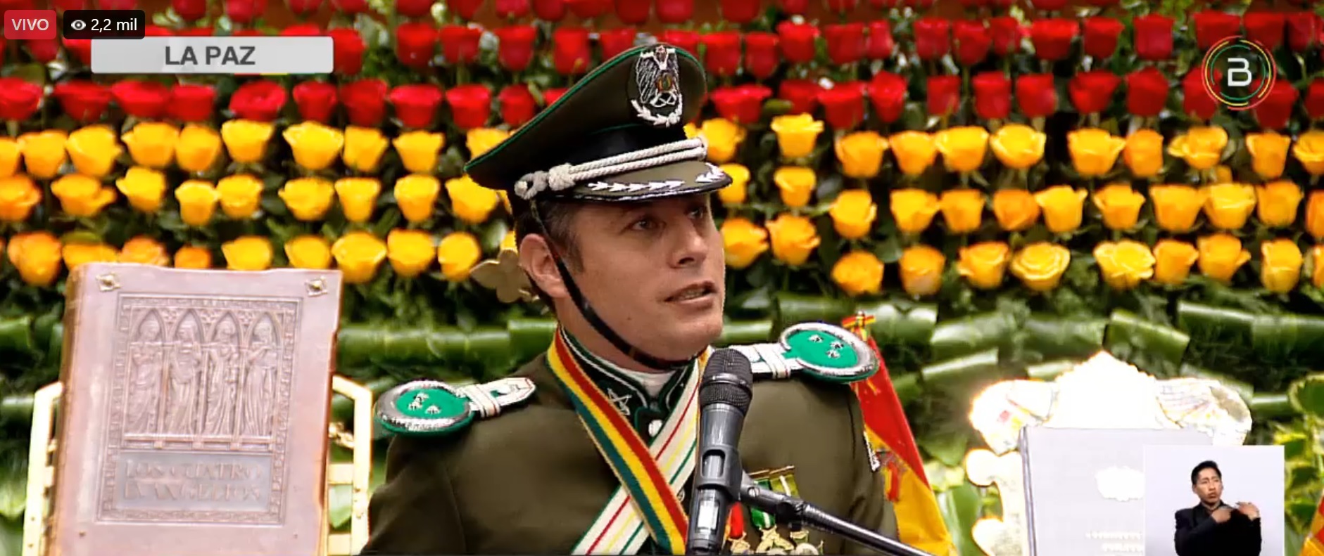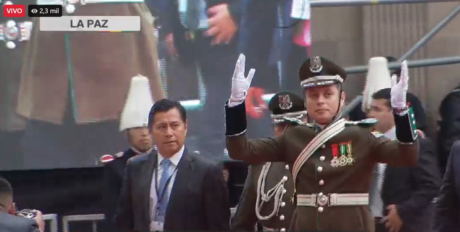 11:47 - El vicepresidente Edmand Lara concluye su discurso: “Hoy empieza mi servicio más importante y lo haré con el uniforme más sagrado que existe el del pueblo boliviano”.