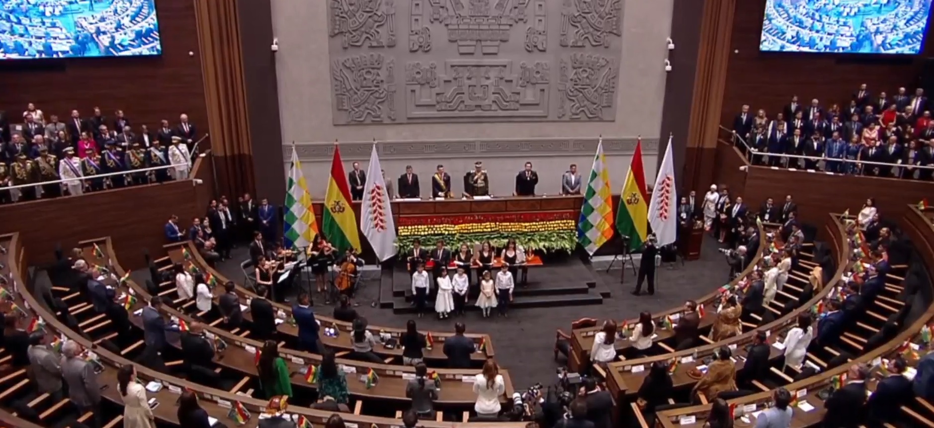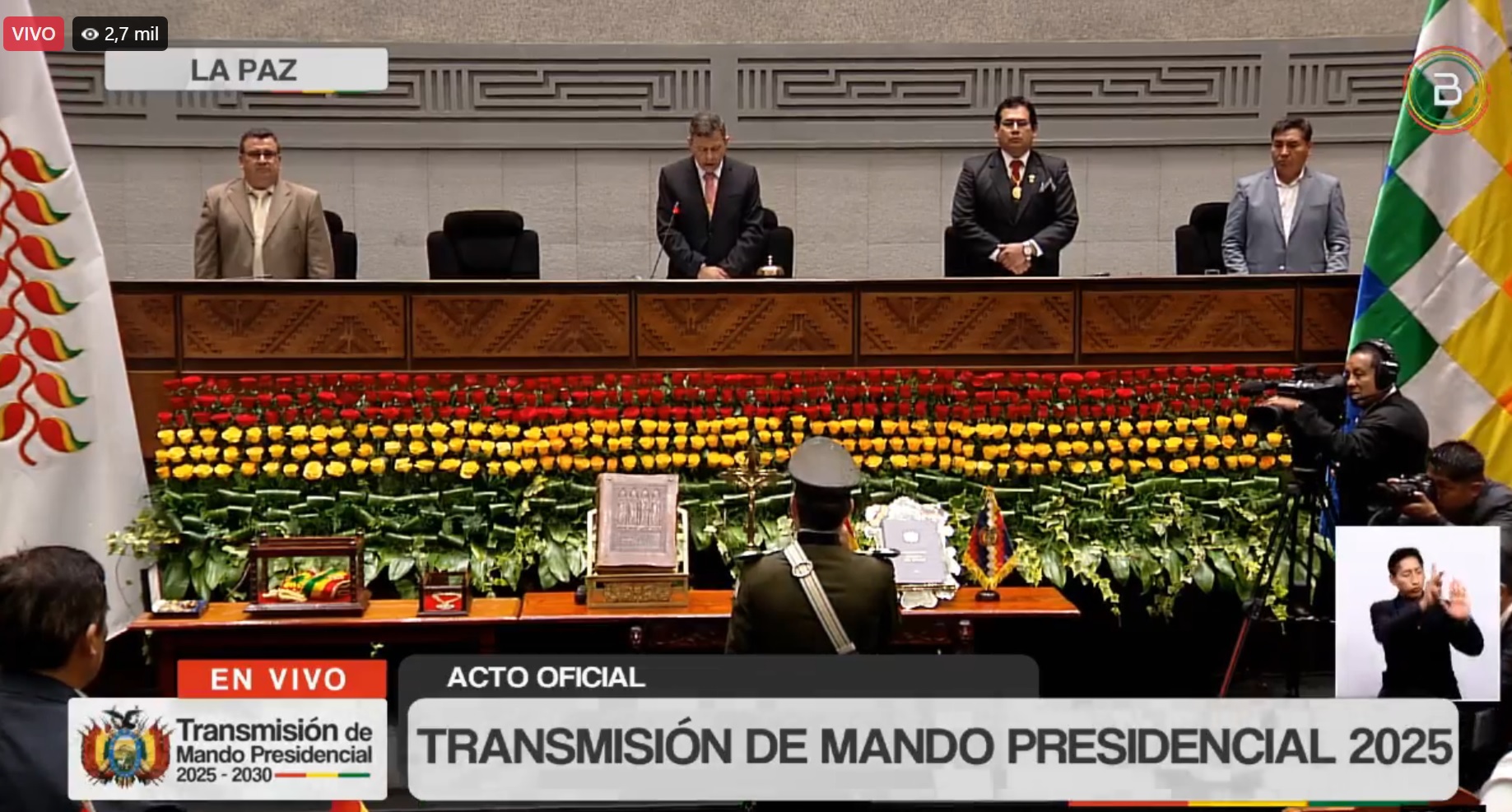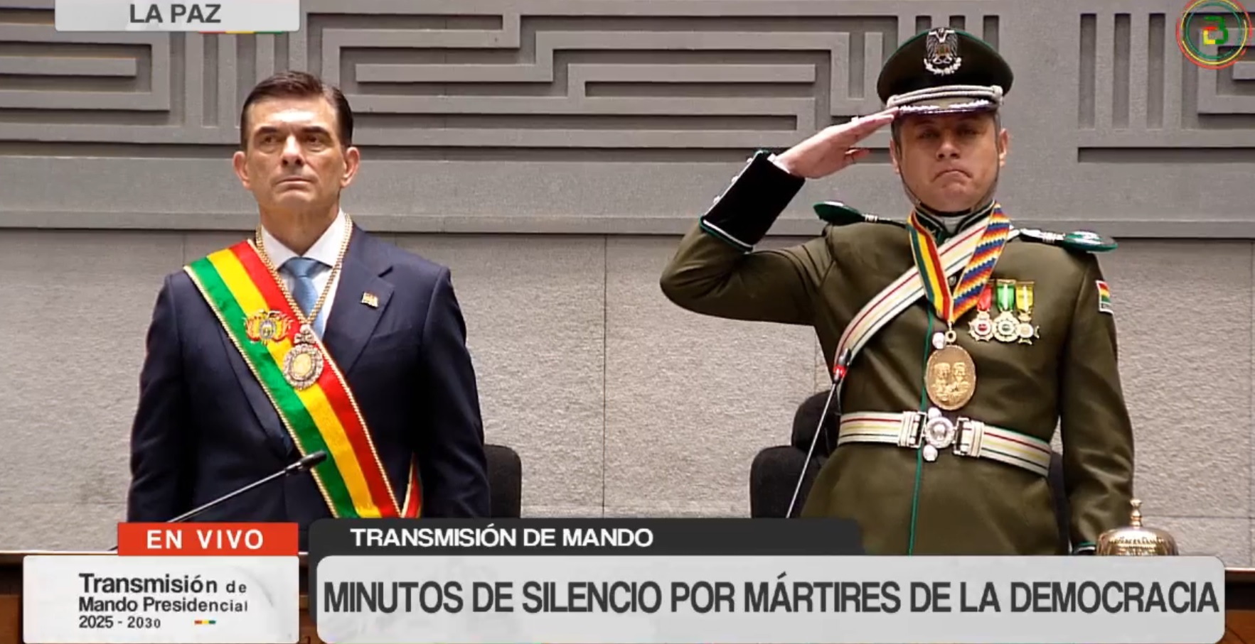 11:21 – Se entona el Himno Nacional, tras la posesión del presidente Rodrigo Paz.
