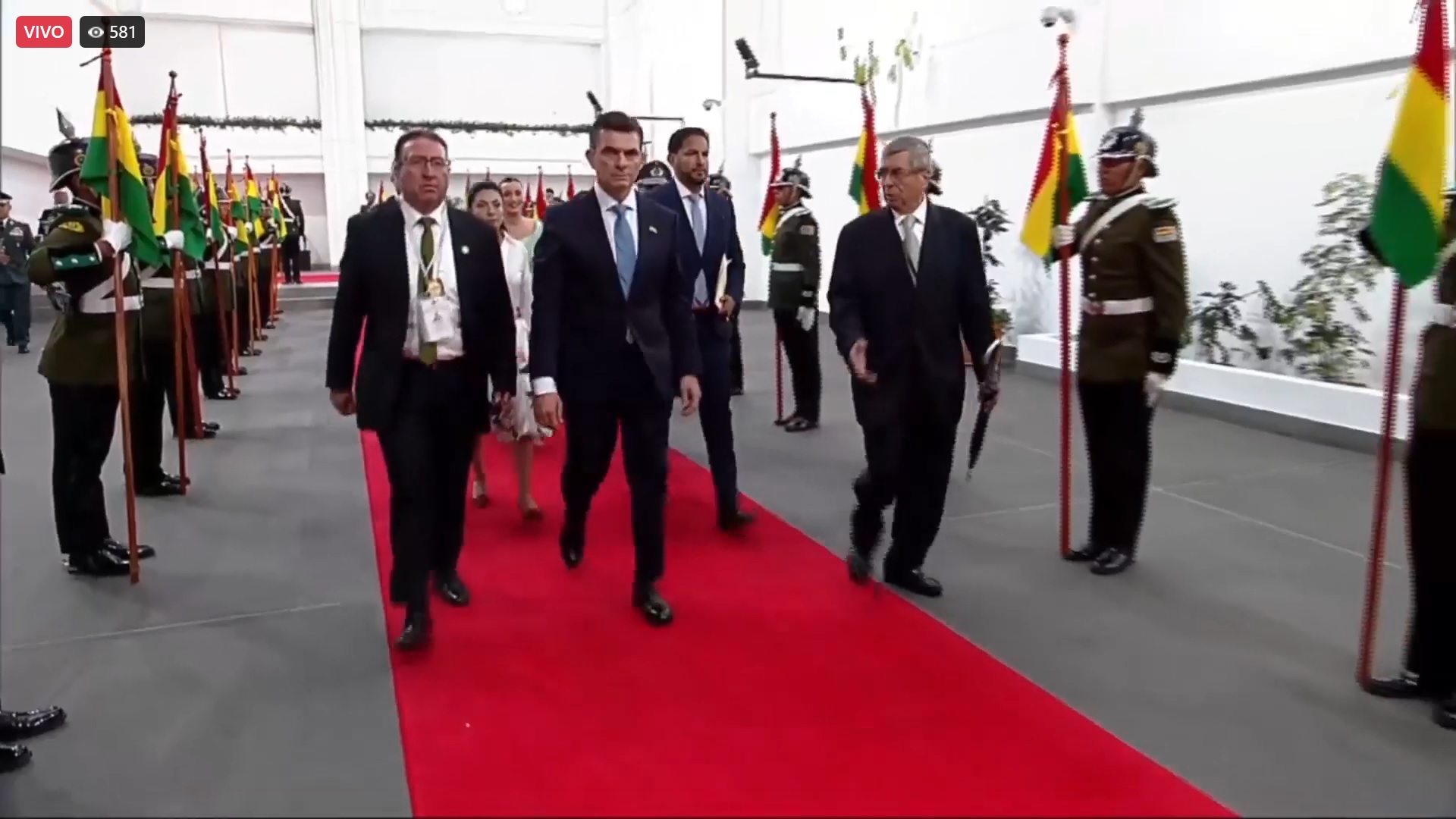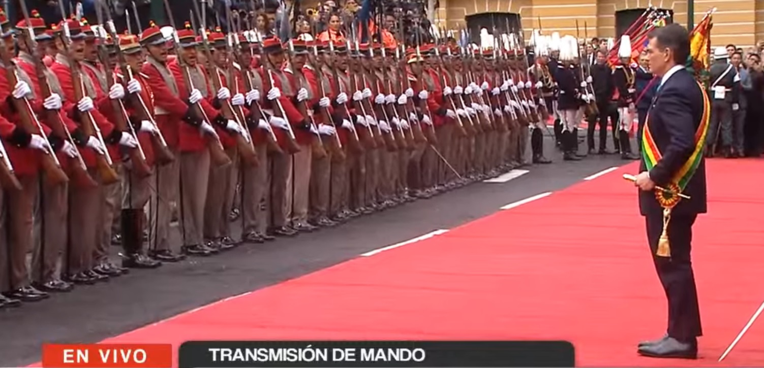 13:19 – El Regimiento Colorados de Bolivia rinde honores al presidente Rodrigo Paz en plaza Murillo.