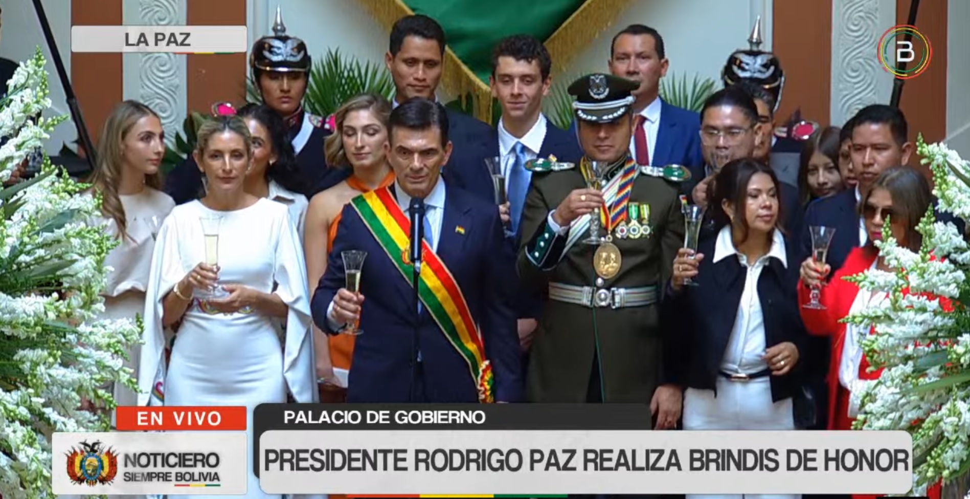 13:40 – El presidente Rodrigo Paz realiza un brindis de honor por la patria en Palacio Quemado.
