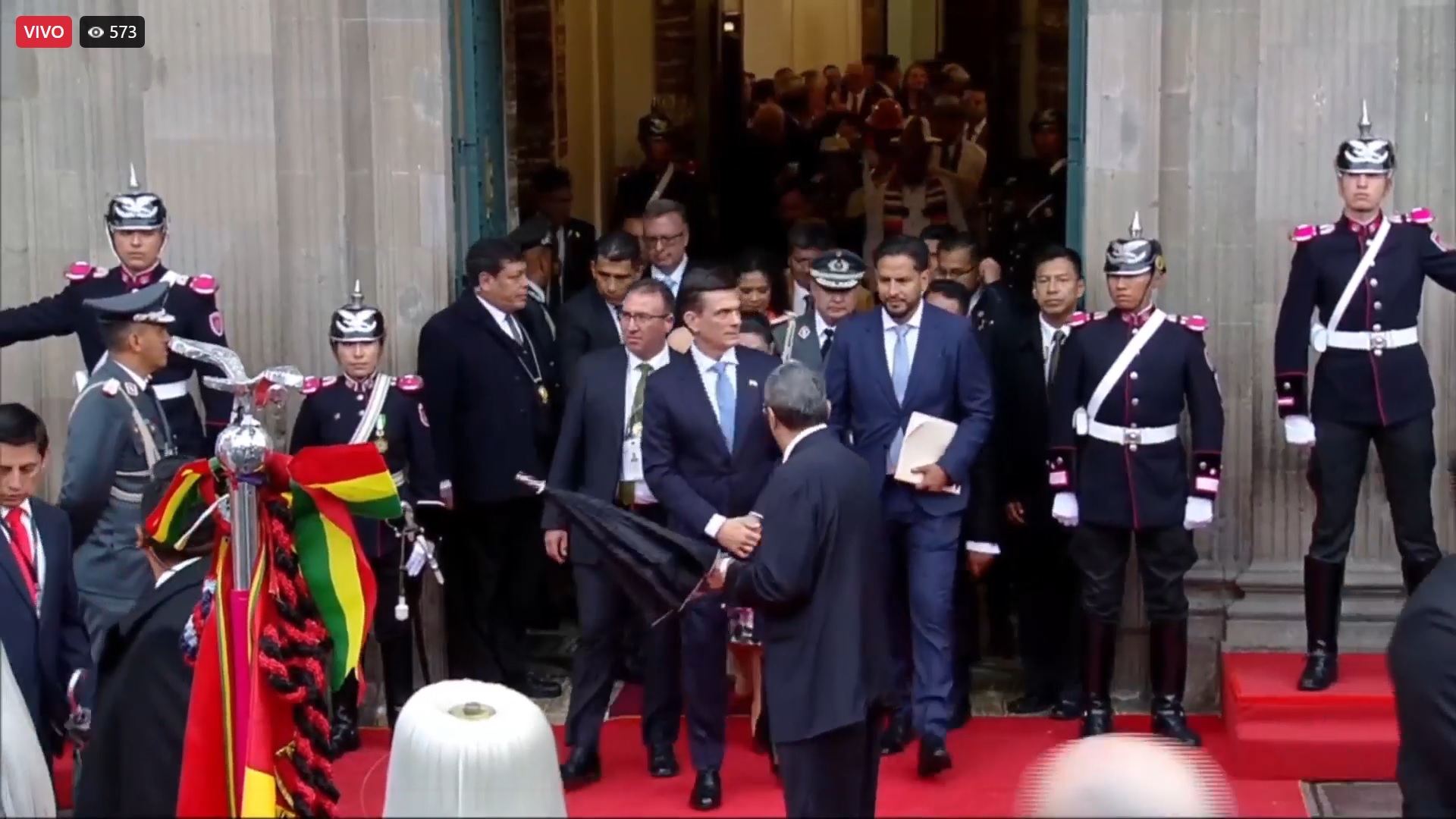 09:43 - Cae una intensa lluvia en la ciudad de La Paz mientras las delegaciones van llegando a la plaza Murillo.