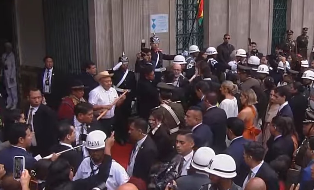 13:33 – Representantes de los pueblos indígenas del oriente y del occidente del país entregan al presidente Rodrigo Paz un bastón de mando en puertas del Palacio Quemado.