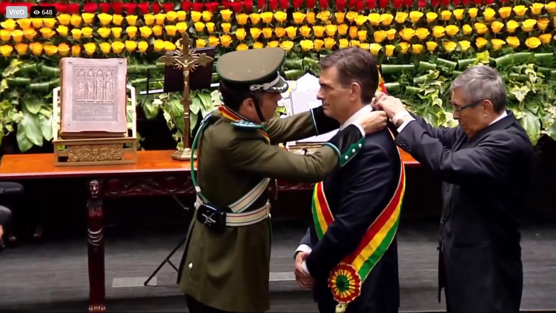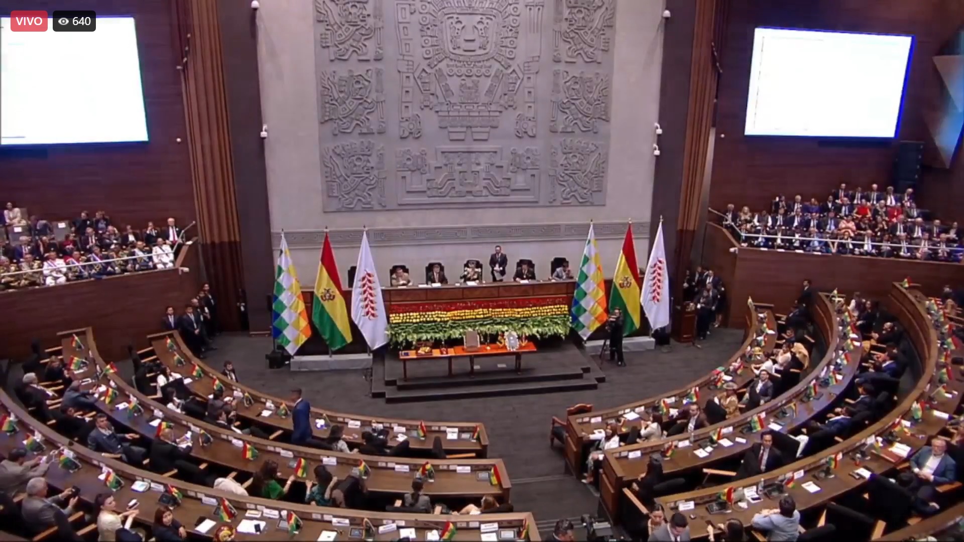 09:30 - Ingresan los símbolos presidenciales a la Asamblea Legislativa Plurinacional.