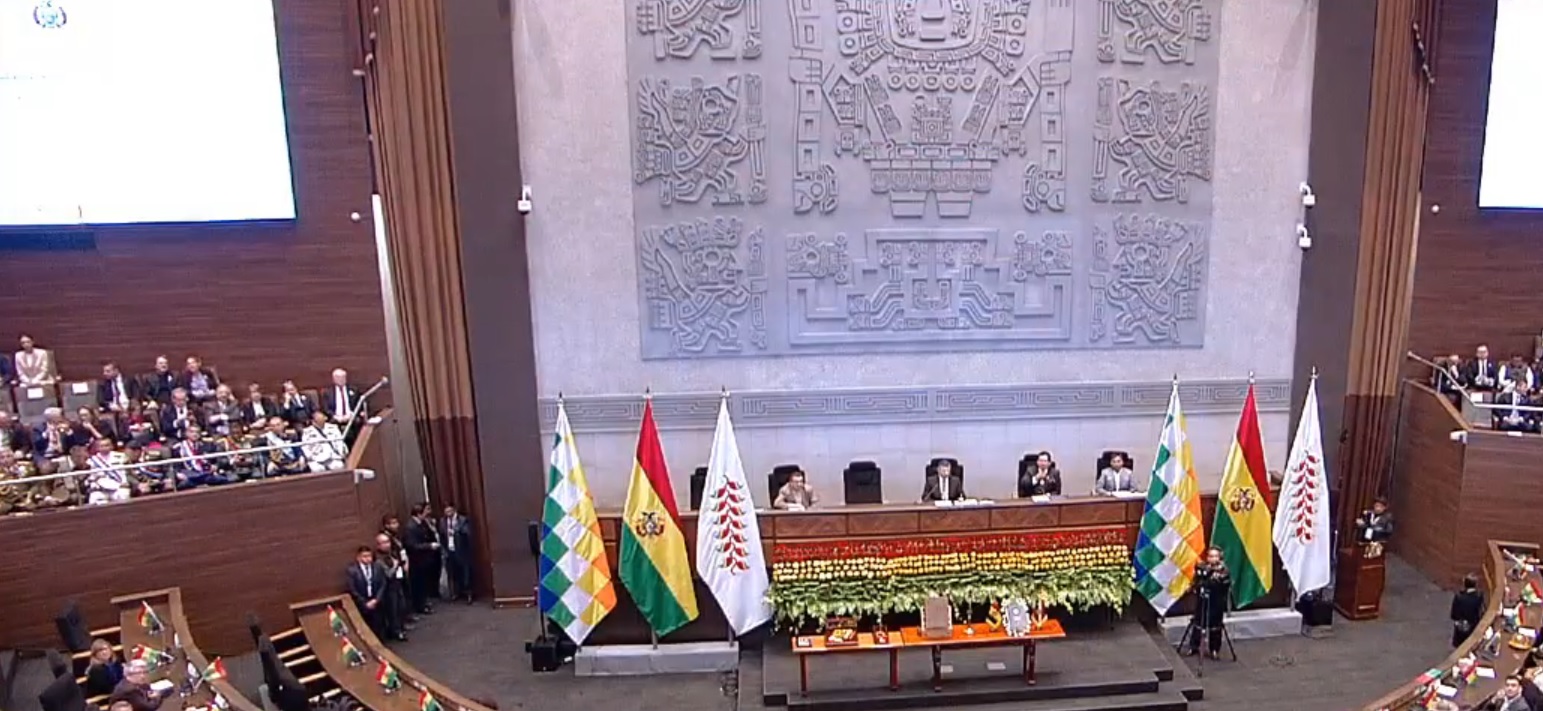 08:00 - Comienza el ingreso de las delegaciones internacionales e invitados especiales a la Asamblea Legislativa Plurinacional.