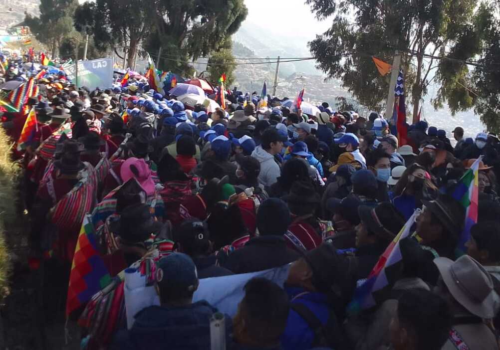 Miles se trasladaron desde las provincias de los nueve departamentos del país y a su paso por la hondonada paceña llevaban orgullosos la tricolor y wiphalas y recibían el aliento y aplausos de la población paceña.