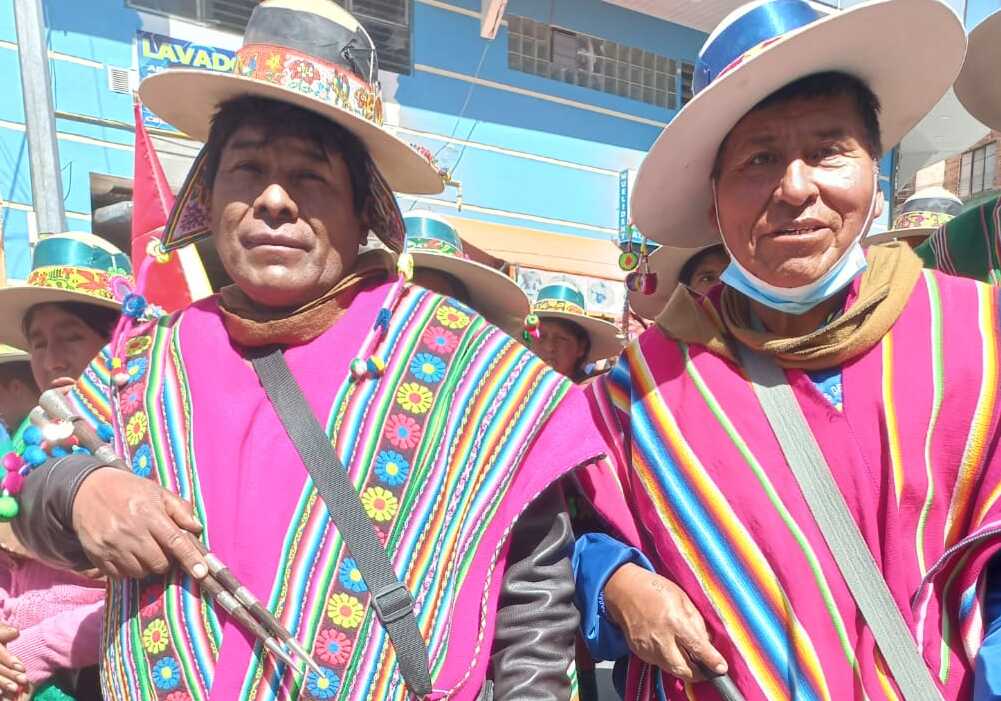 Un campesino con montera y su pututu, instrumento de viento andino, convoca a la gran marcha. Gonzalo Jallasi