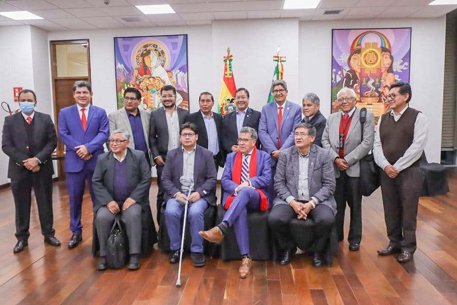 Bajo ese mismo enfoque, el 23 de julio, Arce reunió a los rectores de las universidades públicas. La reunión acabó con una foto del presidente y autoridades universitarias sonrientes, excepto el rector de la Universidad Gabriel René Moreno (UGRM), Vicente Cuéllar, quien aparece con el barbijo cubriéndole el rostro.