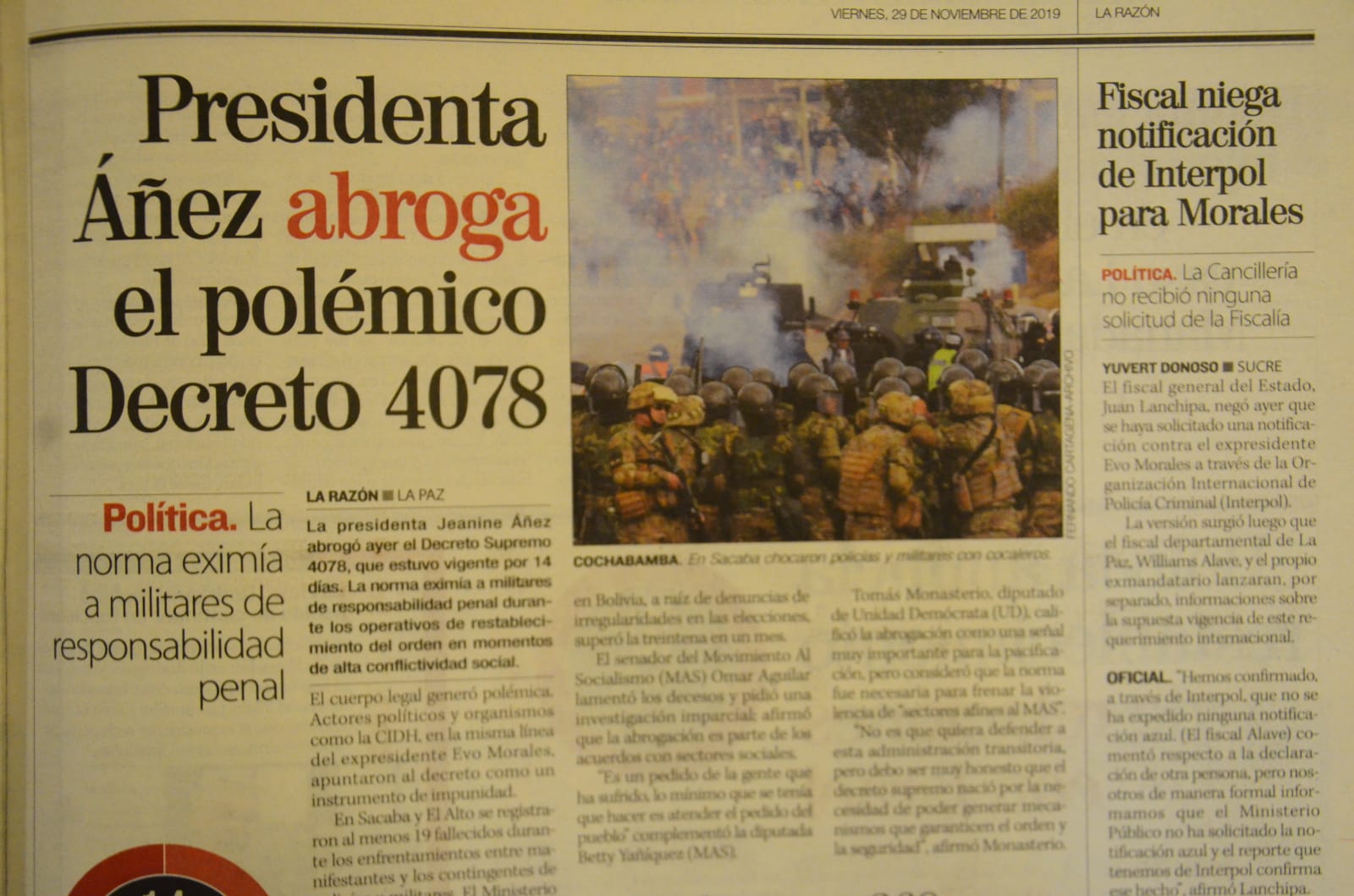 Tras las elecciones del 20 de octubre de 2019, las protestas escalaron cada día en Bolivia. Fueron jornadas que convulsionaron el país. La situación se agravó con la sublevación de la Policía y la irrupción de las Fuerzas Armadas al pedir públicamente la renuncia del presidente constitucional Evo Morales.