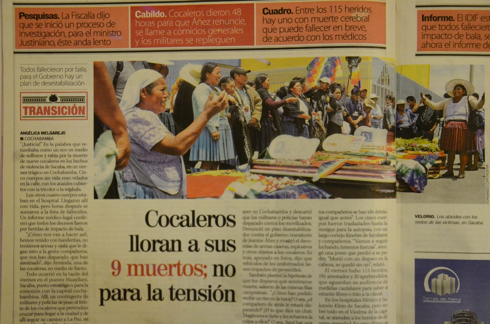 Paralelamente, el informe forense da cuenta que disparos de ‘armas largas’ mataron a nueve cocaleros en Sacaba.
