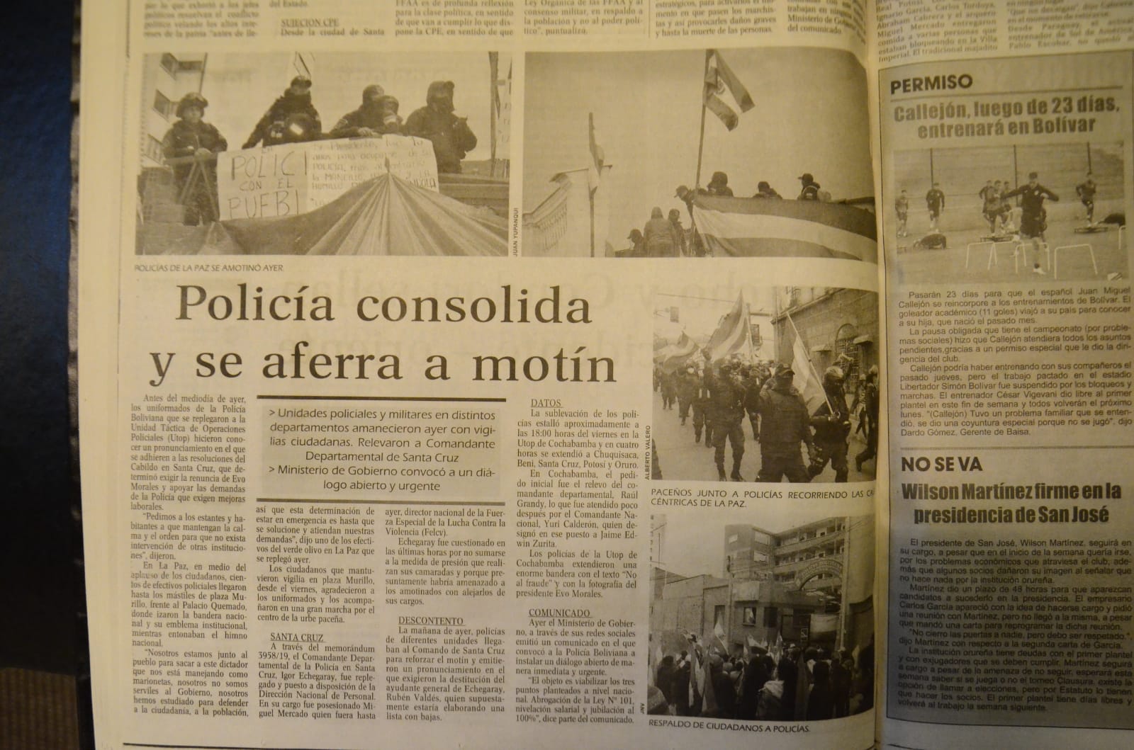 Evo Morales renuncia a su cargo. La Policía sigue amotinada.
