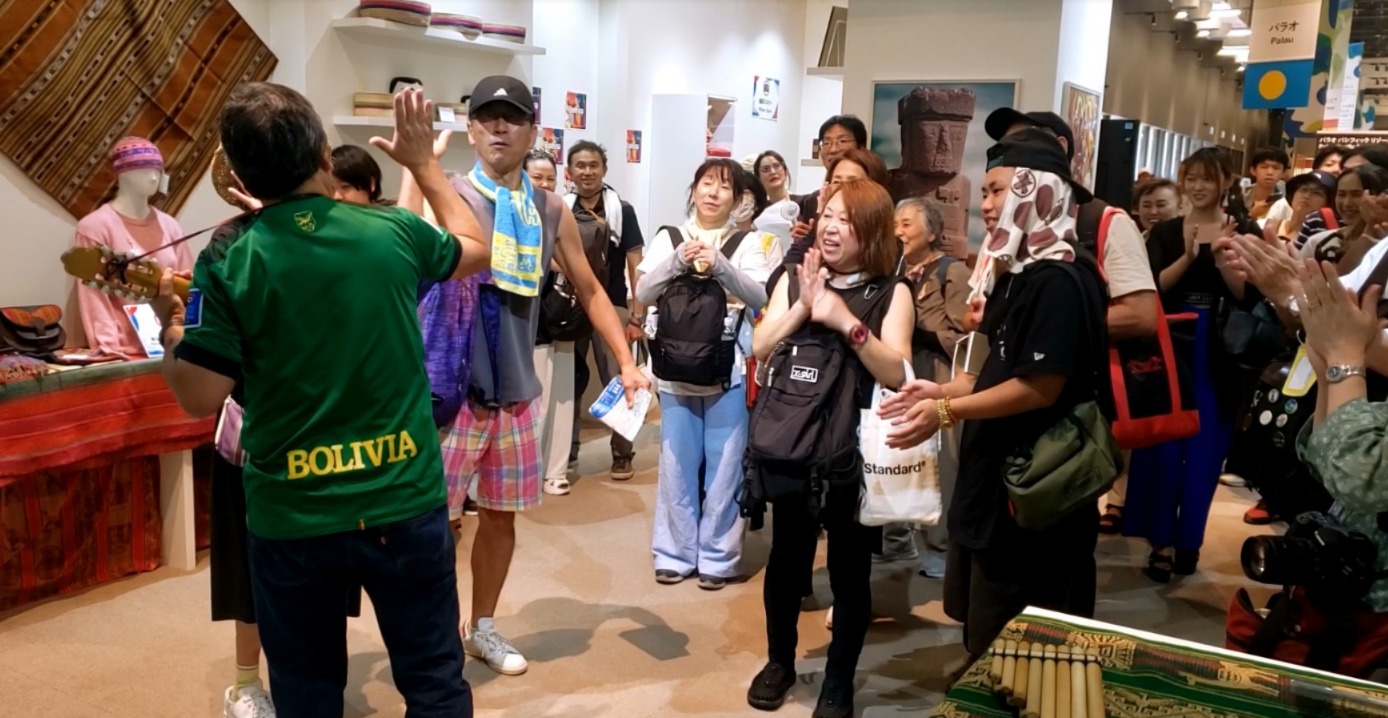 Las melodías del charango – un instrumento musical típico de la región andina – cautivaron a los visitantes japoneses y extranjeros y éstos las acompañaron con lluvia de aplausos e incluso zapateos. Hubo algunos que grabaron ese instante para el recuerdo, con filmación y fotos.